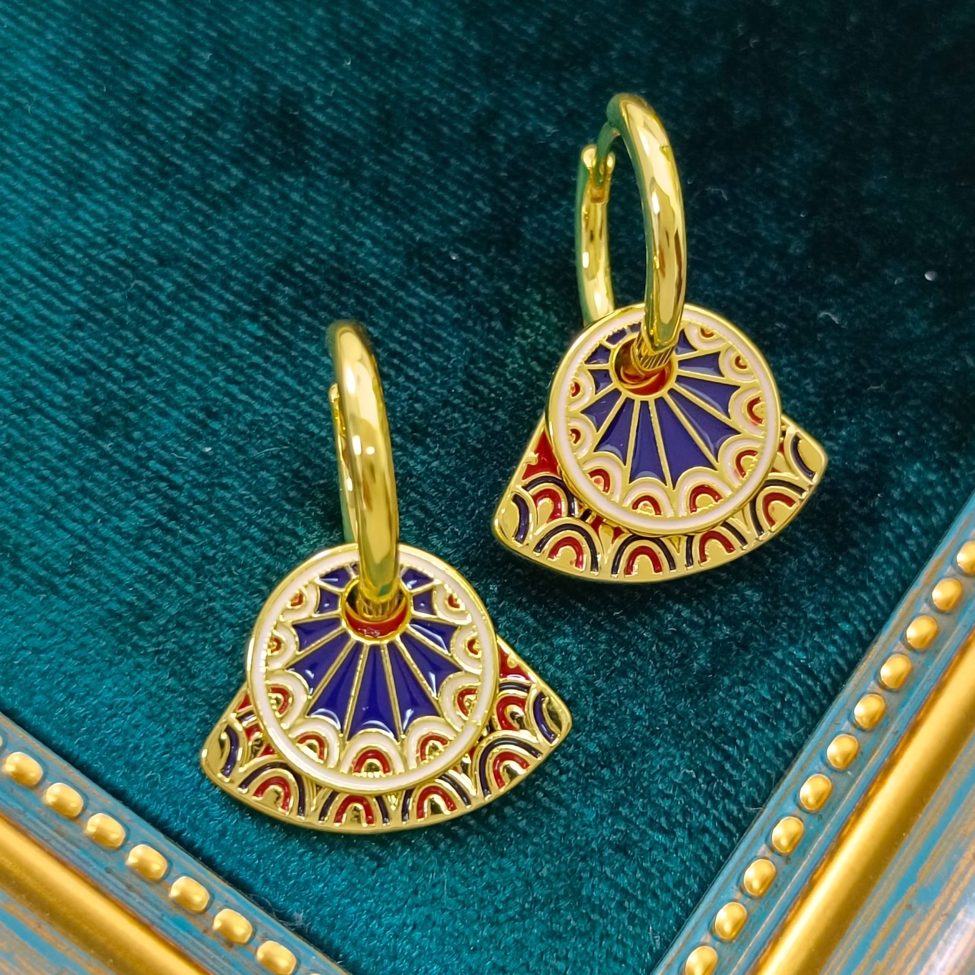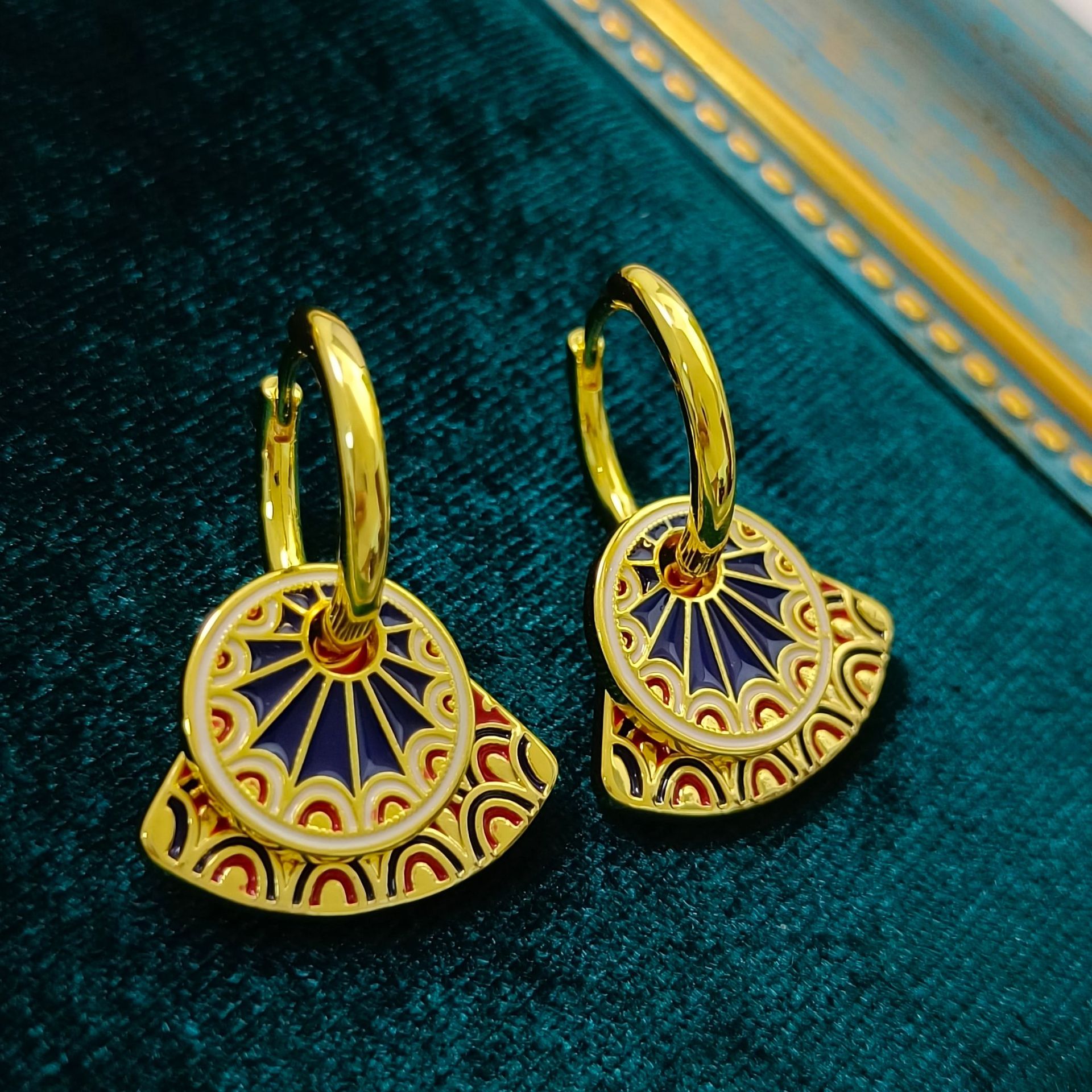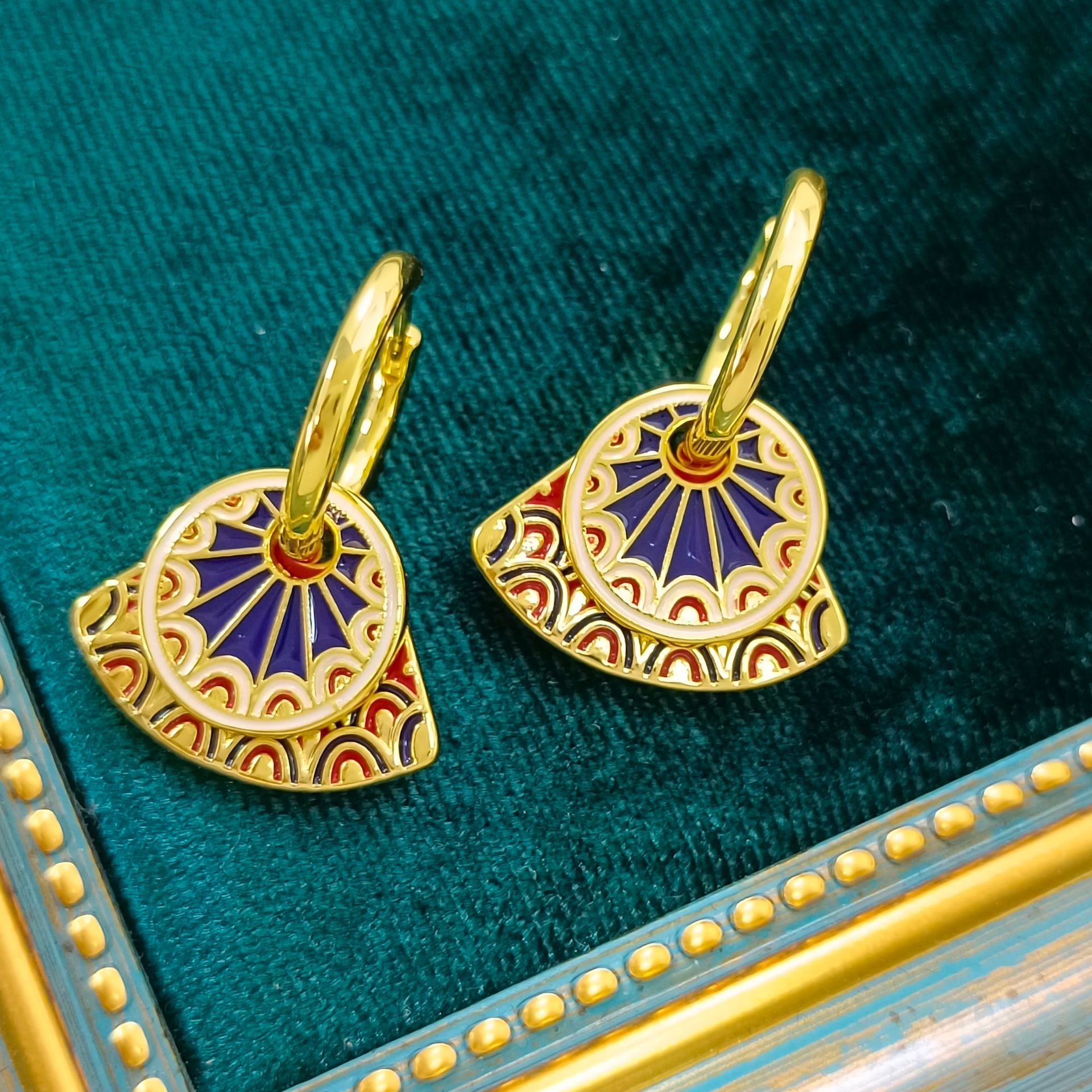 「典雅复古!小众设计」新潮圆扇形设计彩绘耳扣个性小众国潮新中式撞色耳环时尚饰品