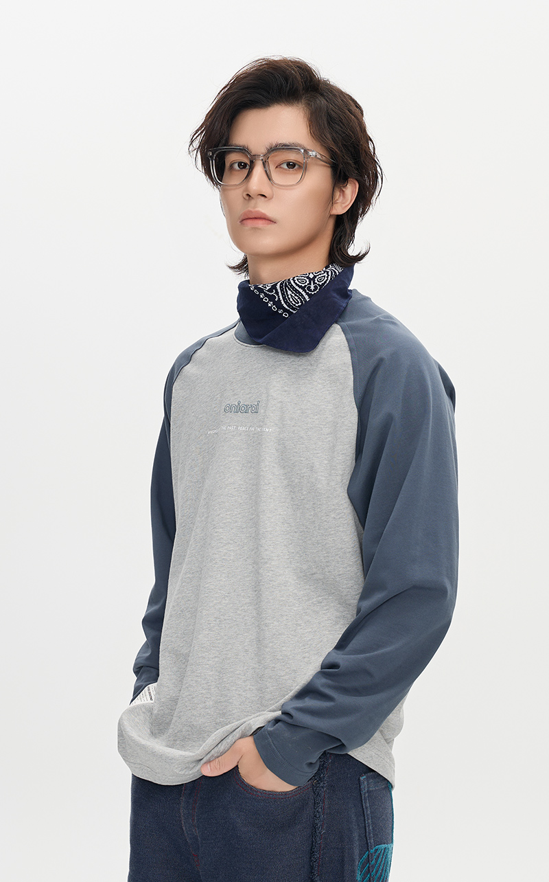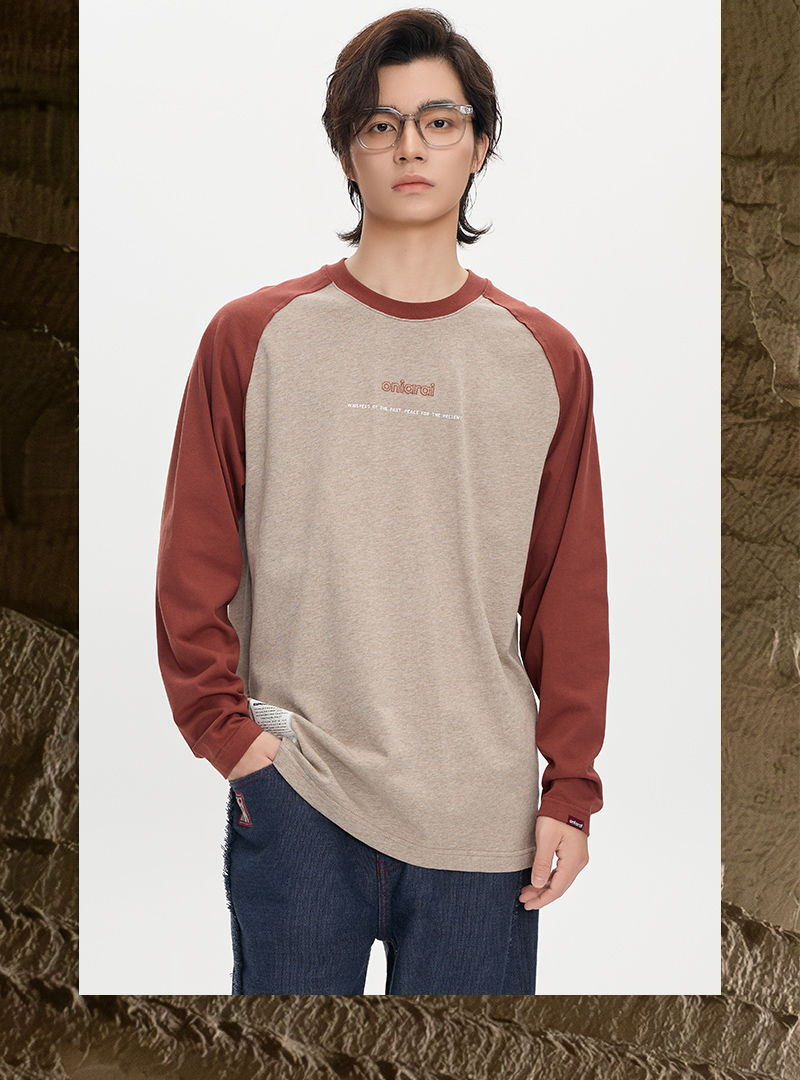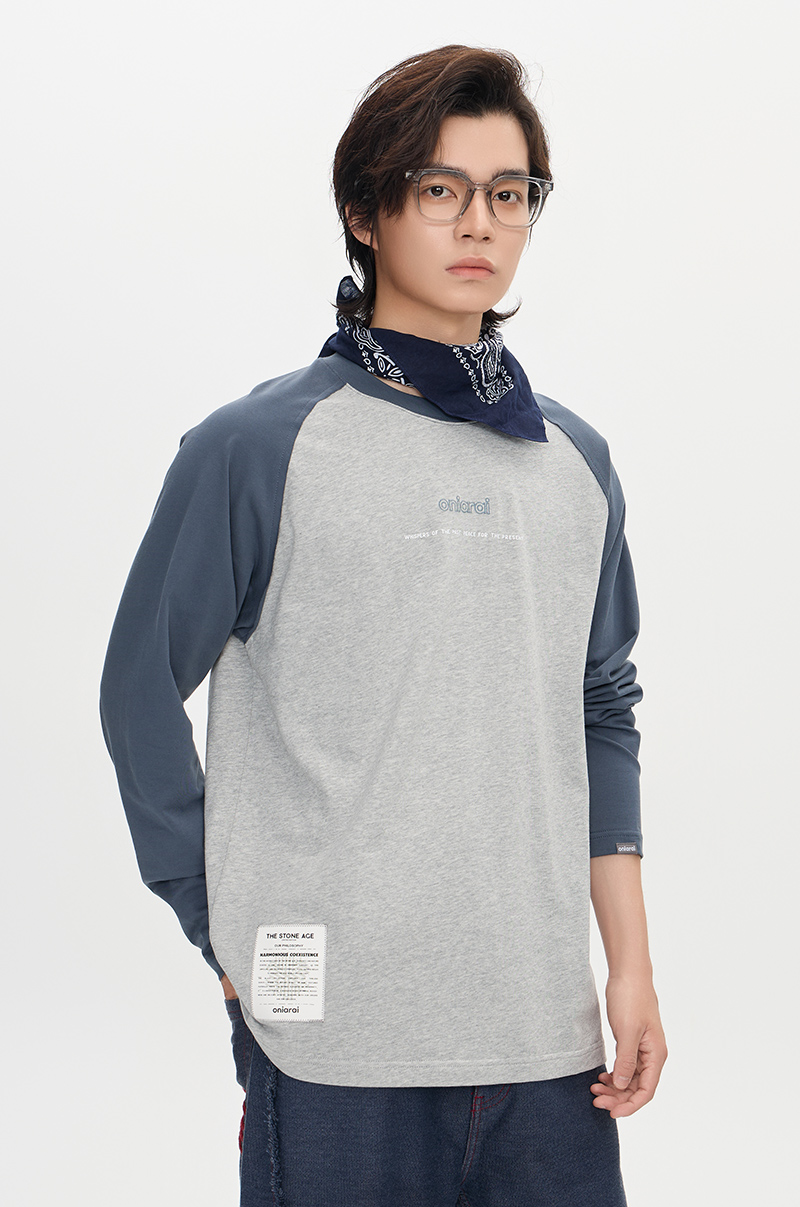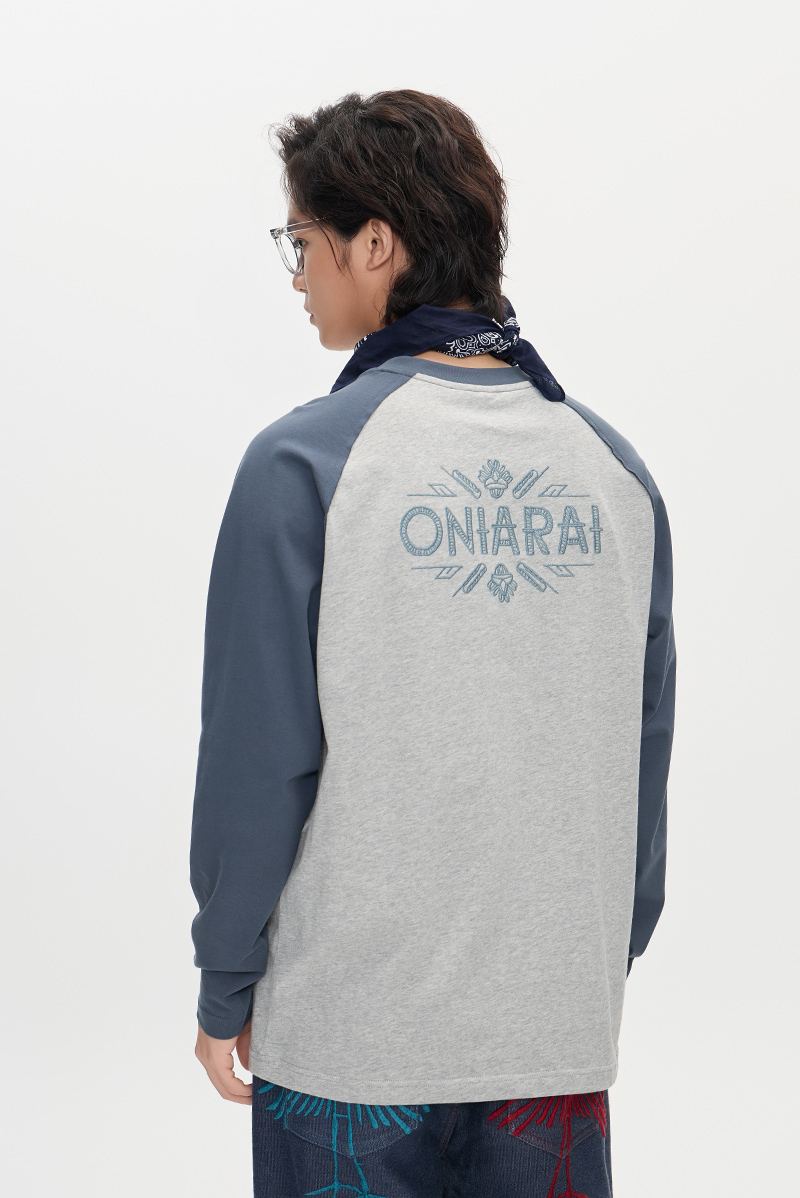 ONIARAI/鬼洗黑标Logo绣花拼布牛角袖长袖常规T恤 A240014