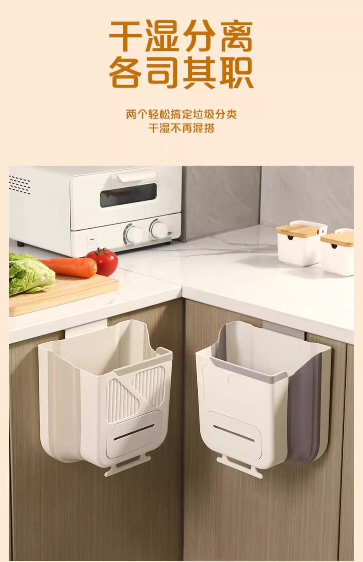 🔥壁挂可折叠垃圾桶,老人孕妈必备,橱柜门轻松挂,挂式家用厨余分类可折叠橱柜门壁挂卫生间厕所收纳纸篓分类收纳更省心✨