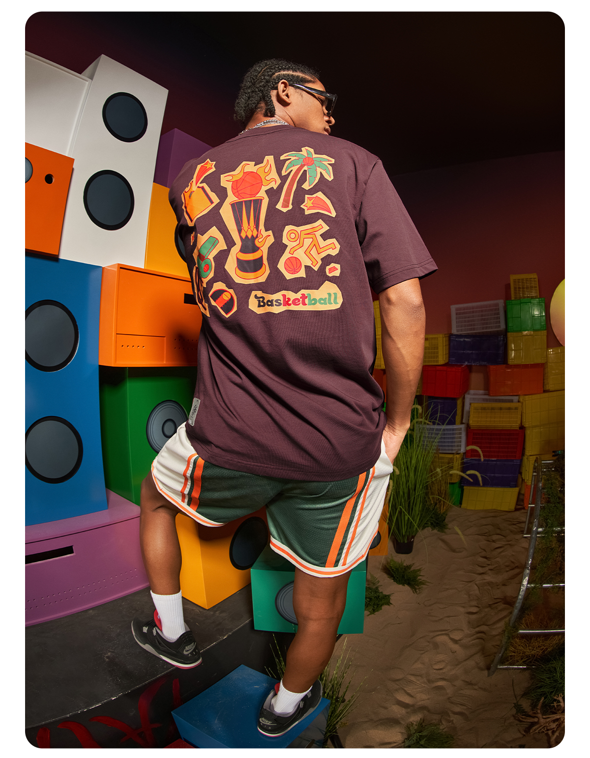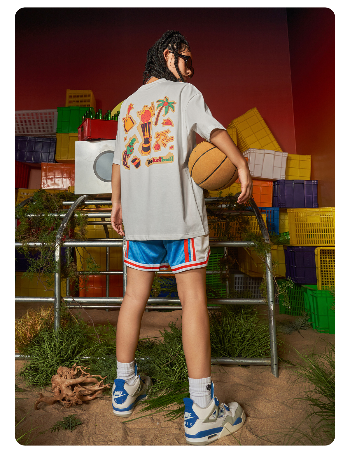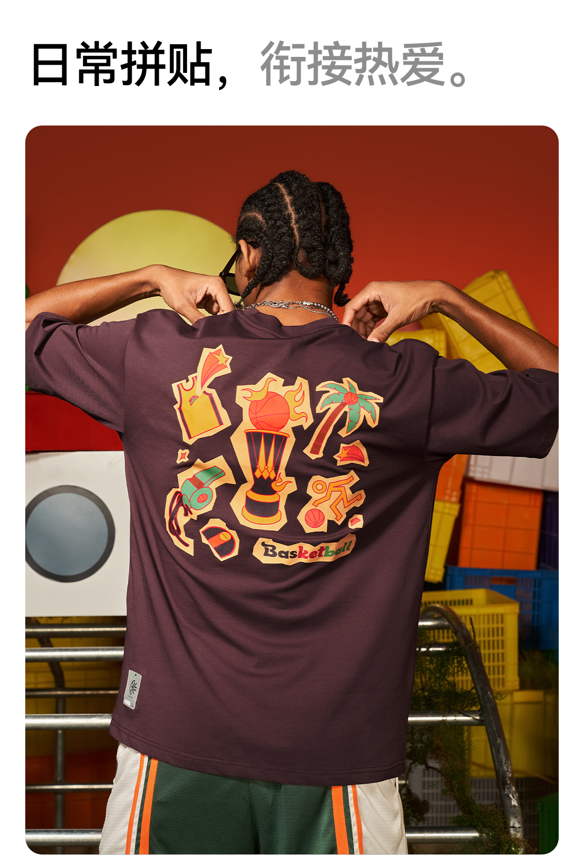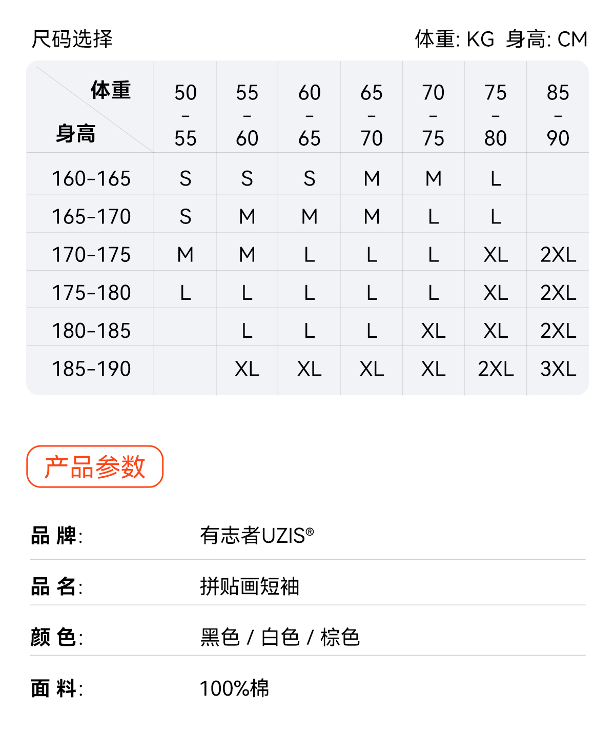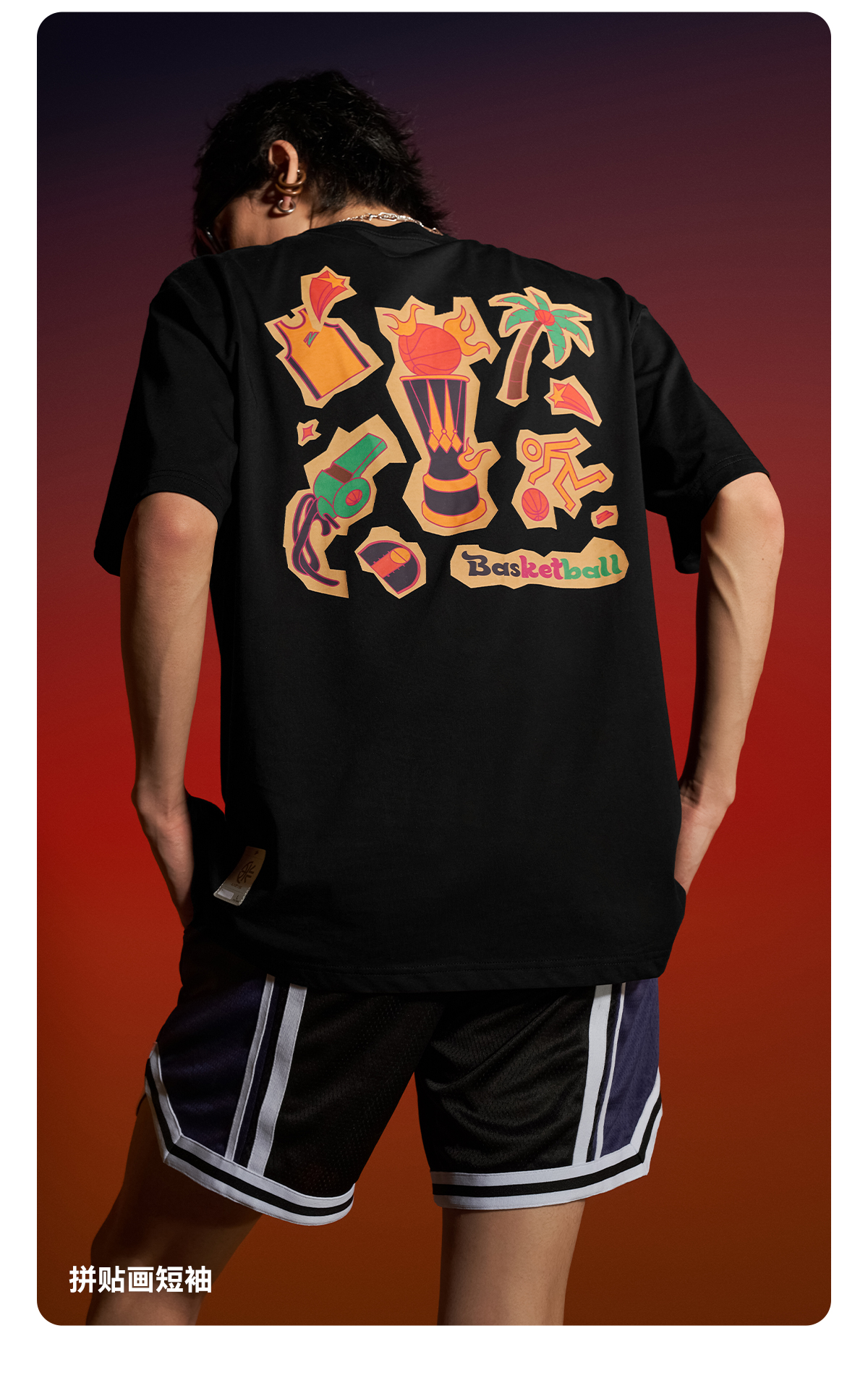 有志者UZIS 美式篮球运动短袖男夏季圆领休闲复古印花T恤[拼贴画]
