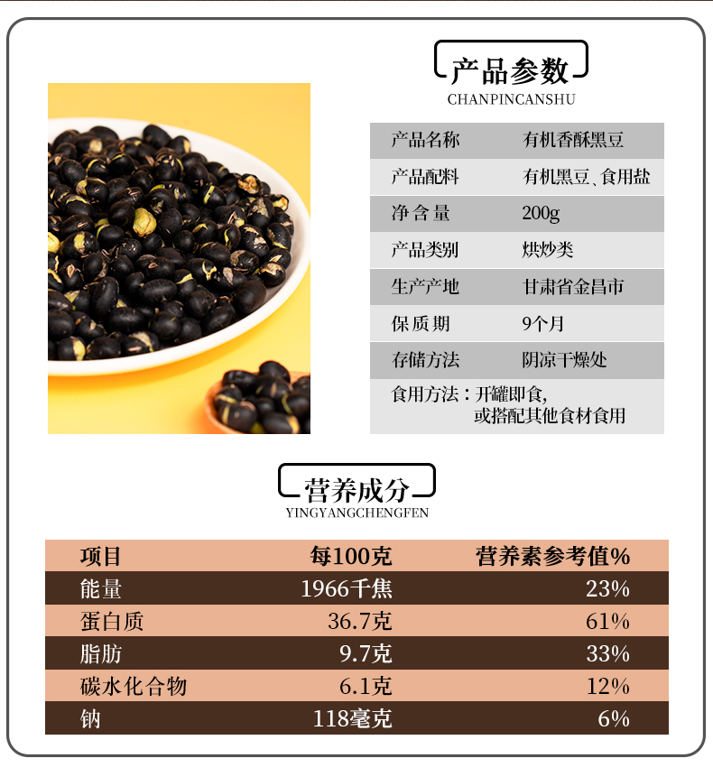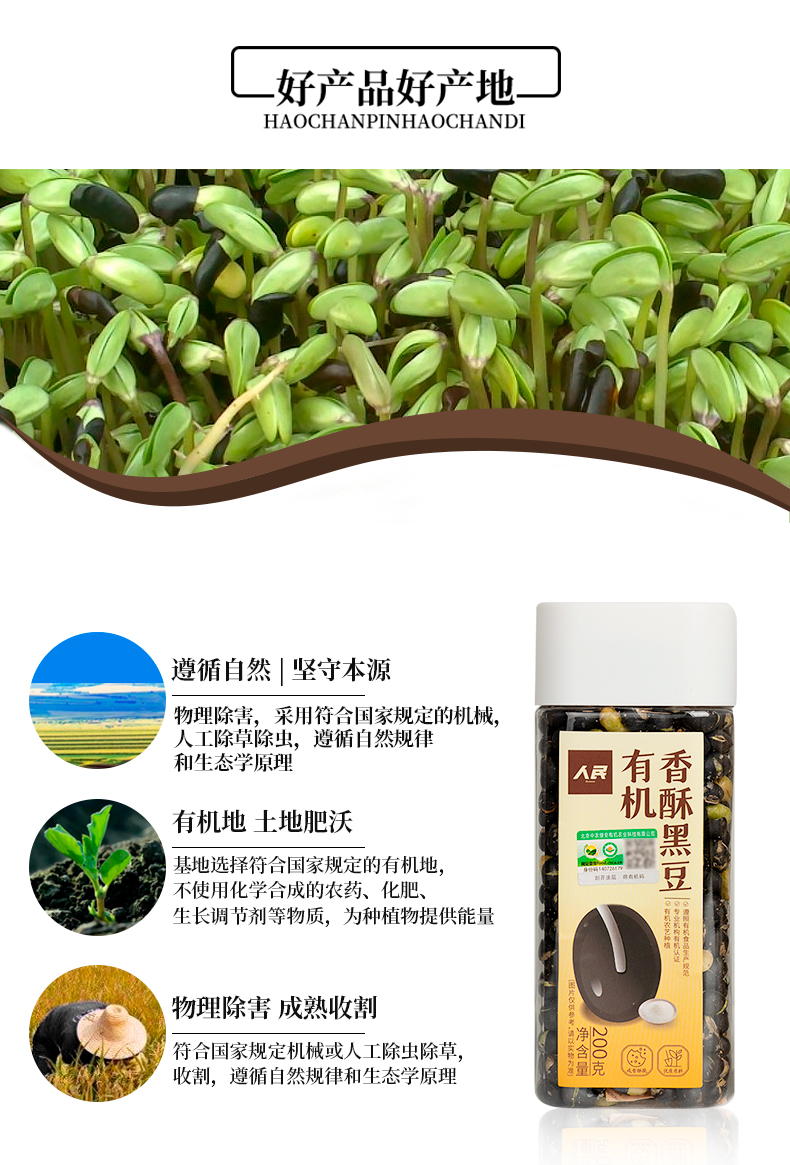 有机香酥黑豆 即食零食熟盐炒非油炸原味200g/瓶【京东快递送货上门】