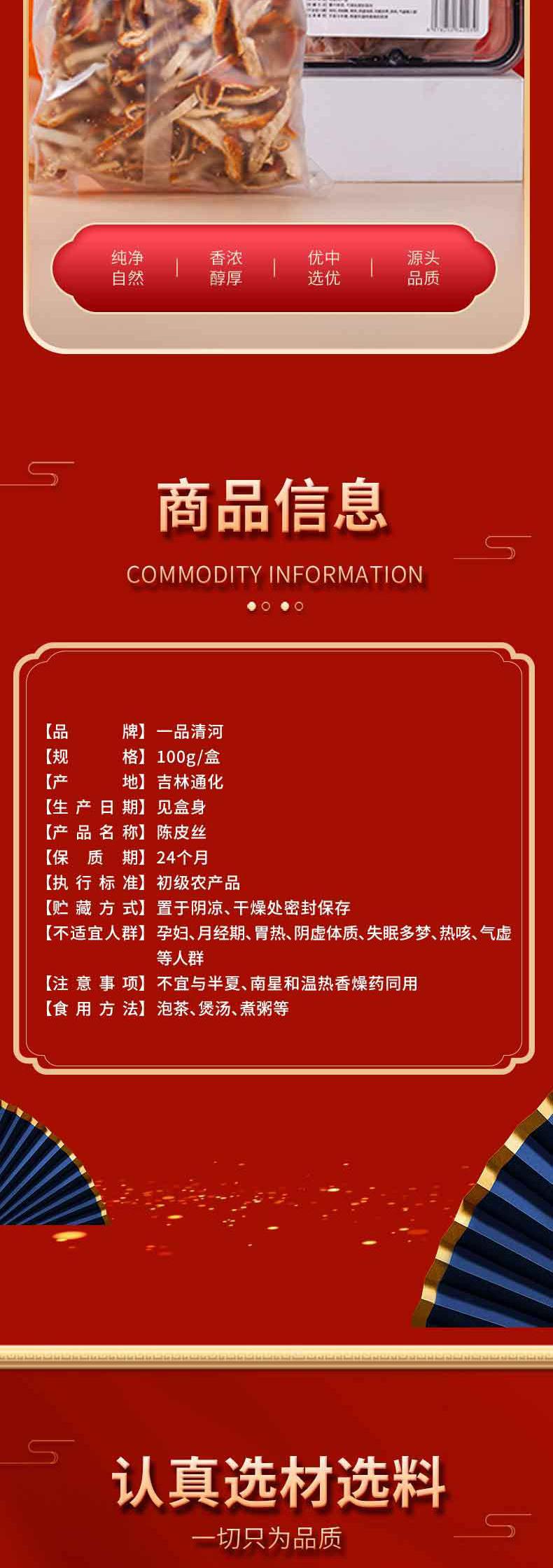 【自营】一品清河 陈皮丝100g老陈皮新会陈皮 YPQHCPS100G