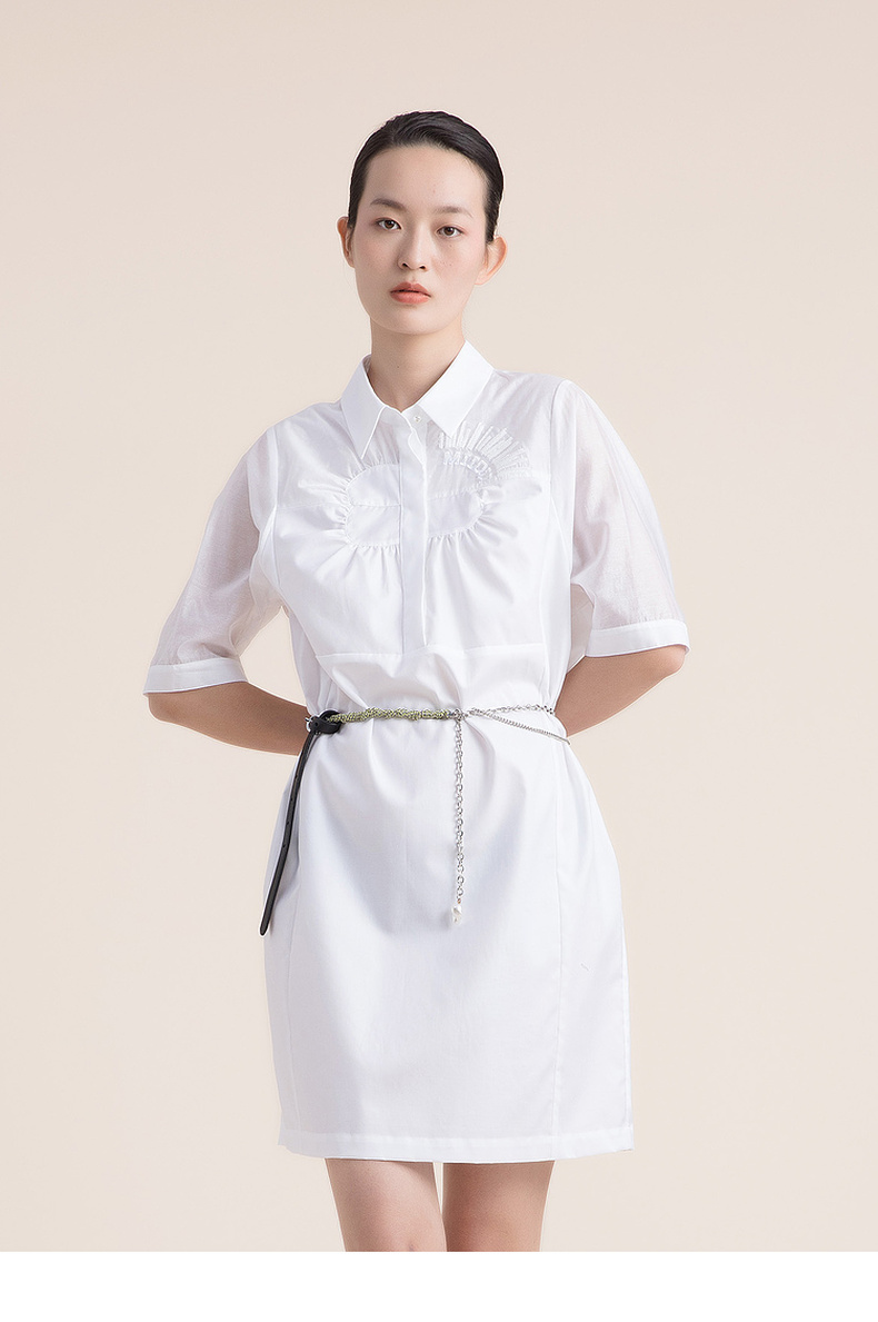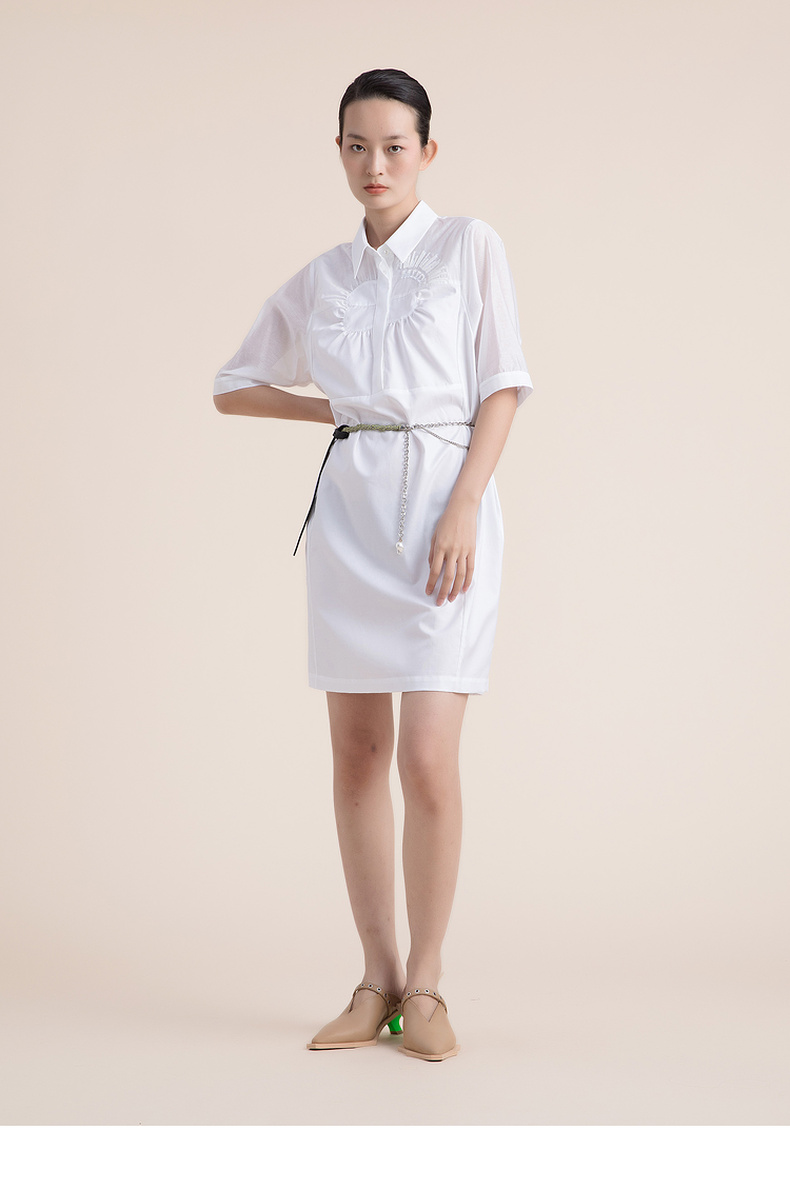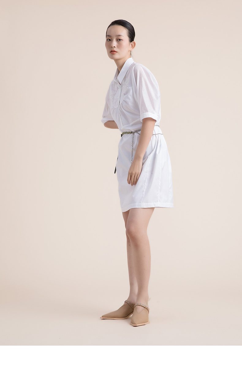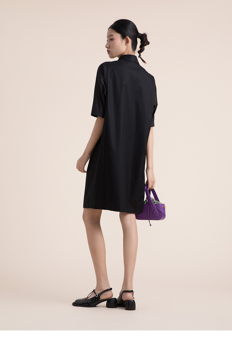 谜底短袖纯棉连衣裙2023夏款通勤H型显瘦珠片绣花中长裙235ML6050