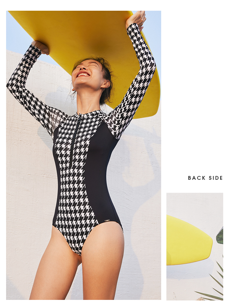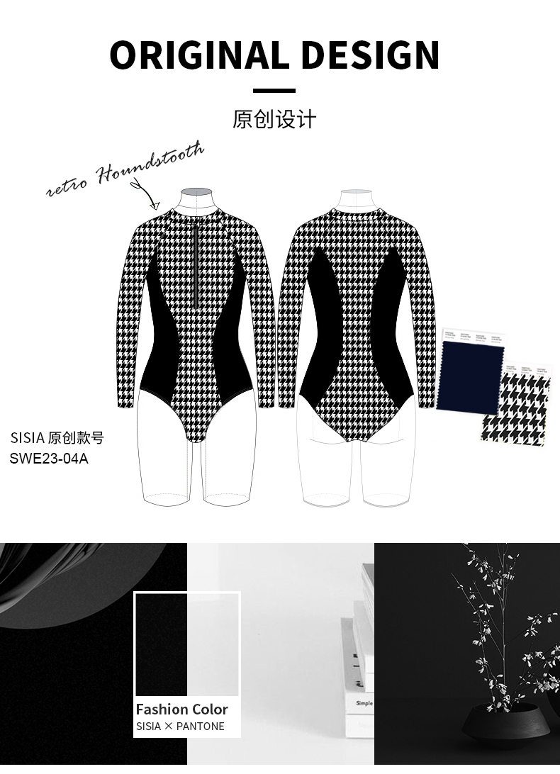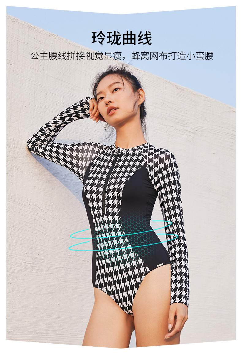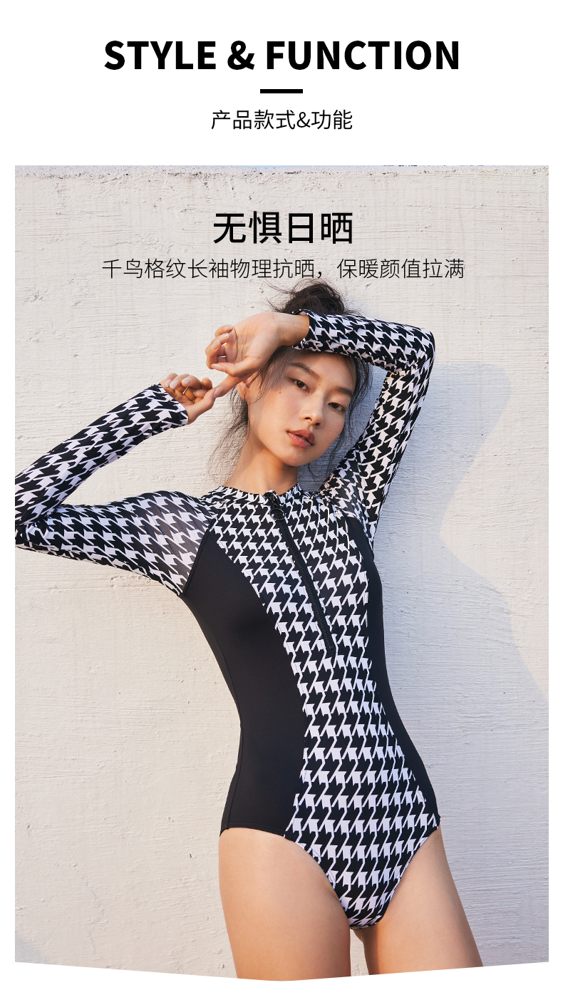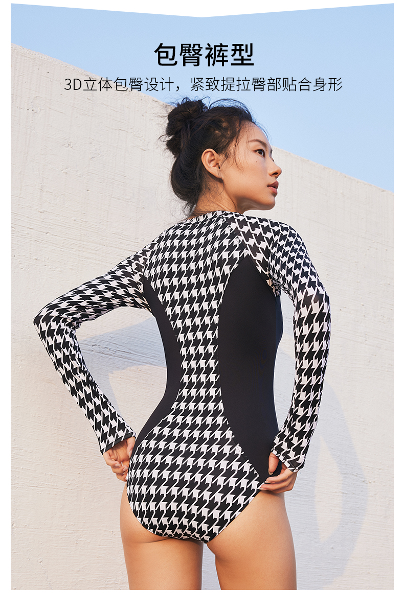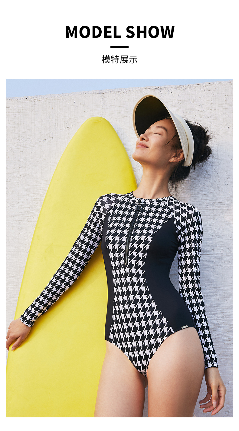 sisia泳衣女连体长袖防晒黑色泳装高级感显瘦冲浪泳衣女2024新款
