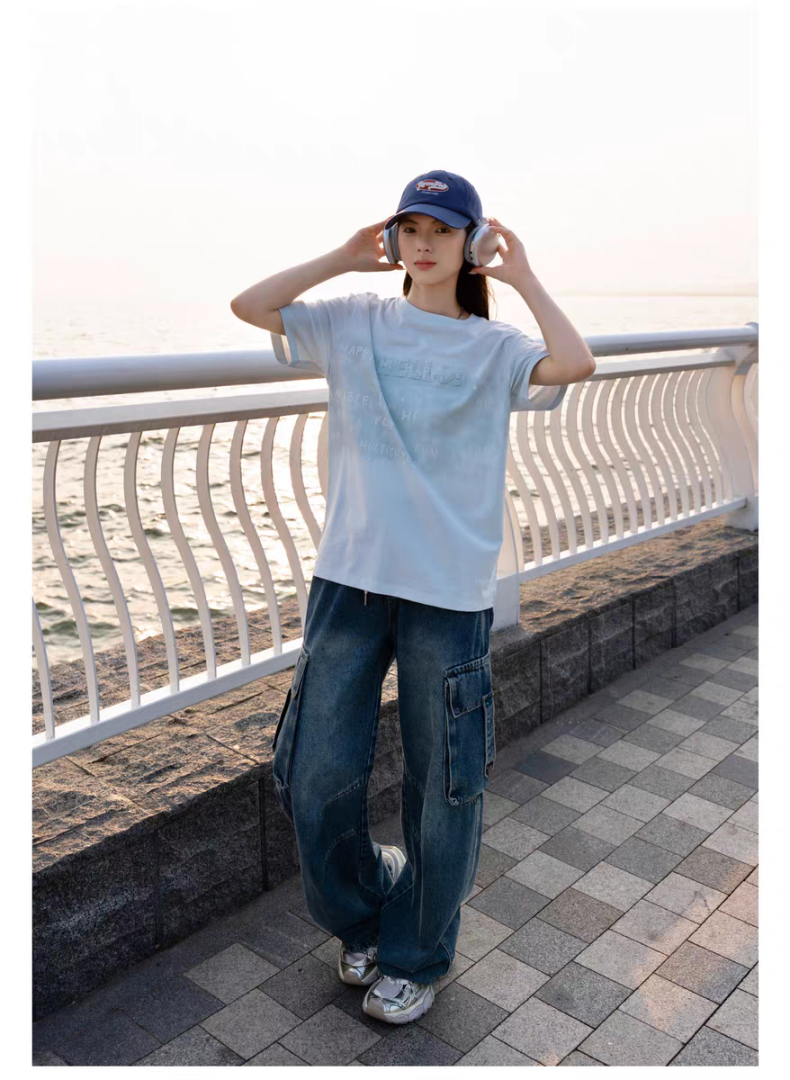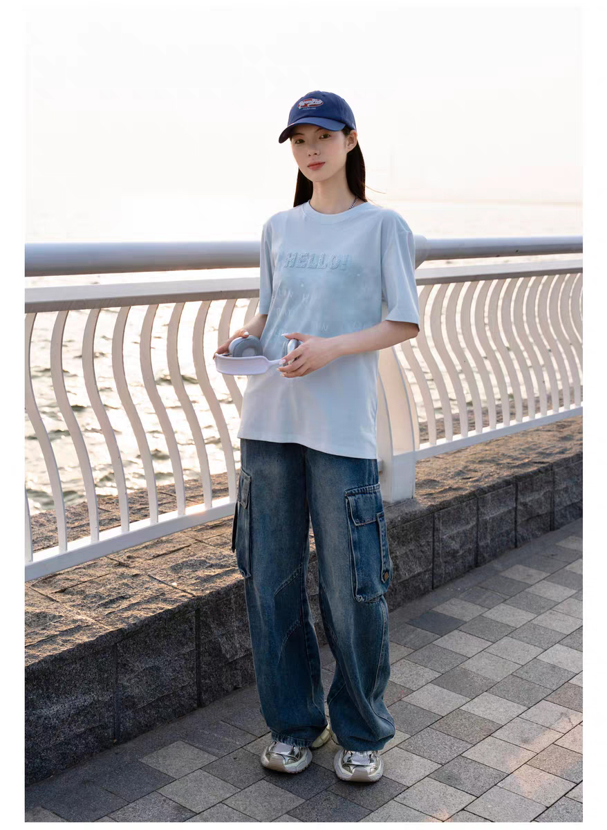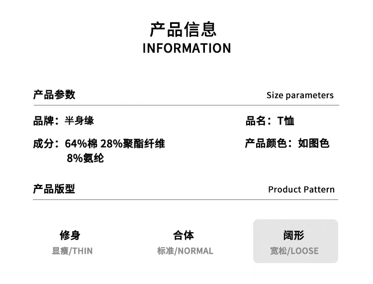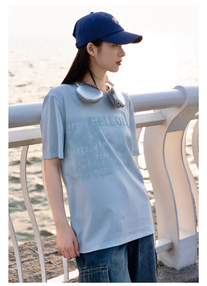 半身缘男装 夏季情侣街头风简约字母印花宽松短袖T恤262112U01110357