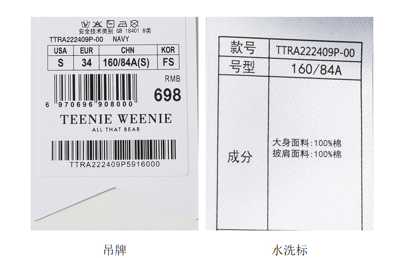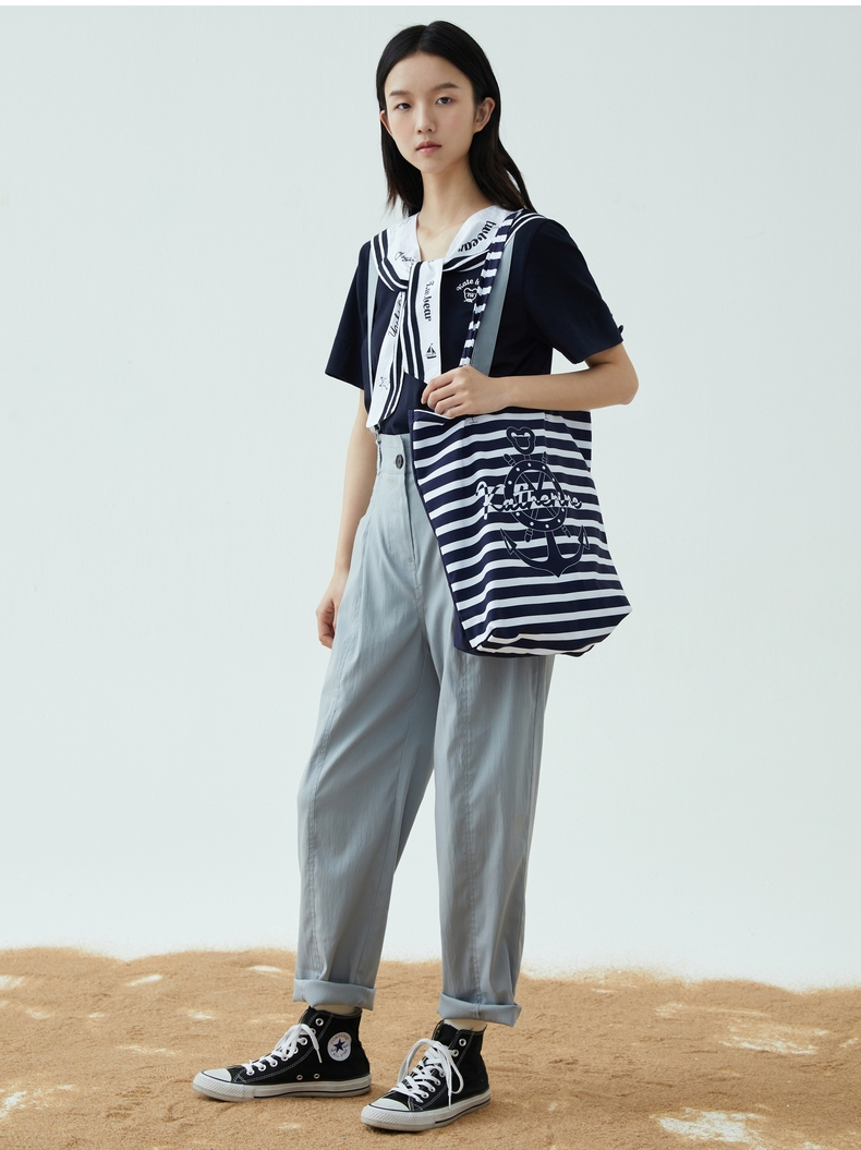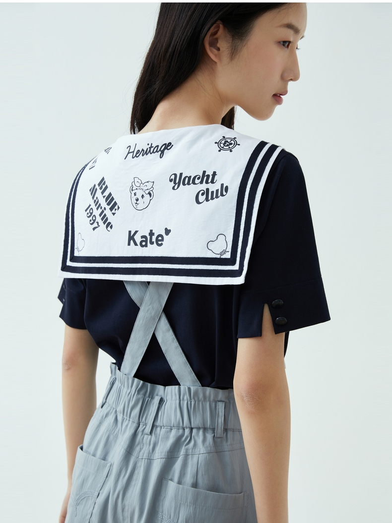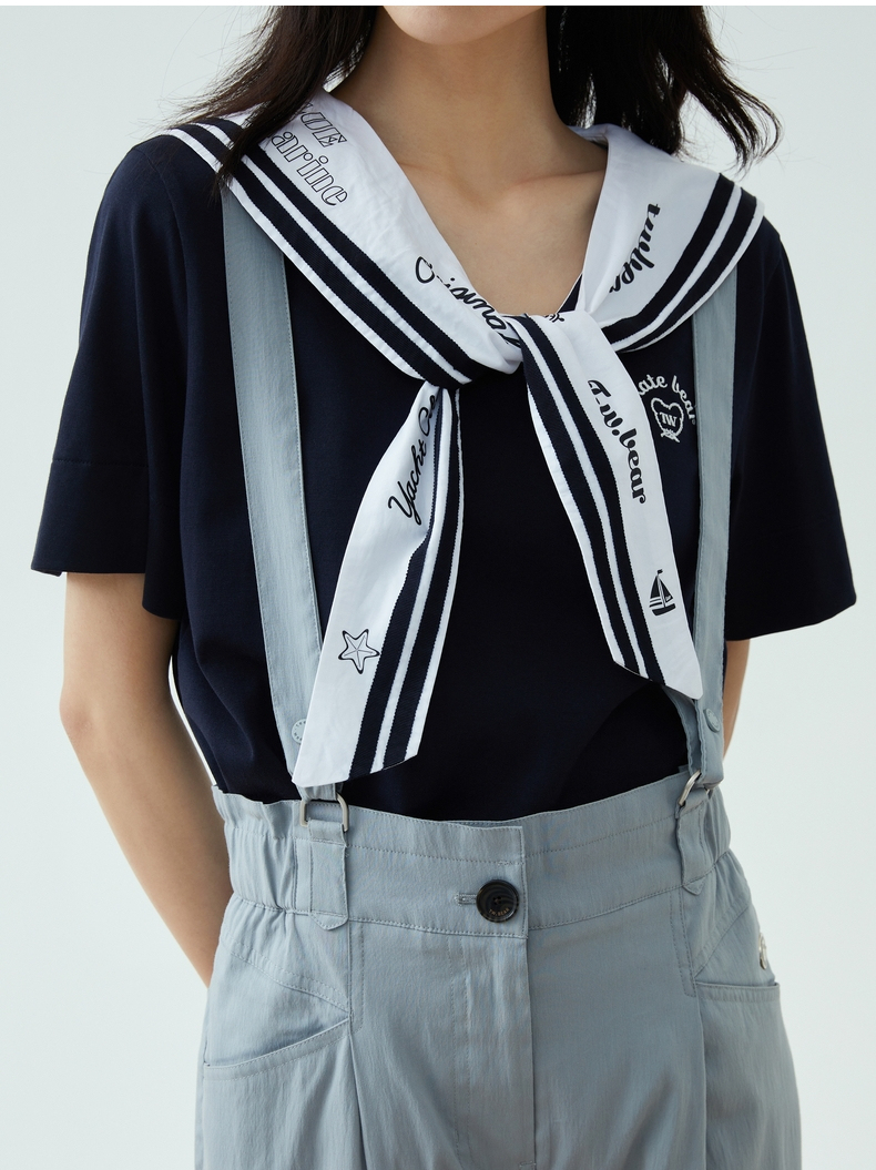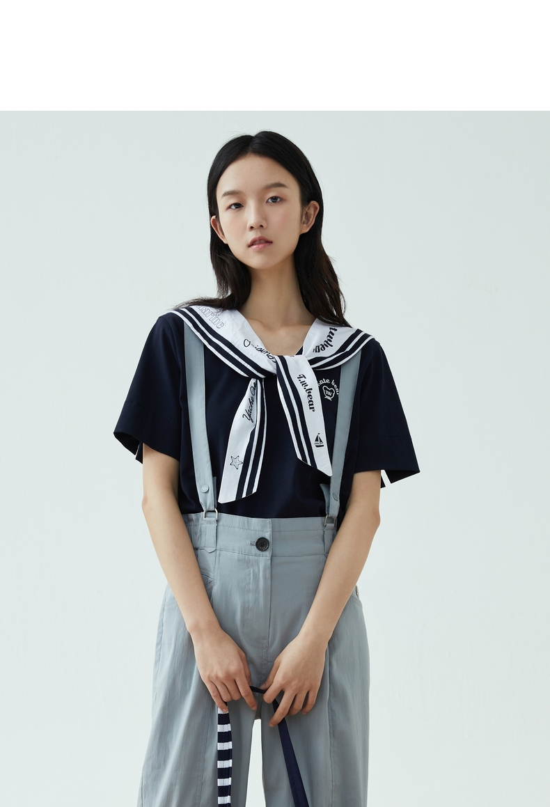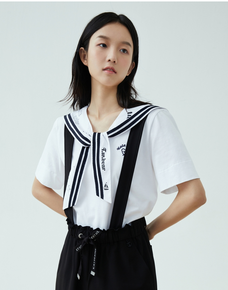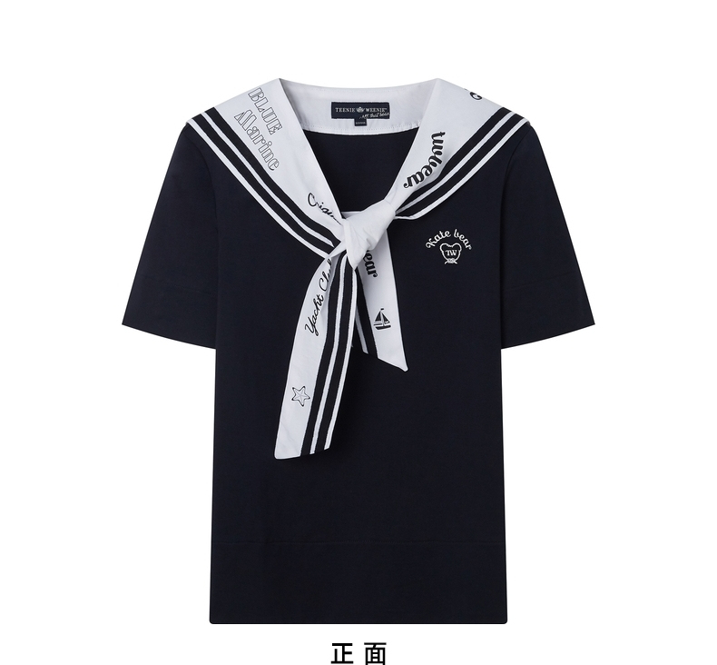 TeenieWeenie小熊2022新款女海军风宽松可爱短袖T恤TTRA222409P