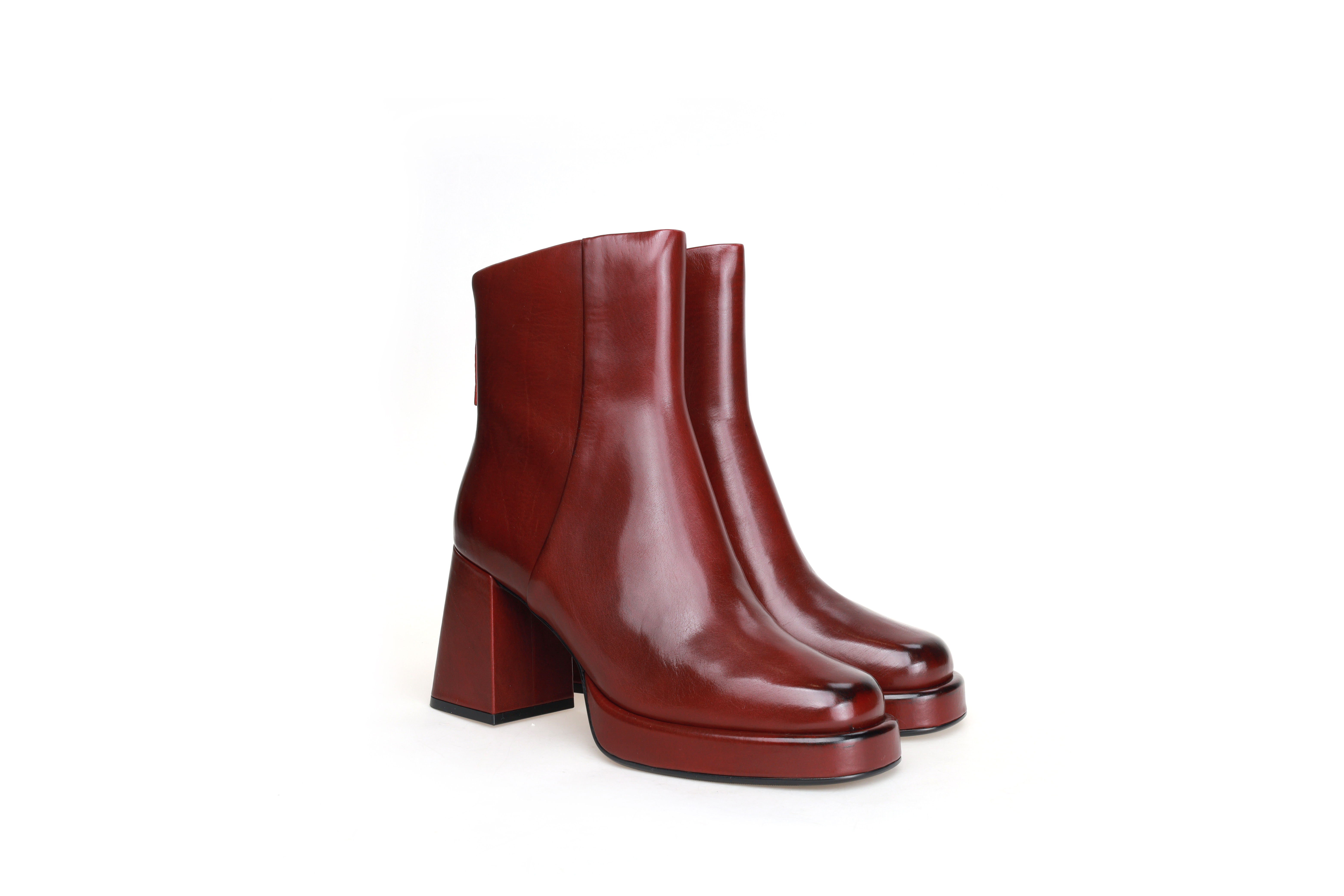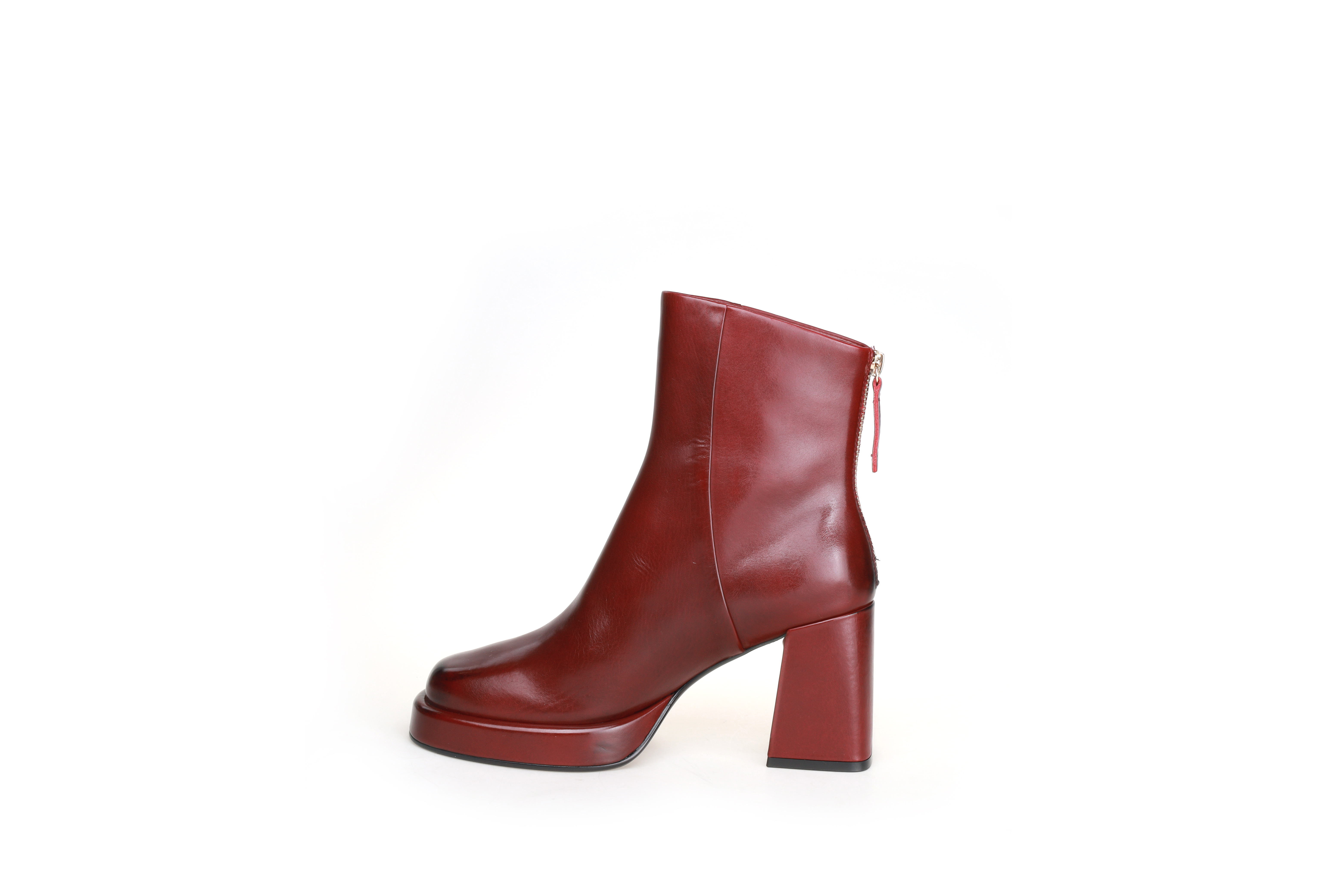 豪麟名鞋奥莱迪嘉女鞋短靴胎牛皮革DJMPA42WN006酒红色 原价2960元