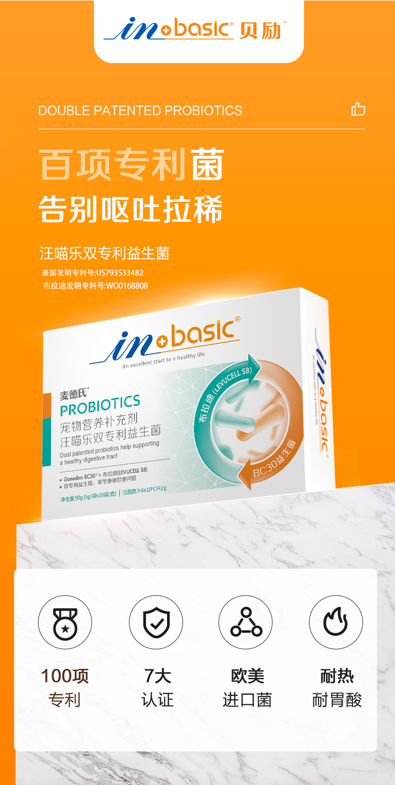 麦德氏IN-BASIC宠物益生菌宠物猫咪狗狗肠胃舒缓肠胃保护5g*5包