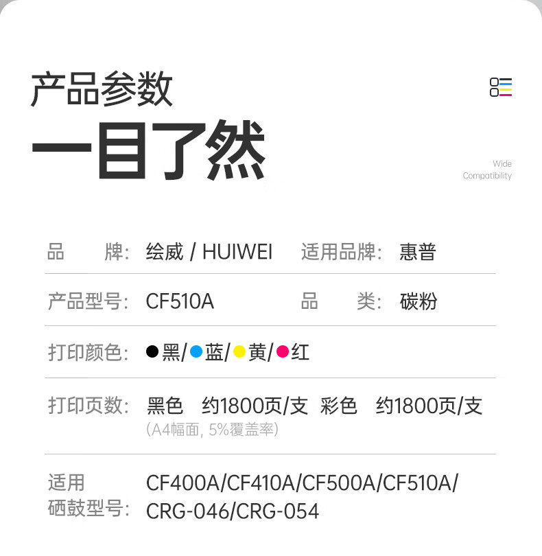 绘威适用惠普m180n m154a墨粉204a cf510a碳粉带芯片m181fw墨盒m154nw粉盒hp彩色激光打印机硒鼓碳粉 四色套装