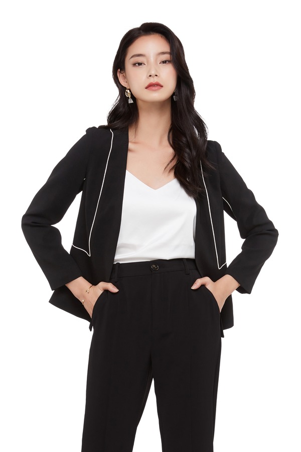 Lia Shade 黑色V领西装外套 5556