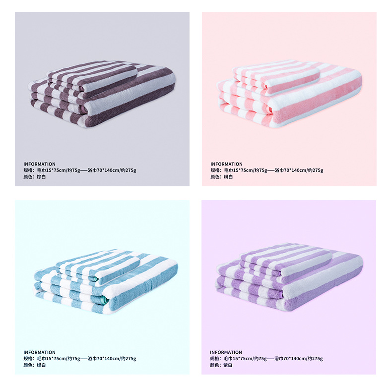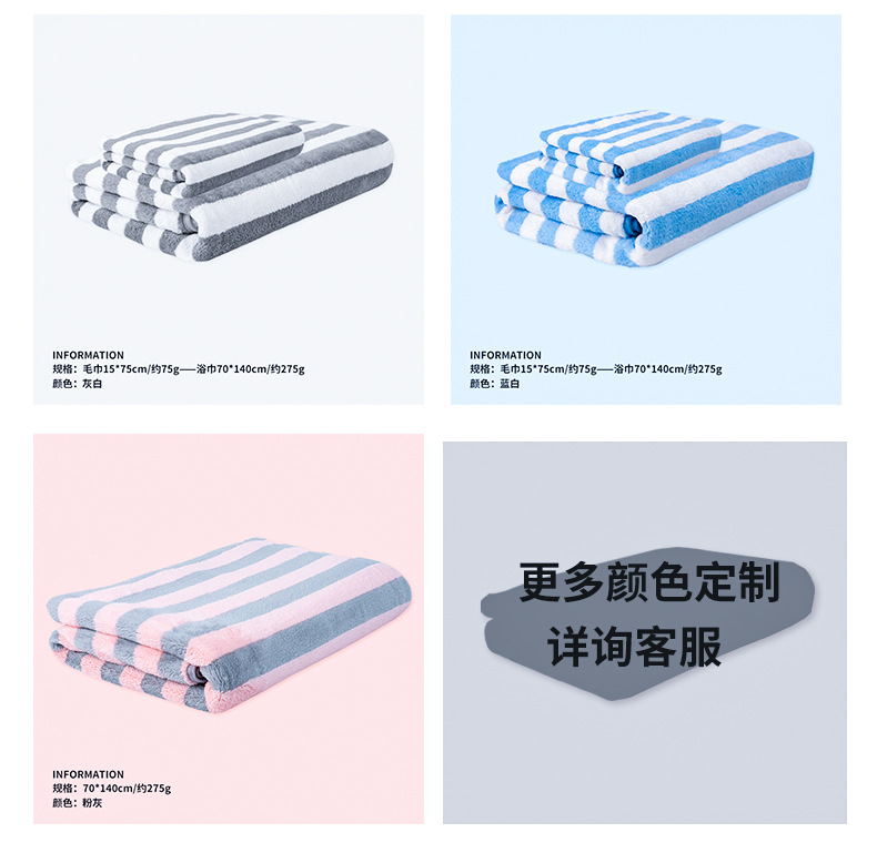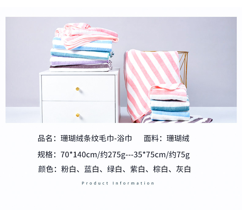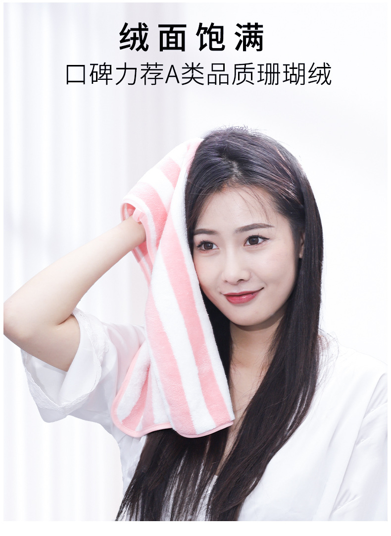 「9.9元包邮!数款可选」珊瑚绒毛巾加厚双面绒洗脸巾吸水包边非全棉条纹干发巾毛巾居家布艺