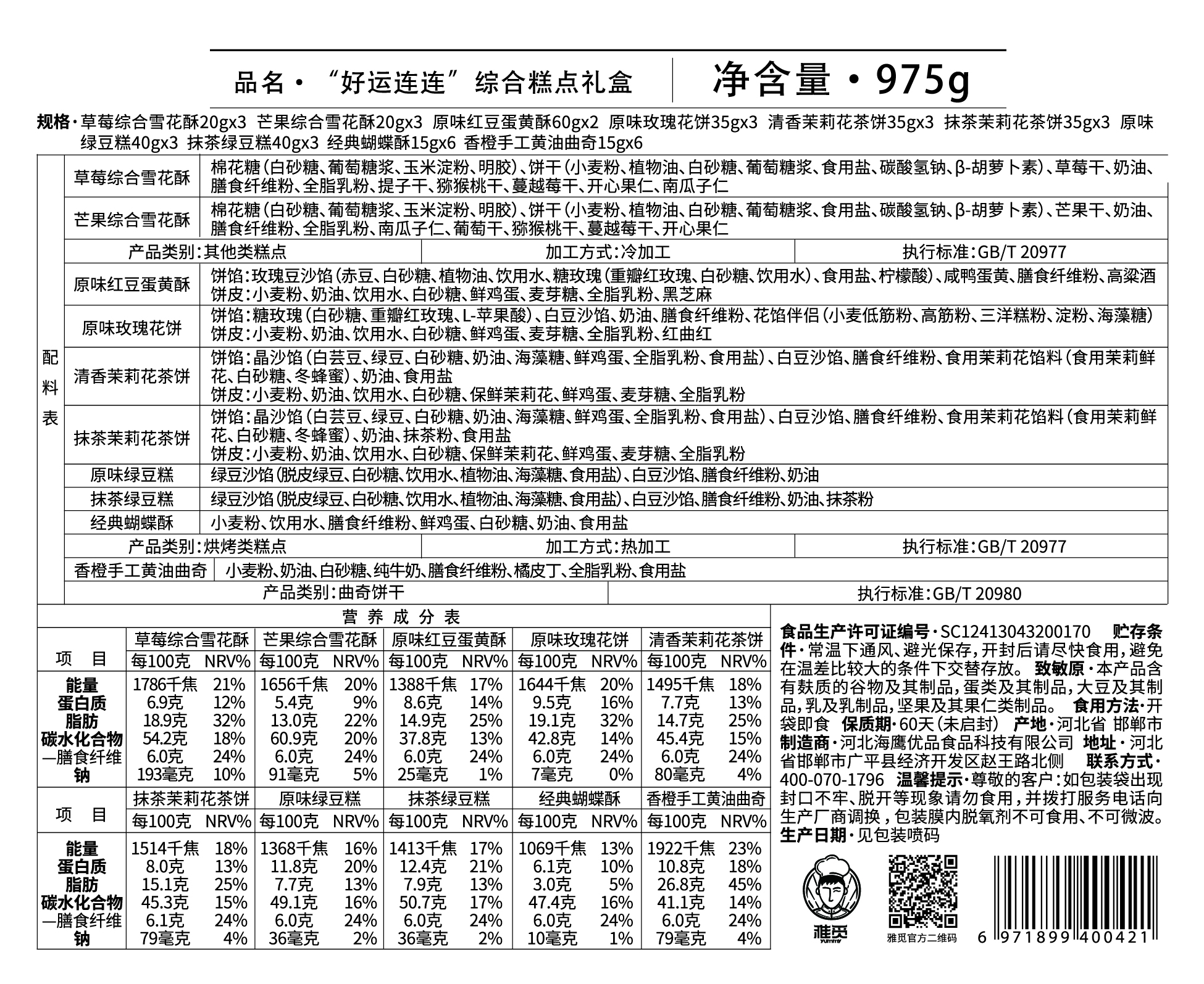 雅觅 好运连连礼盒975g 35枚 绿豆糕鲜花饼手工蛋黄酥蝴蝶酥曲奇饼干大礼包正宗传统糕点零食点心礼盒