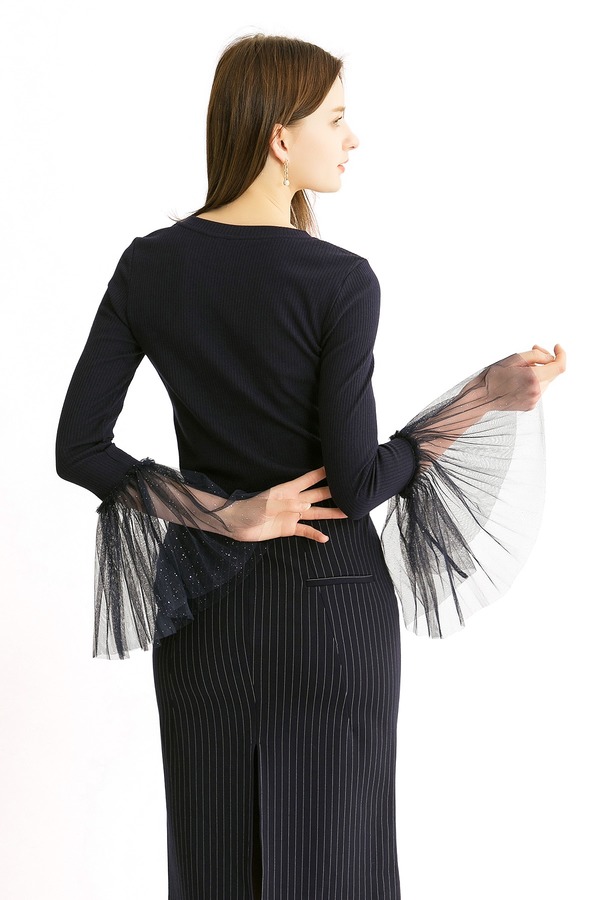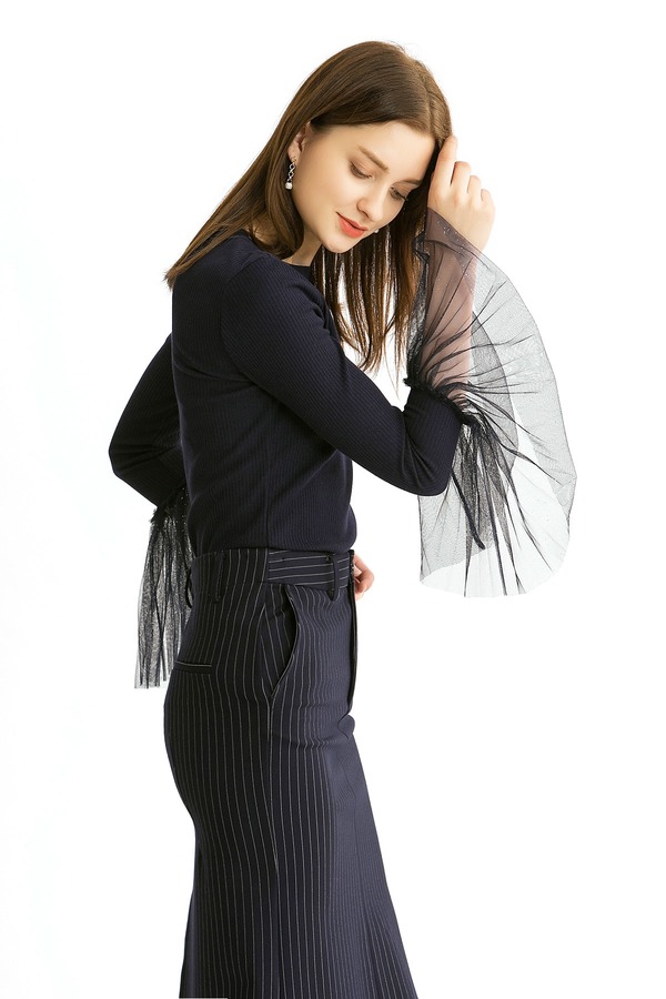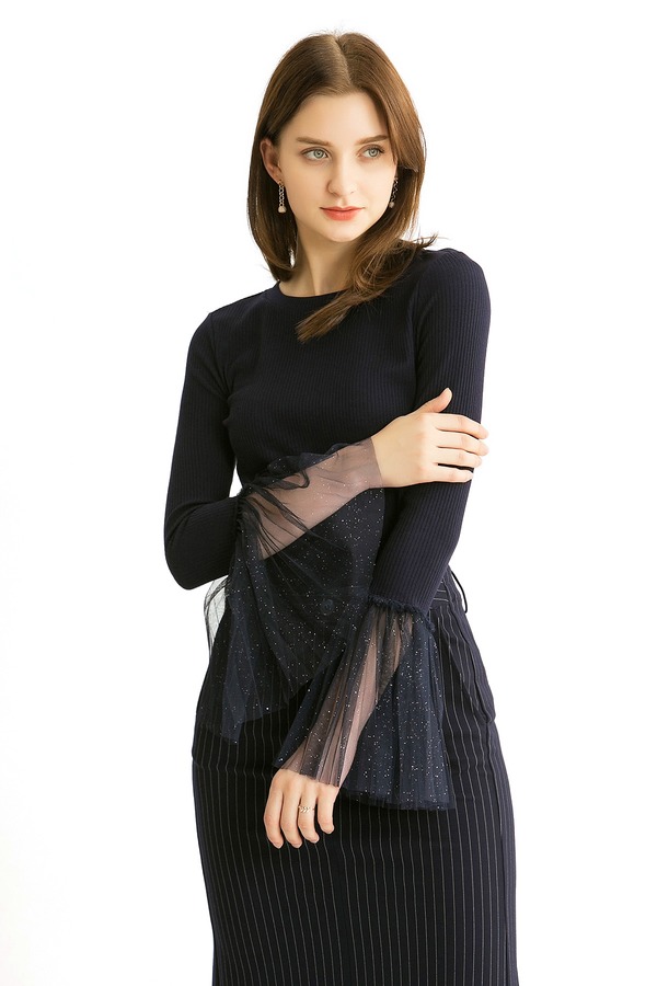 MIGAINO曼娅奴 网纱拼接深蓝色上衣 271