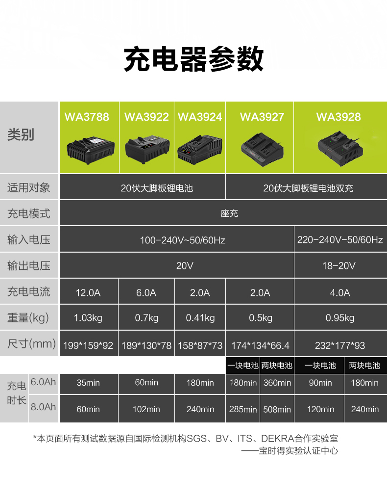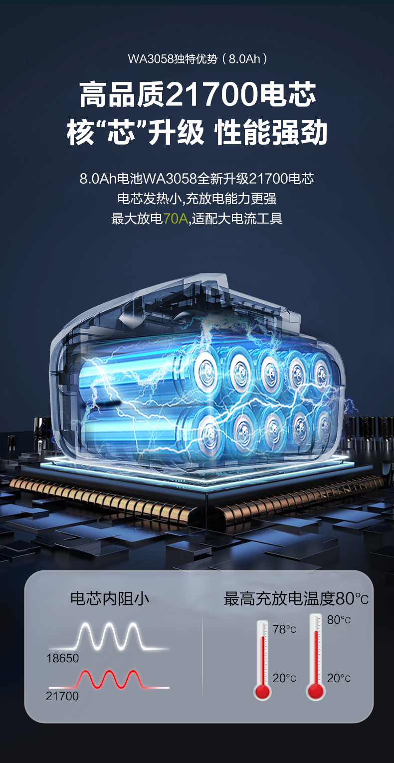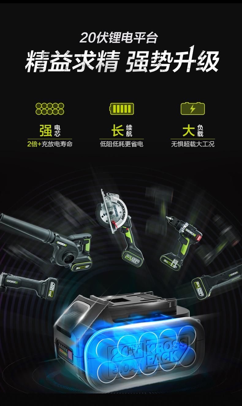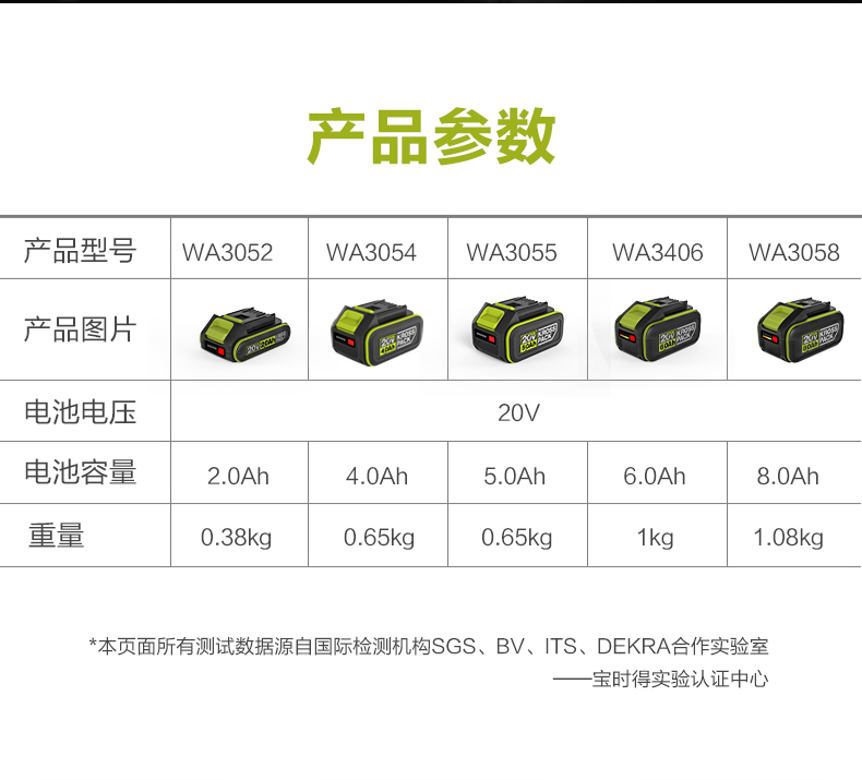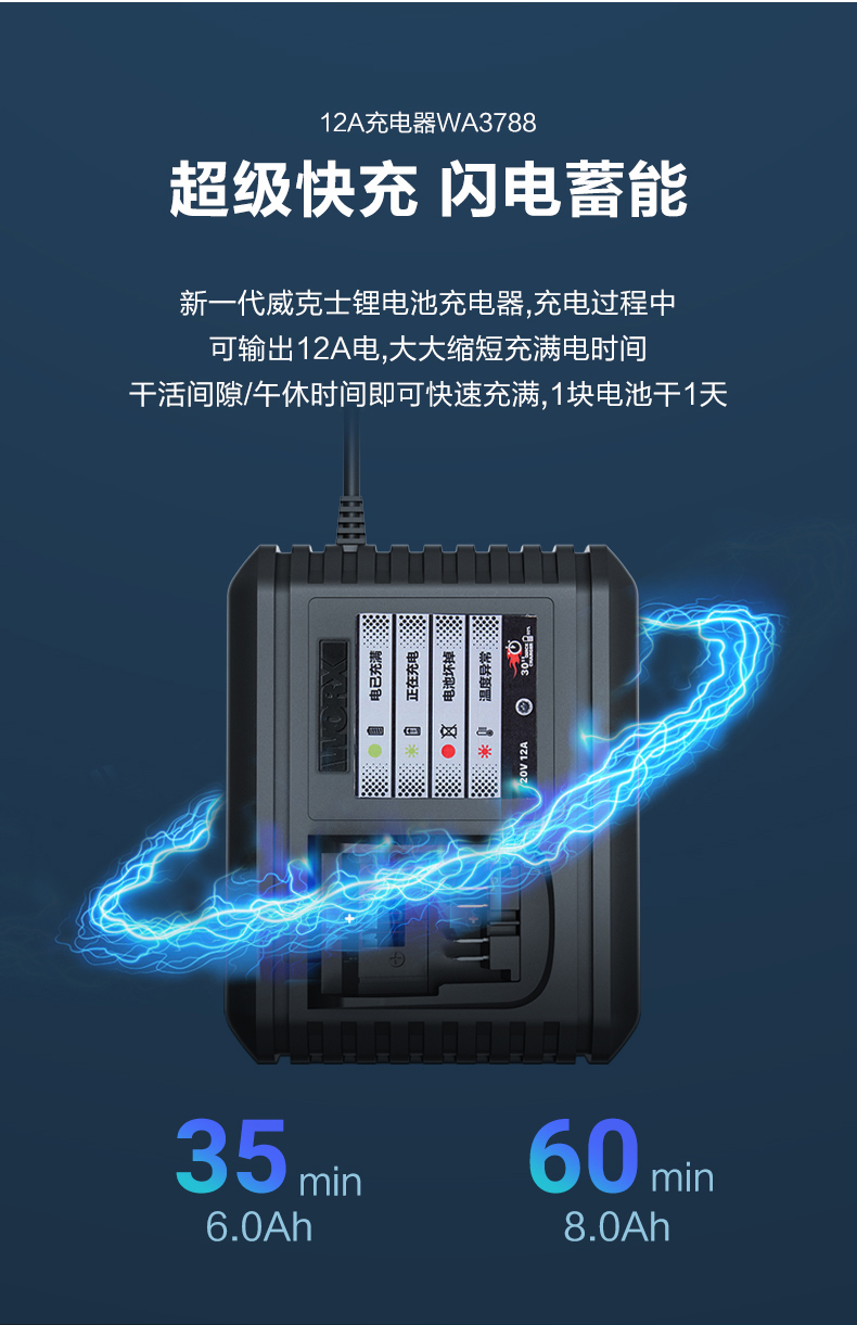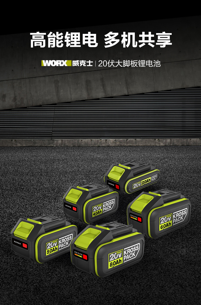 威克士20V锂电电池WA3054原装锂电池充电器通用锂电平台大脚板
