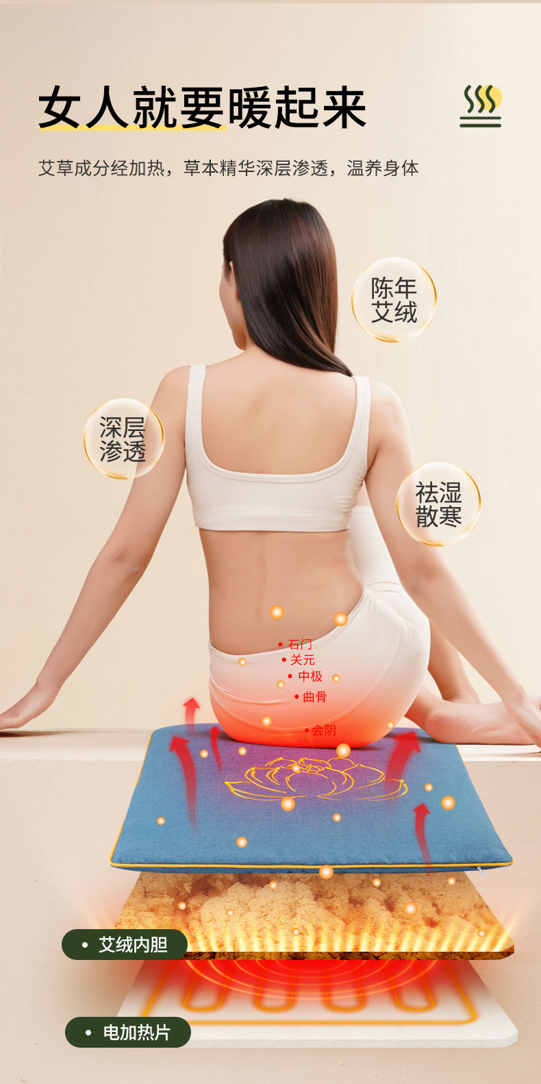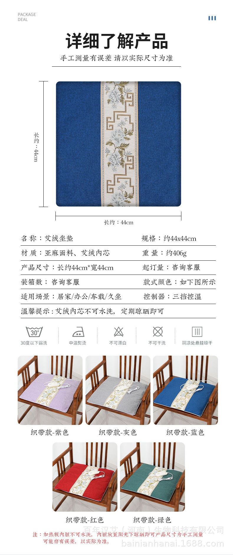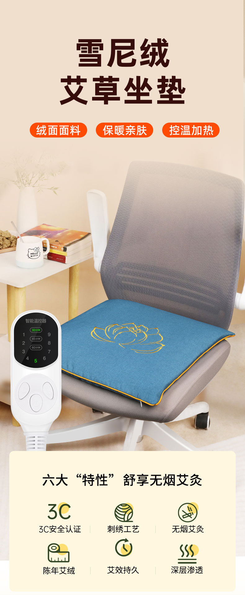 自然醒电加热艾绒坐垫艾草垫子办公室坐灸椅子毯艾绒红花热敷包臀部座垫BNHA