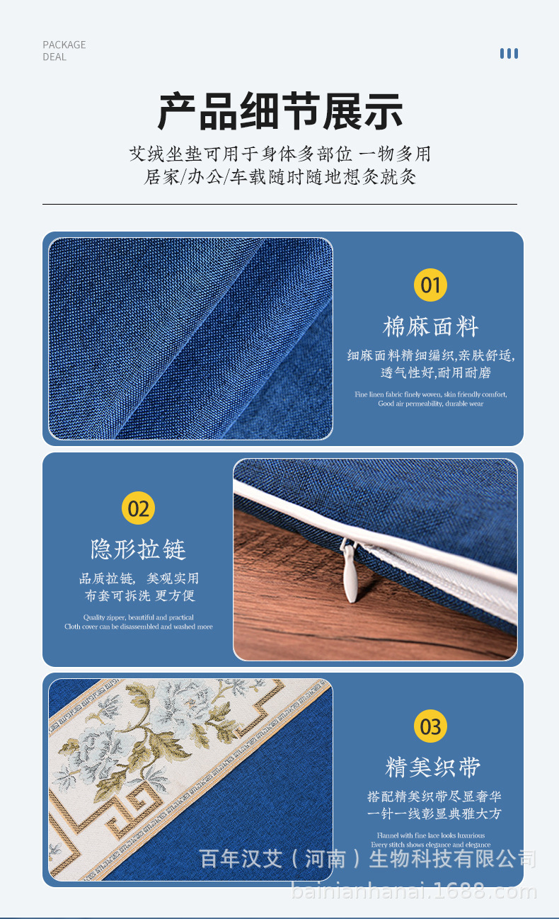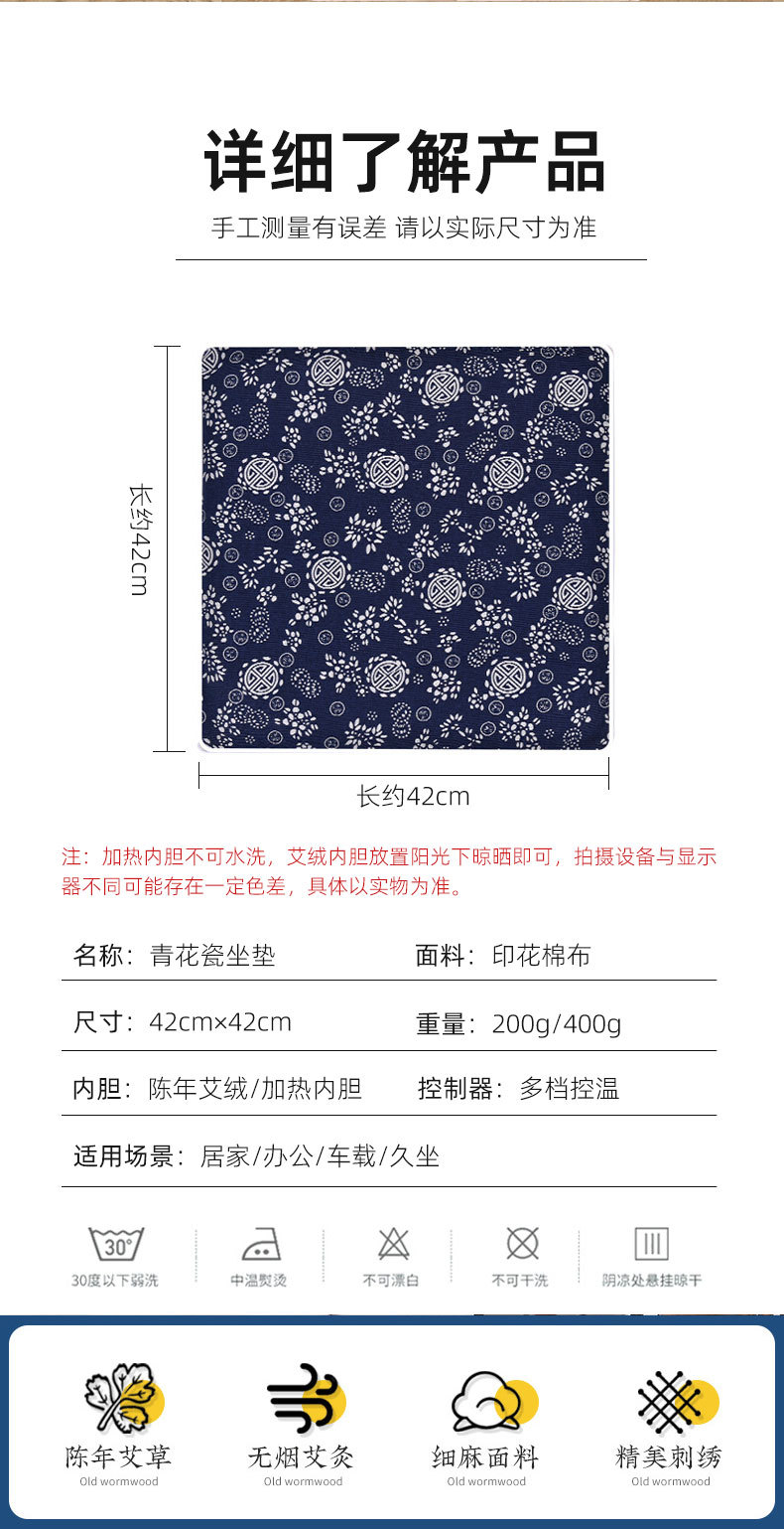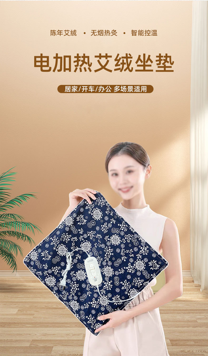 自然醒电加热艾绒坐垫艾草垫子办公室坐灸椅子毯艾绒红花热敷包臀部座垫BNHA