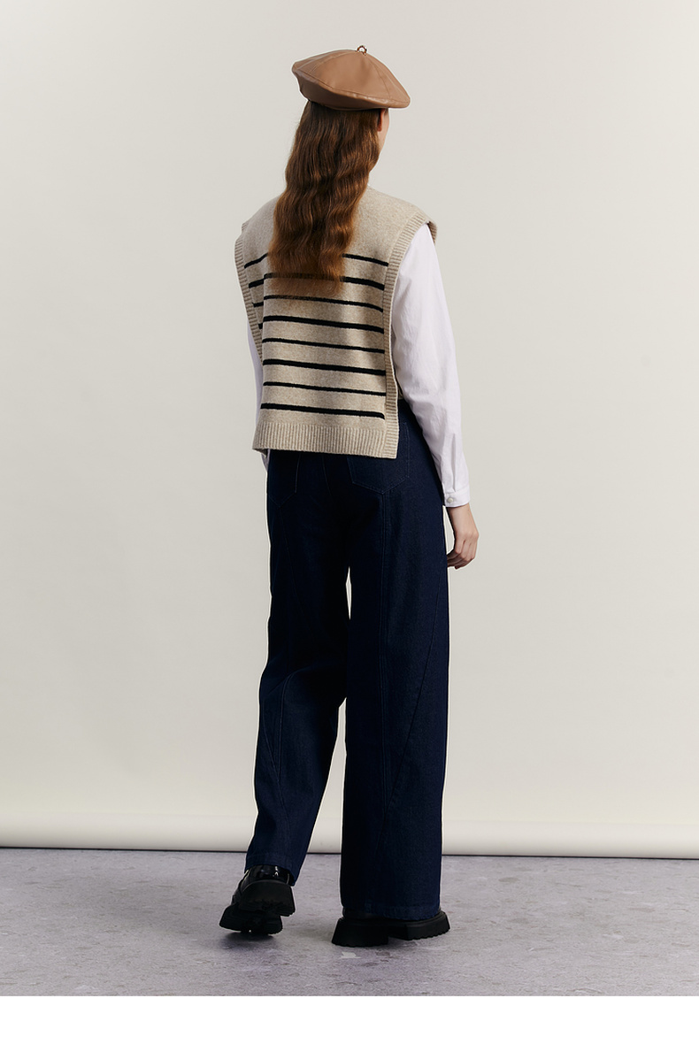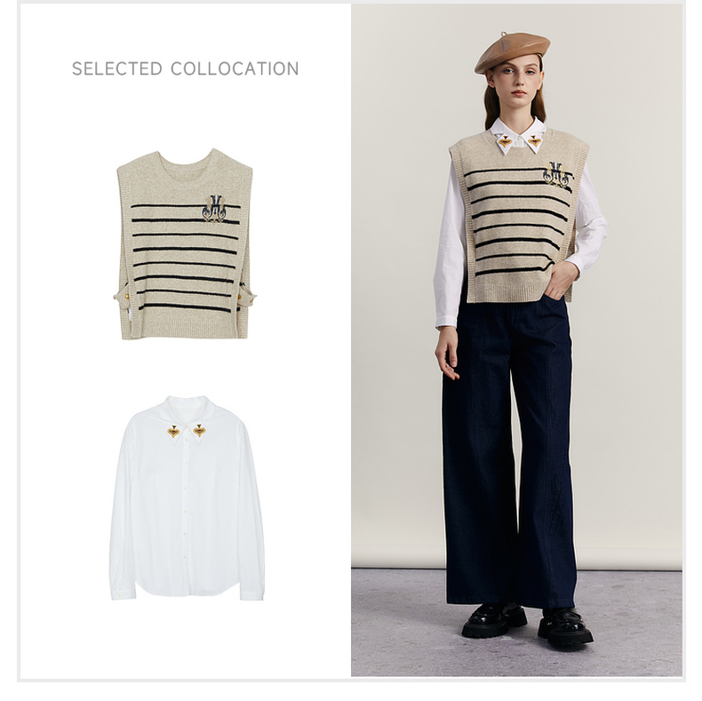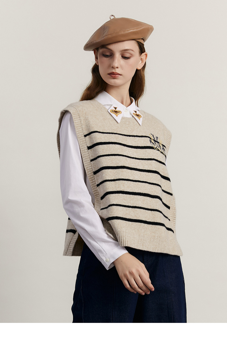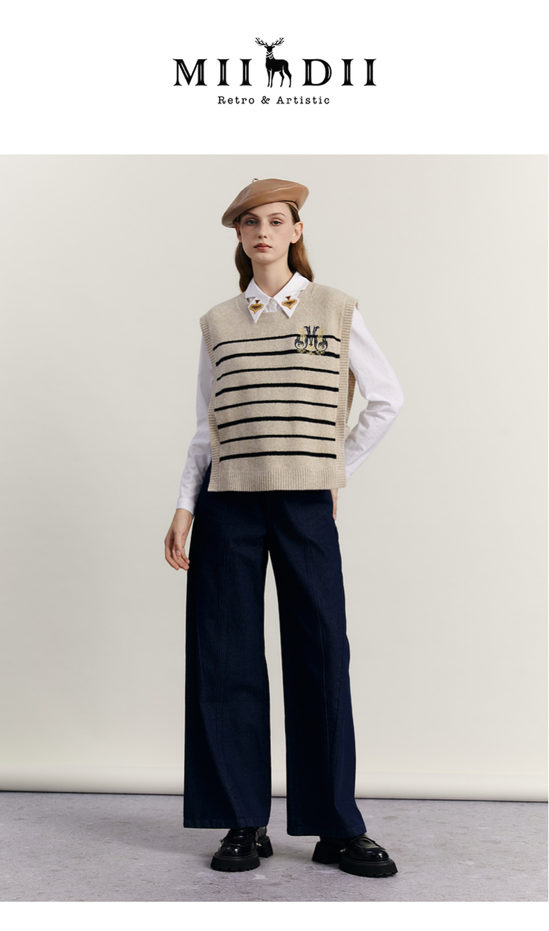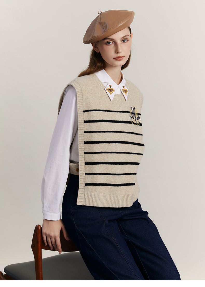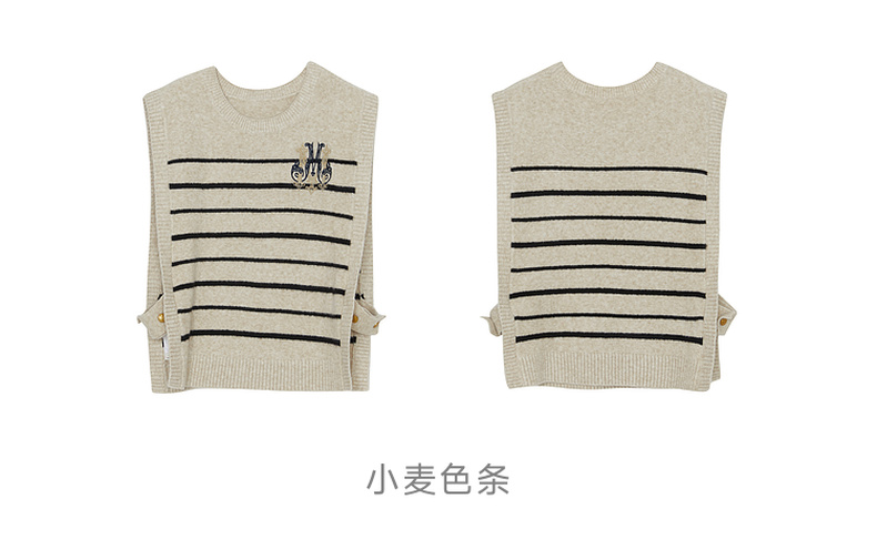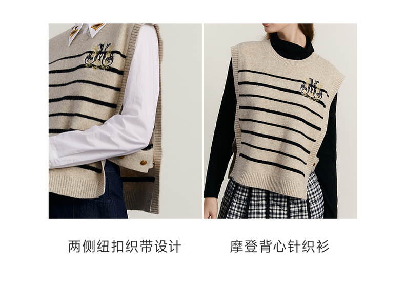 谜底针织背心女2023冬季新款复古学院风圆领套头针织衫234MZ1853