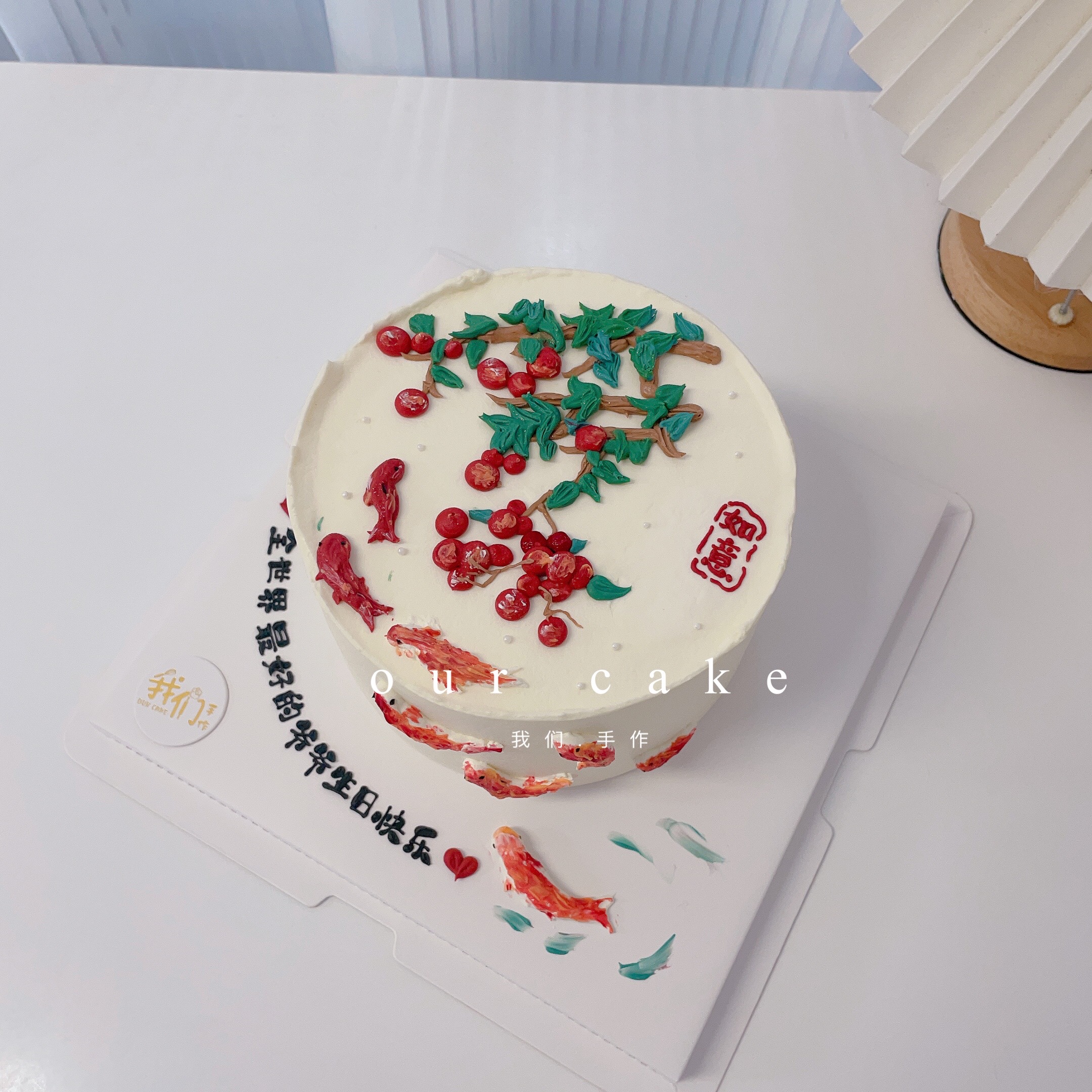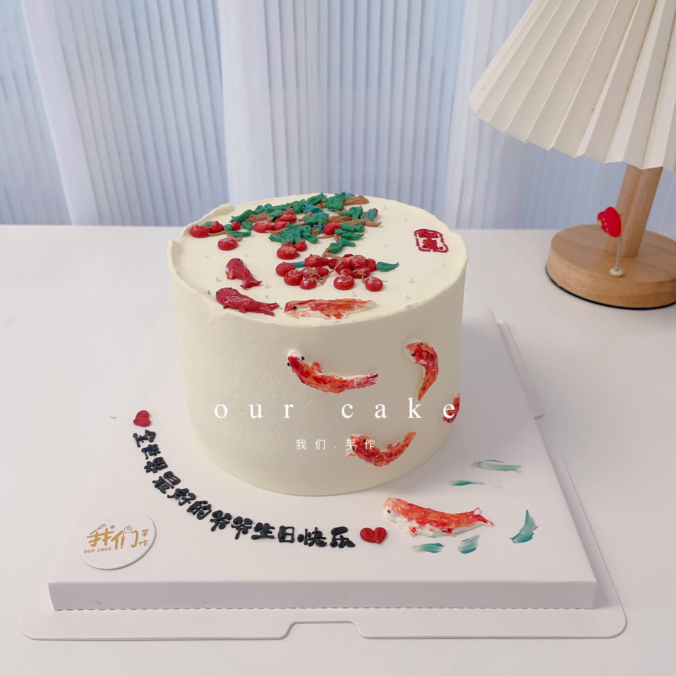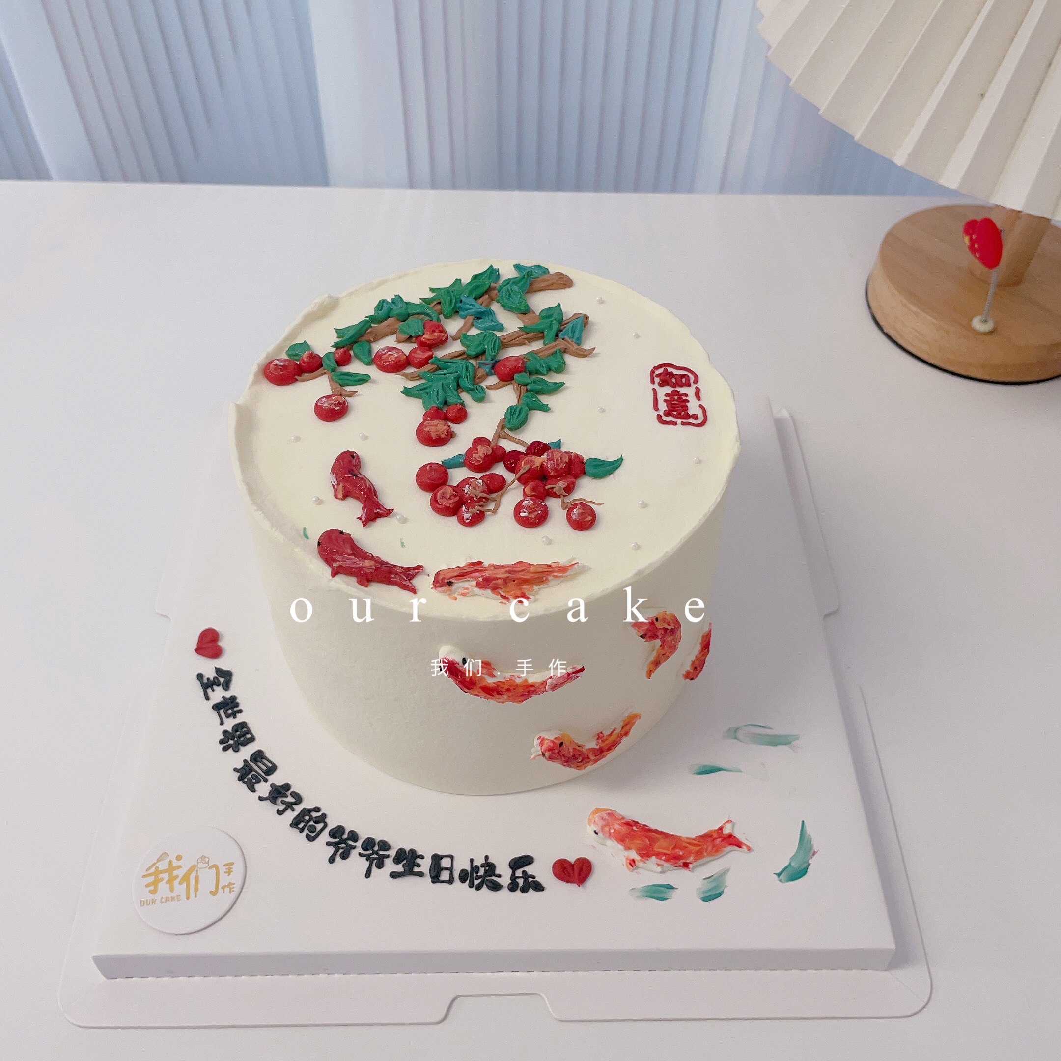 柿柿如意如鱼得水手绘蛋糕-低糖处理无添加