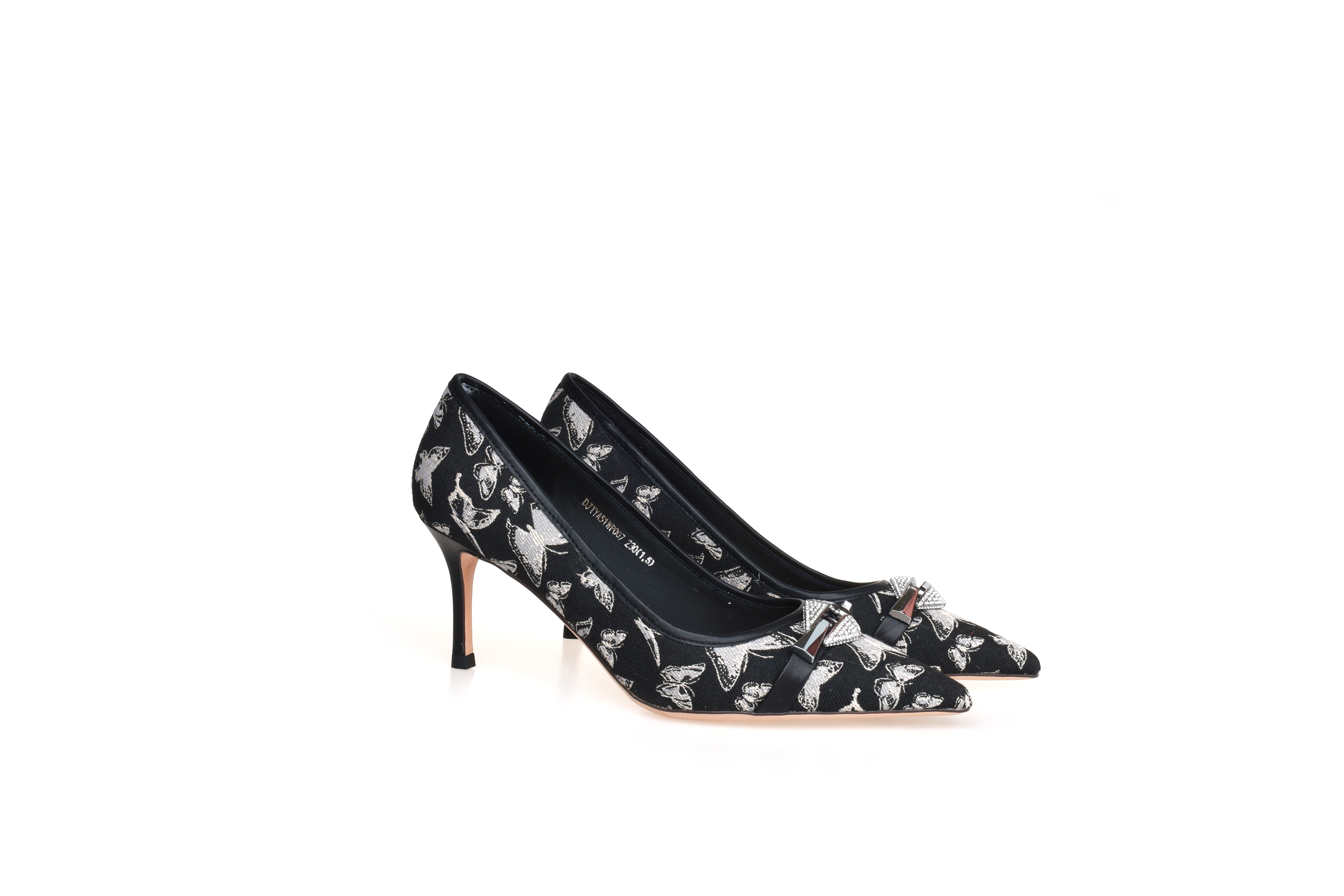 豪麟名鞋奥莱迪嘉女鞋皮鞋织物+牛皮革DJYYA51WP007黑色 原价1660元