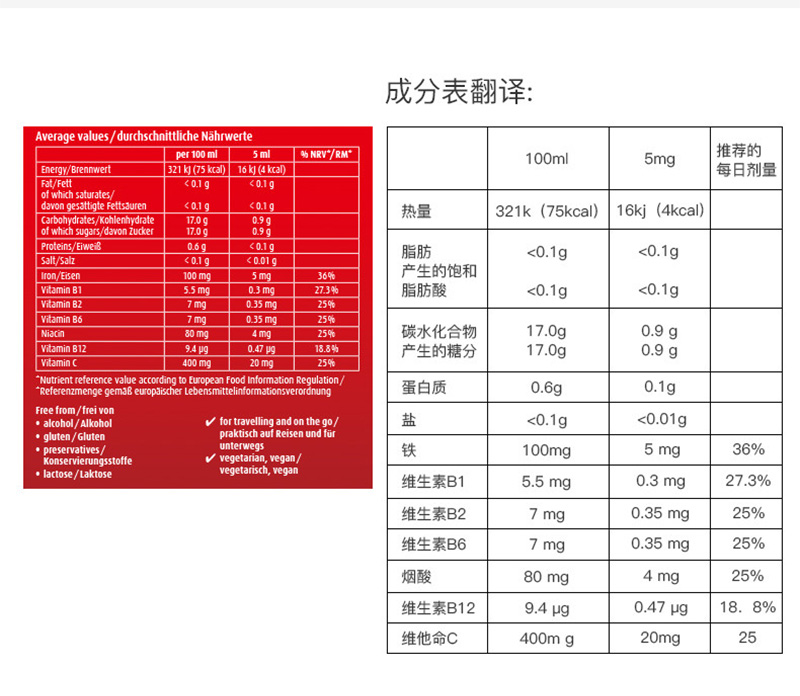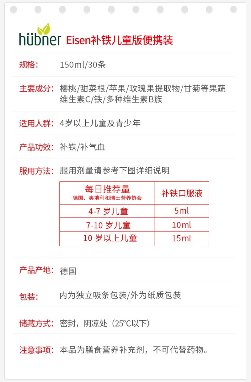德国Huebner郝柏娜儿童铁剂液体口服液