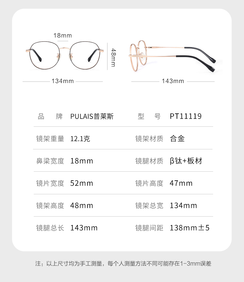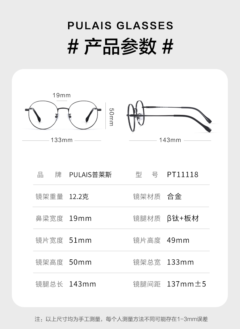 【特价秒杀款】普莱斯光学镜框PT11118/PT11119 经典百搭 复古圆框 β钛+板材+合金材质 多色可选