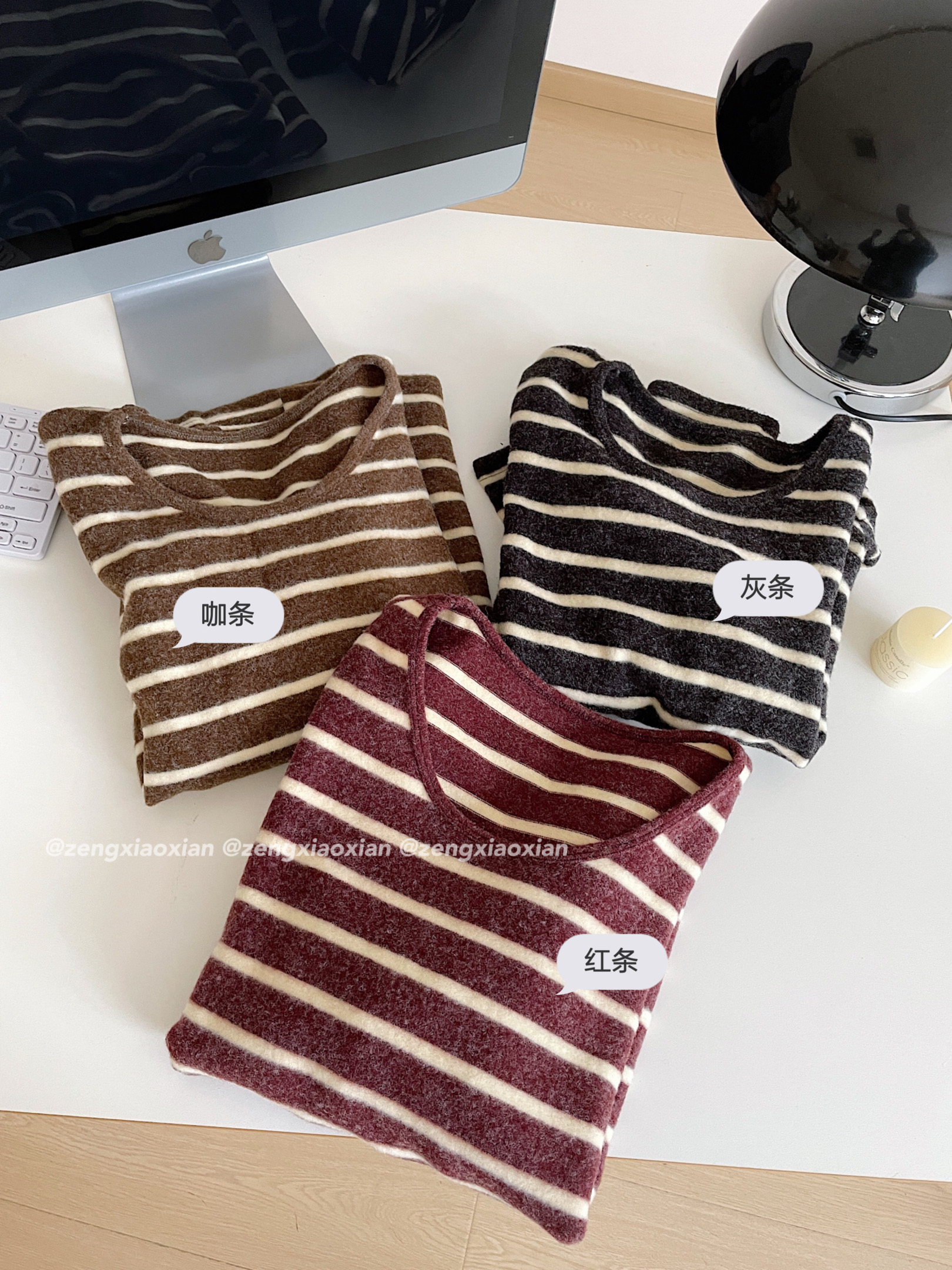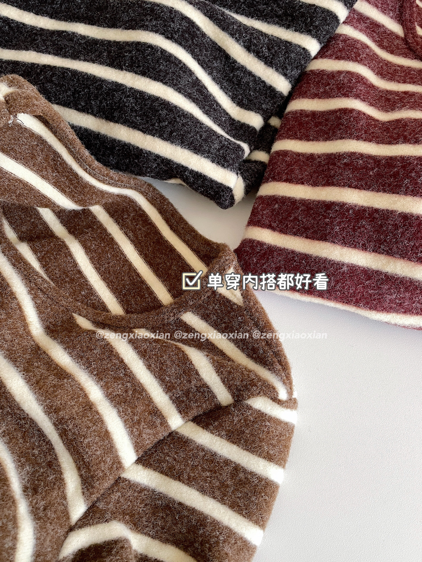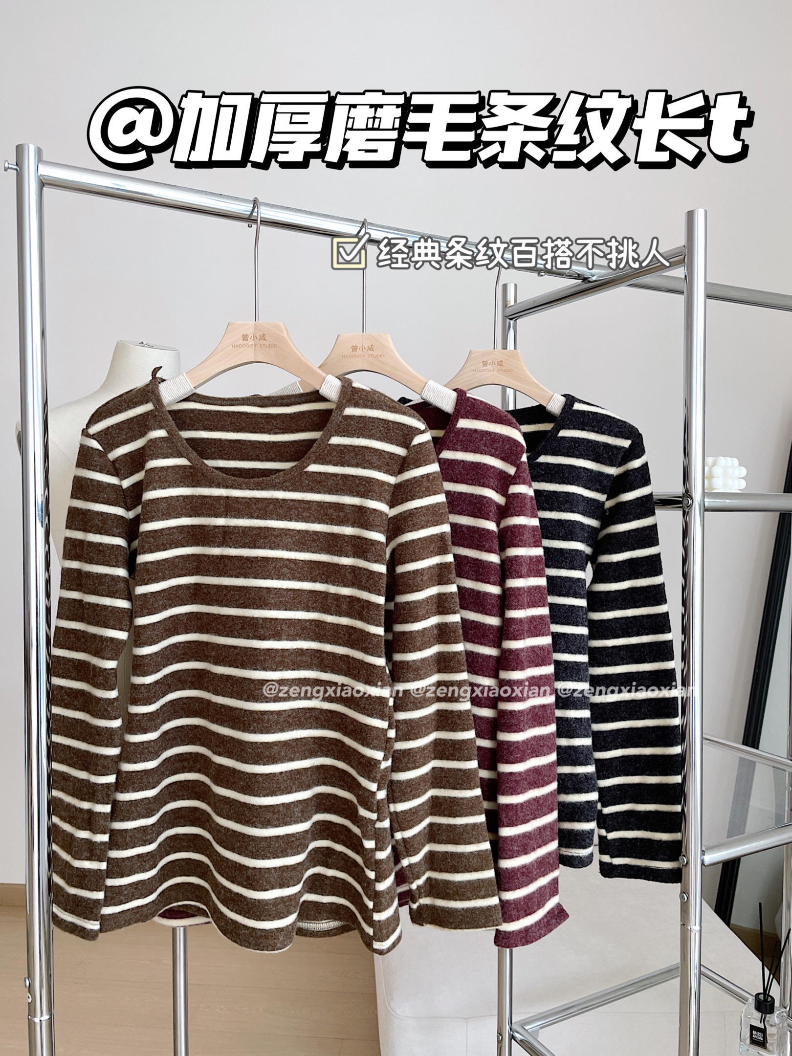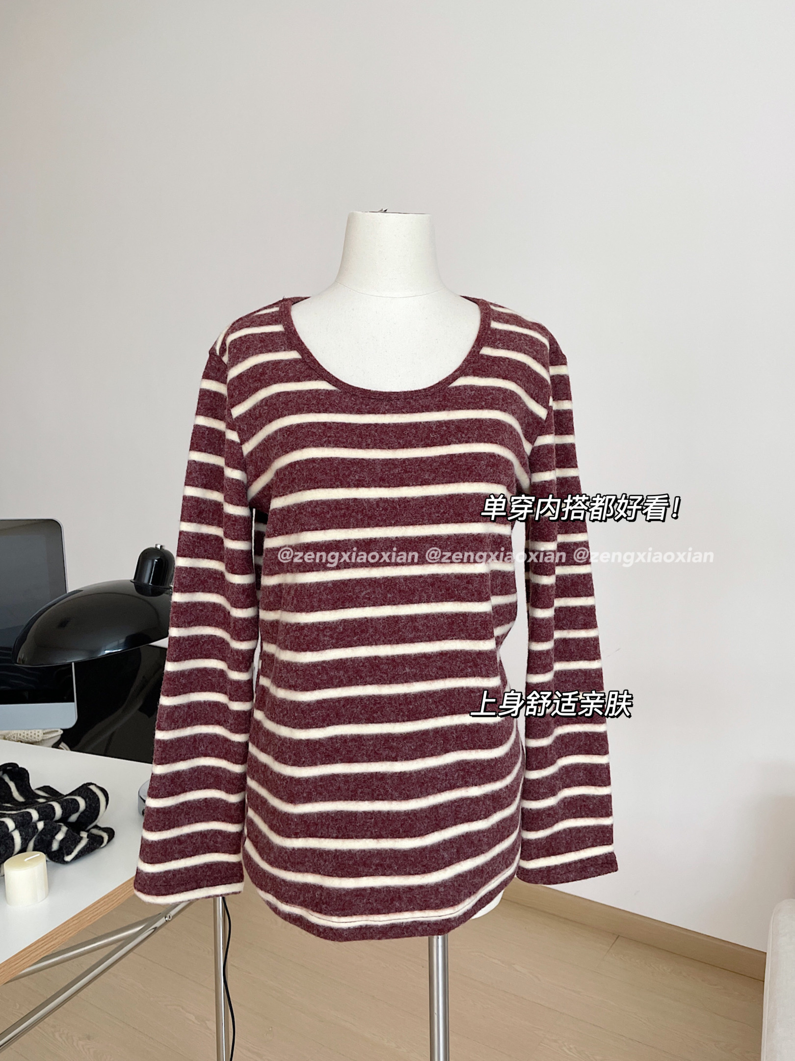 <曾小咸推荐> 磨毛撞色毛条纹长袖T