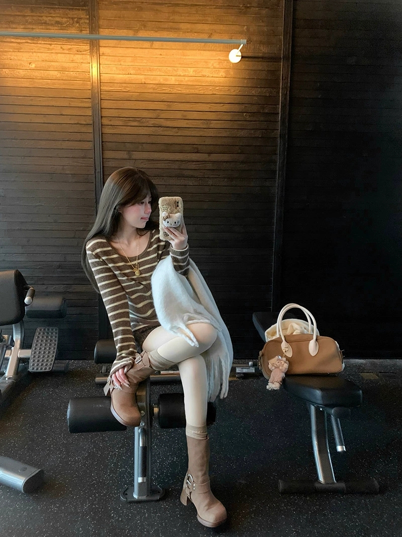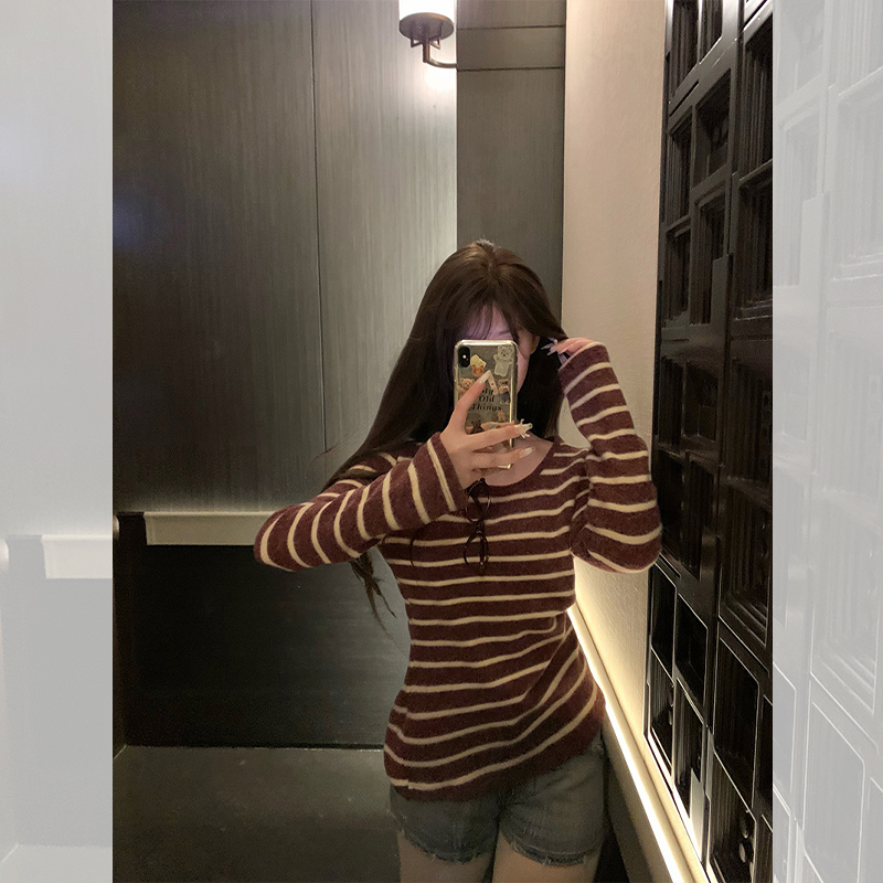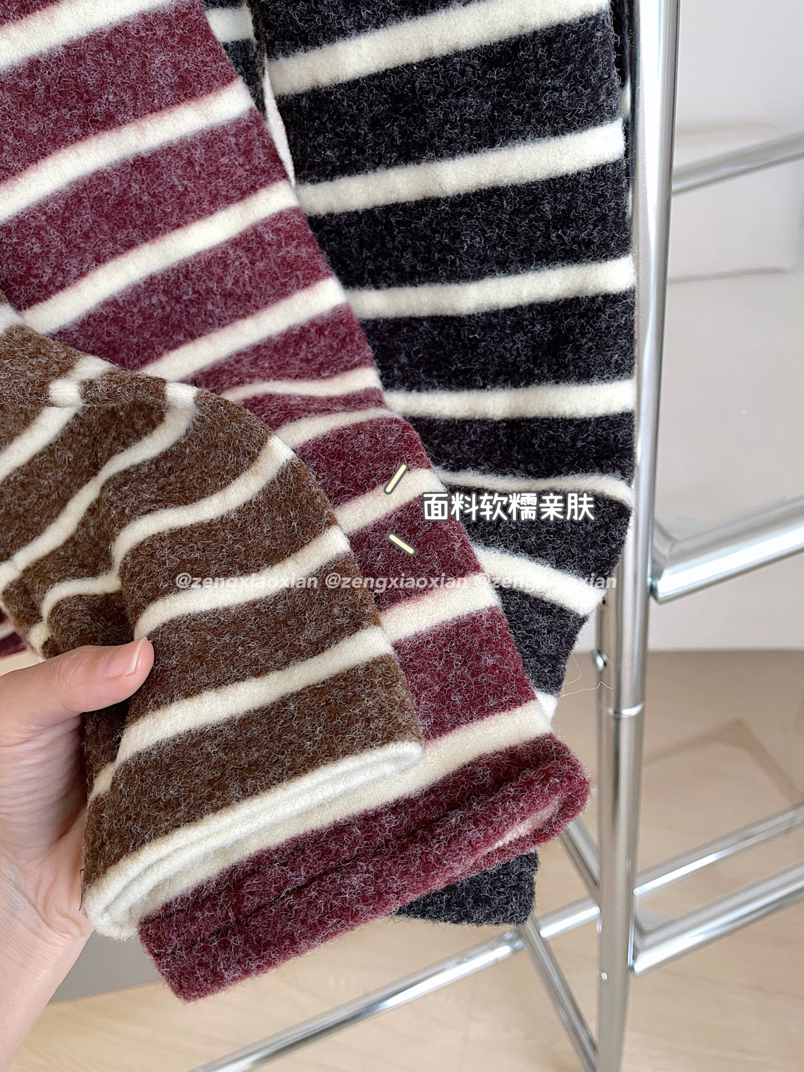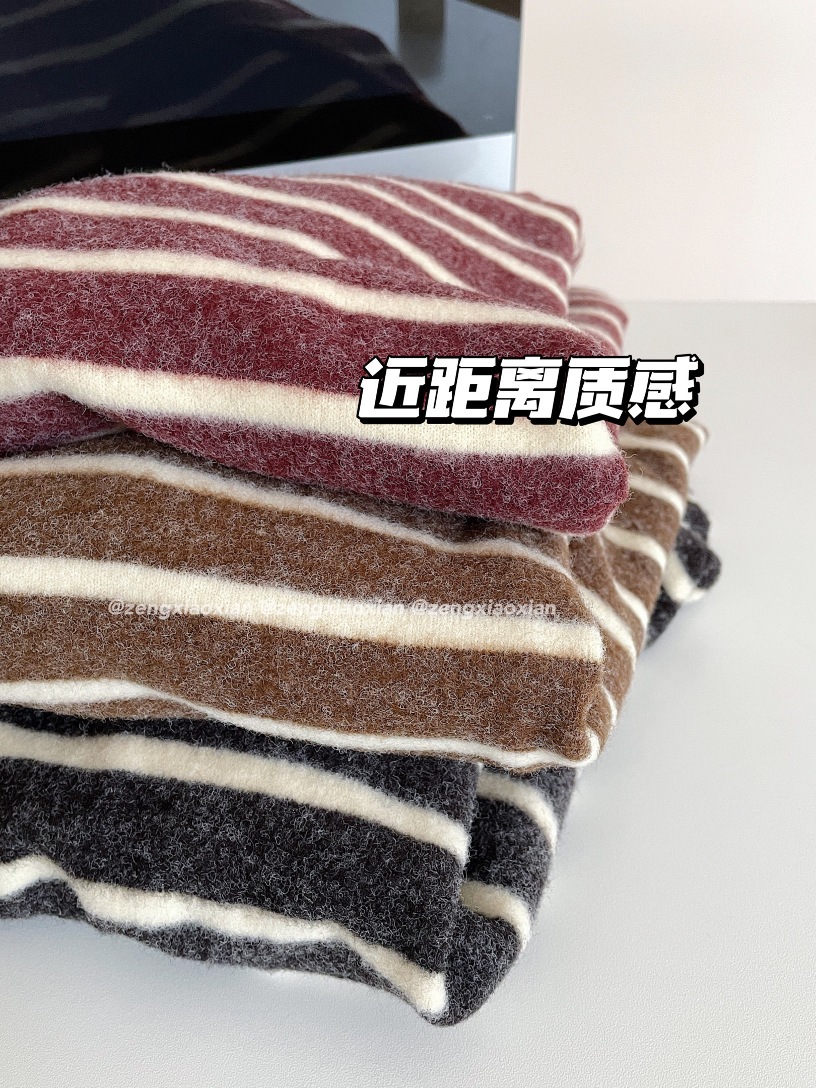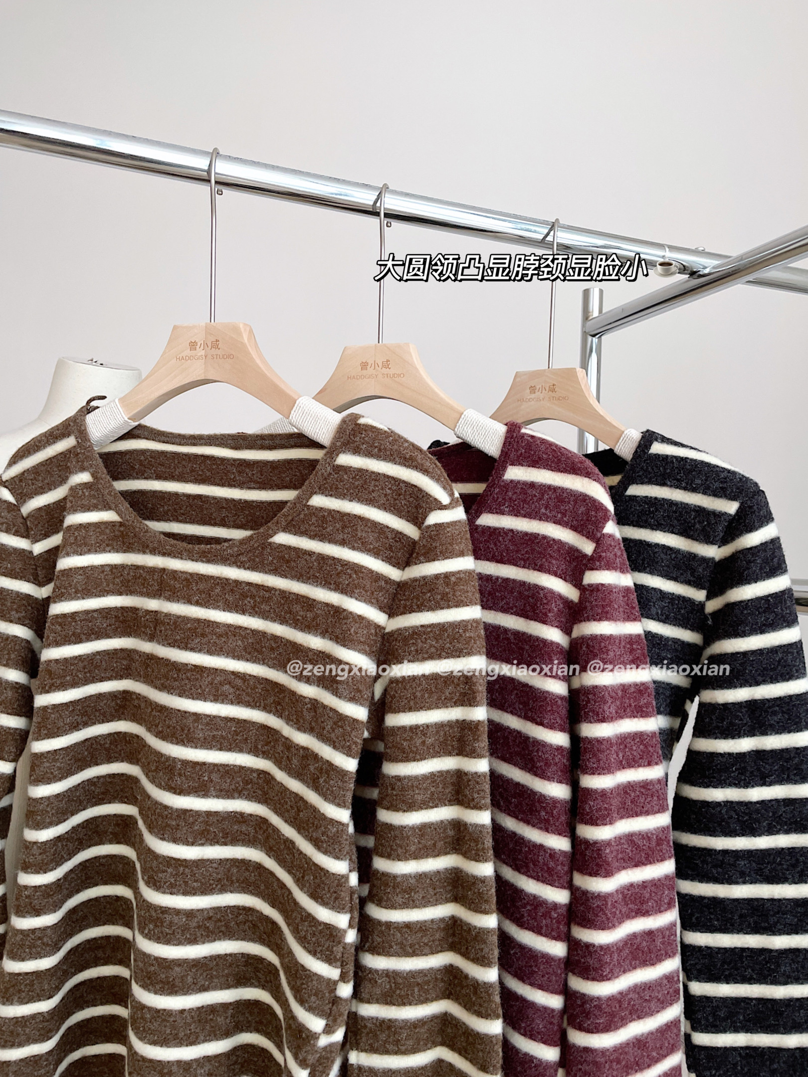 <曾小咸推荐> 磨毛撞色毛条纹长袖T