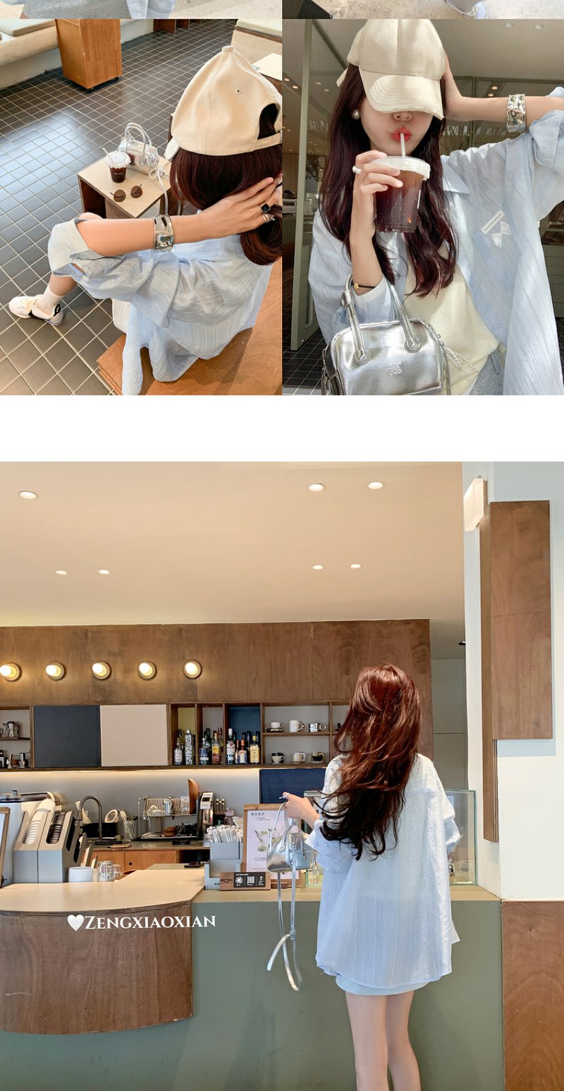 【169元任选2件】最后一波现货!蓝色薄款蝴蝶结衬衫