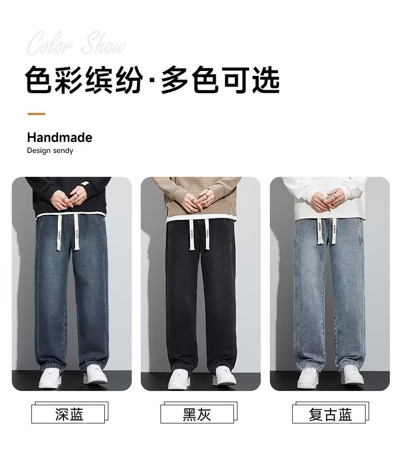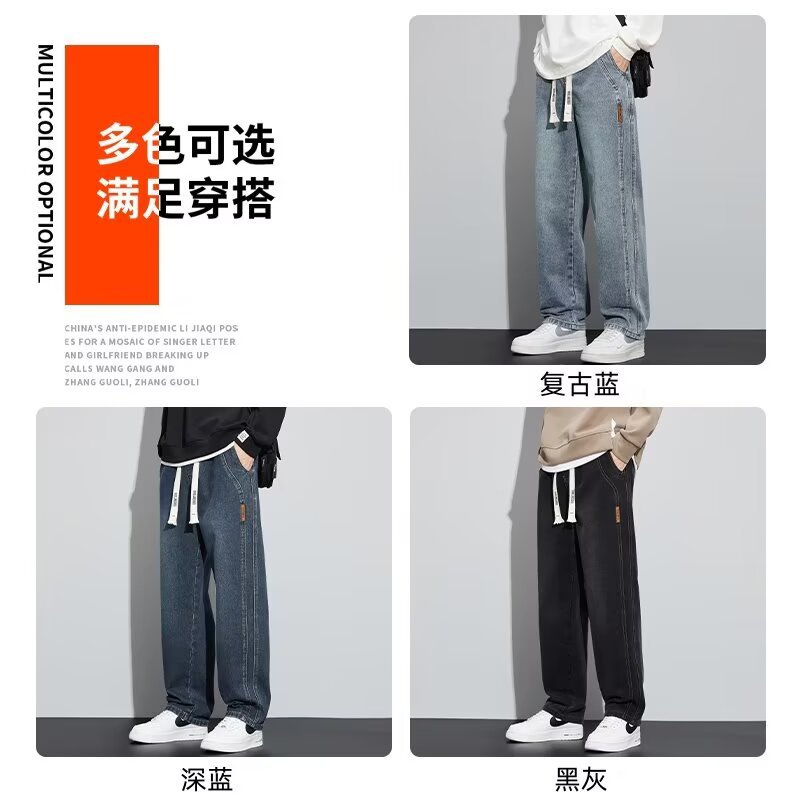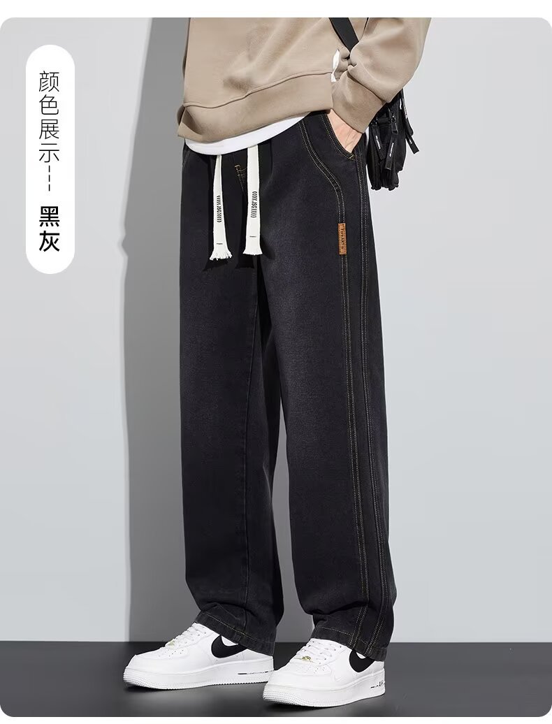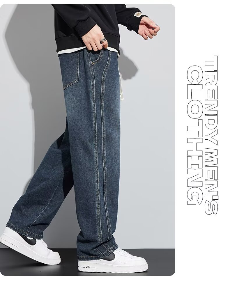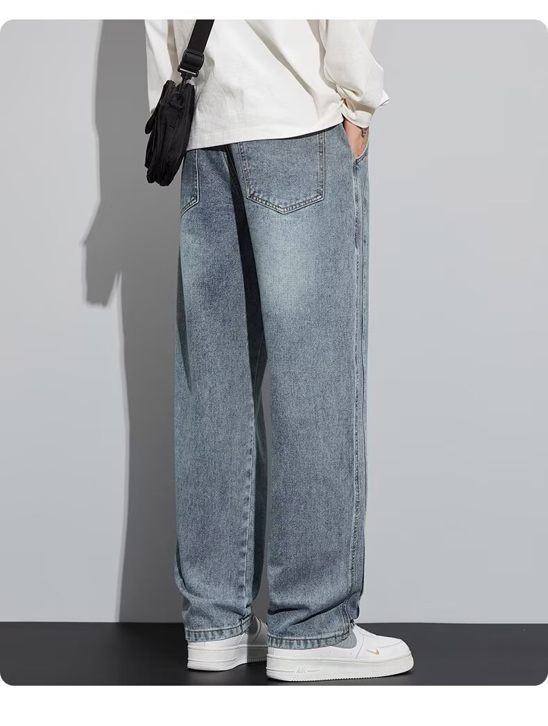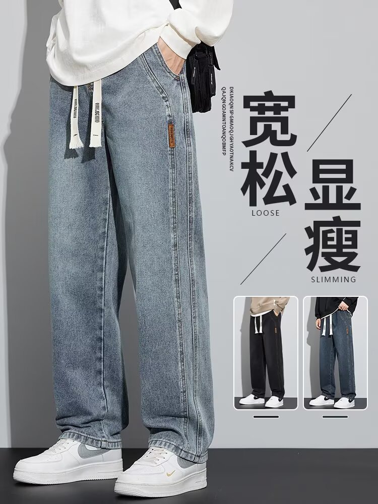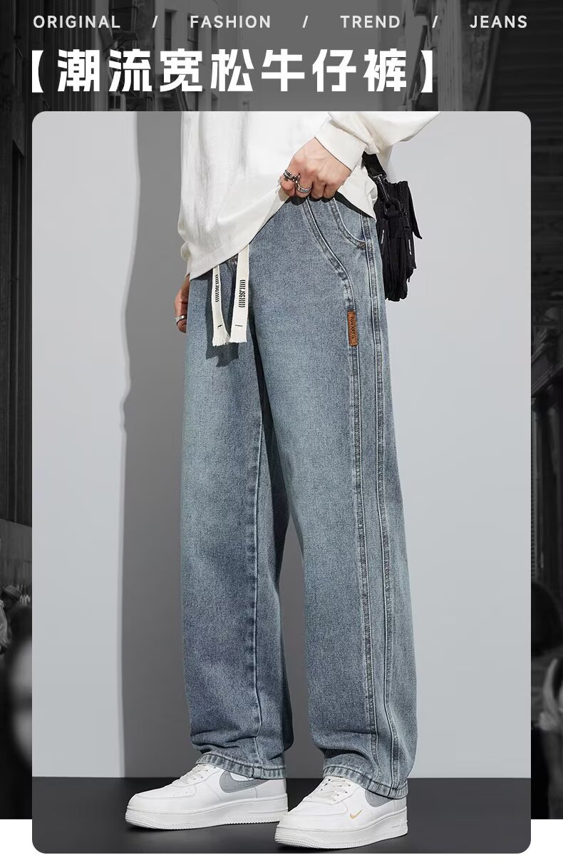 潮流男士宽松裤 春季牛仔裤 男新款宽松直筒美式阔腿裤 休闲青少年长裤