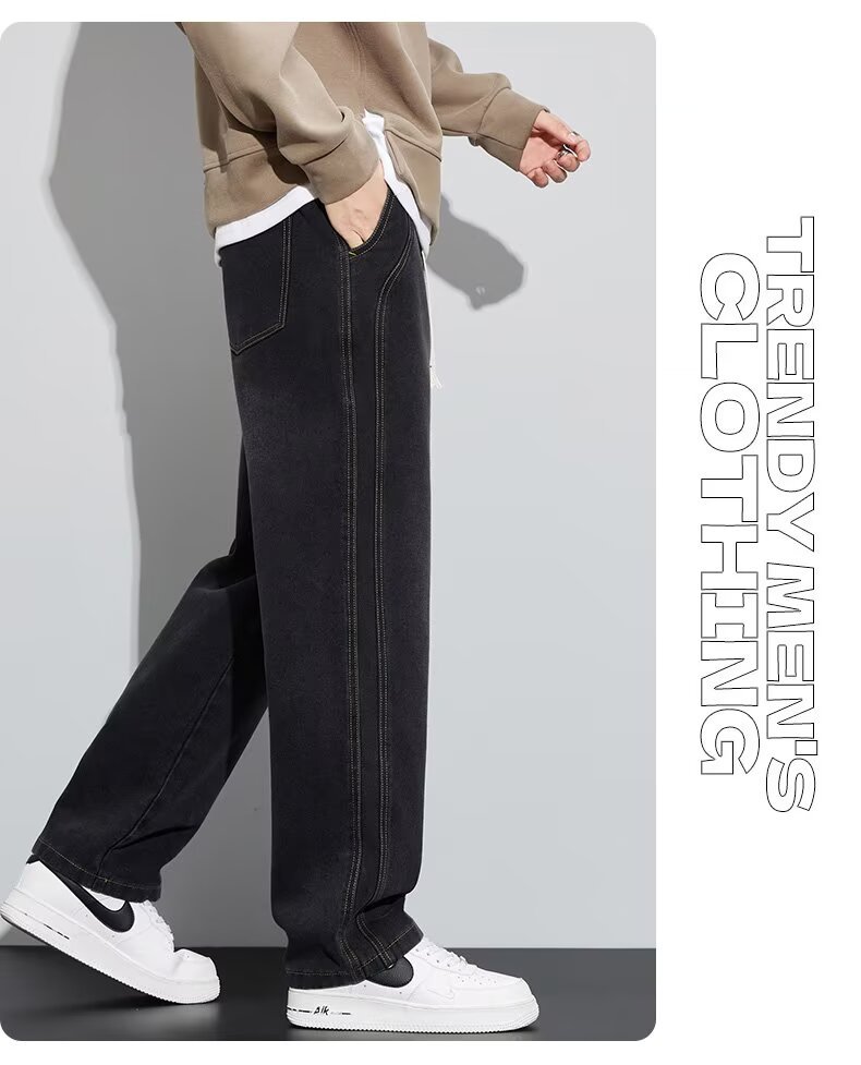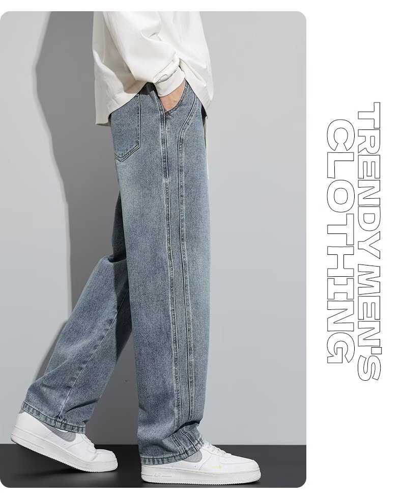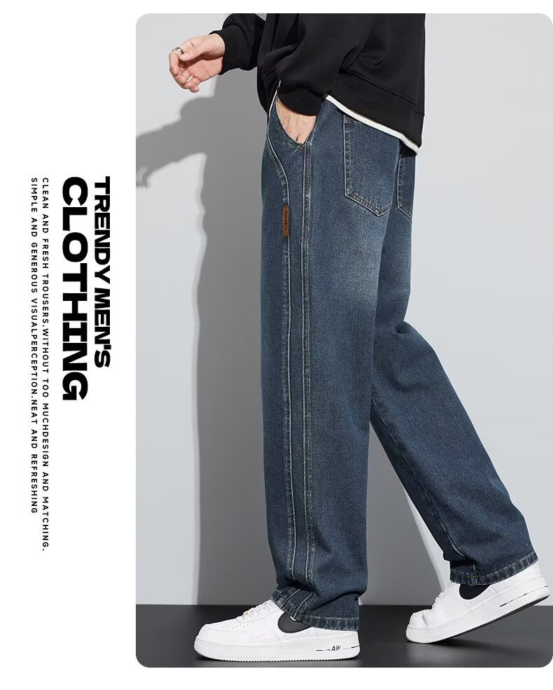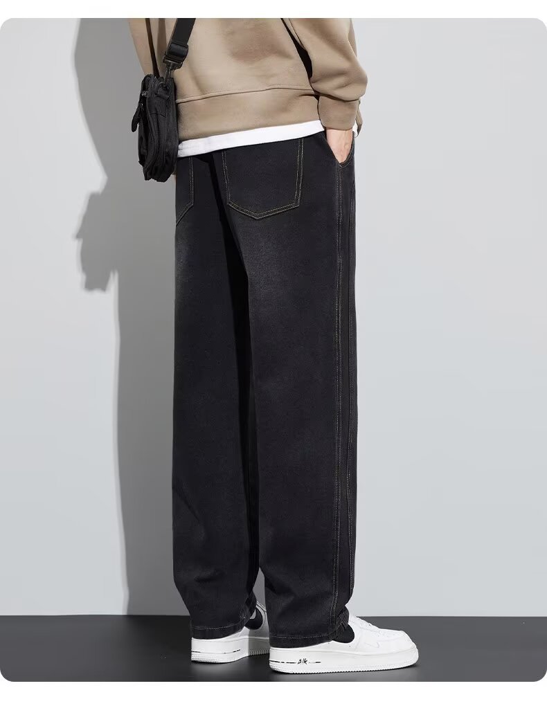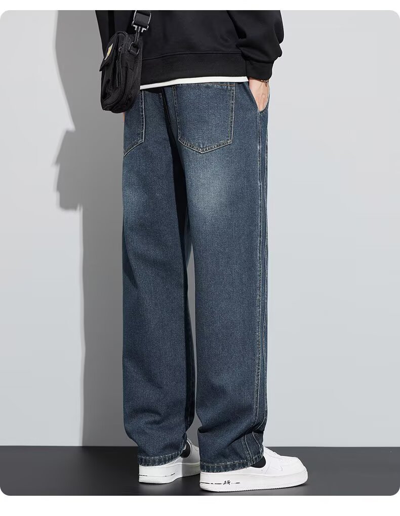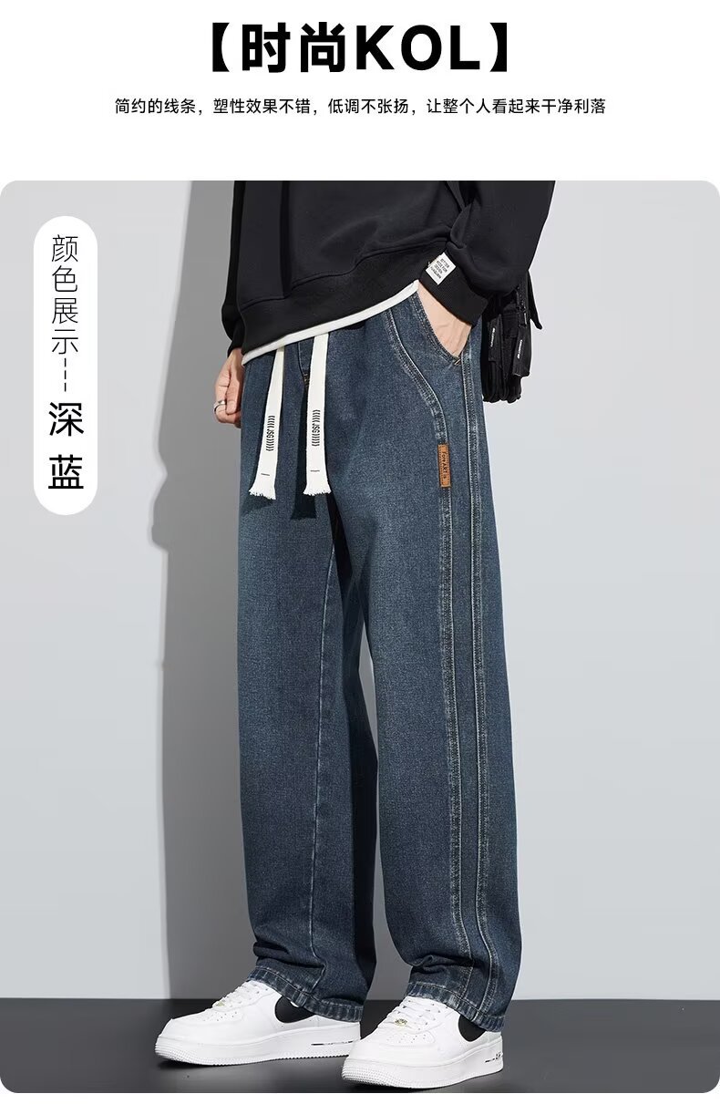 潮流男士宽松裤 春季牛仔裤 男新款宽松直筒美式阔腿裤 休闲青少年长裤
