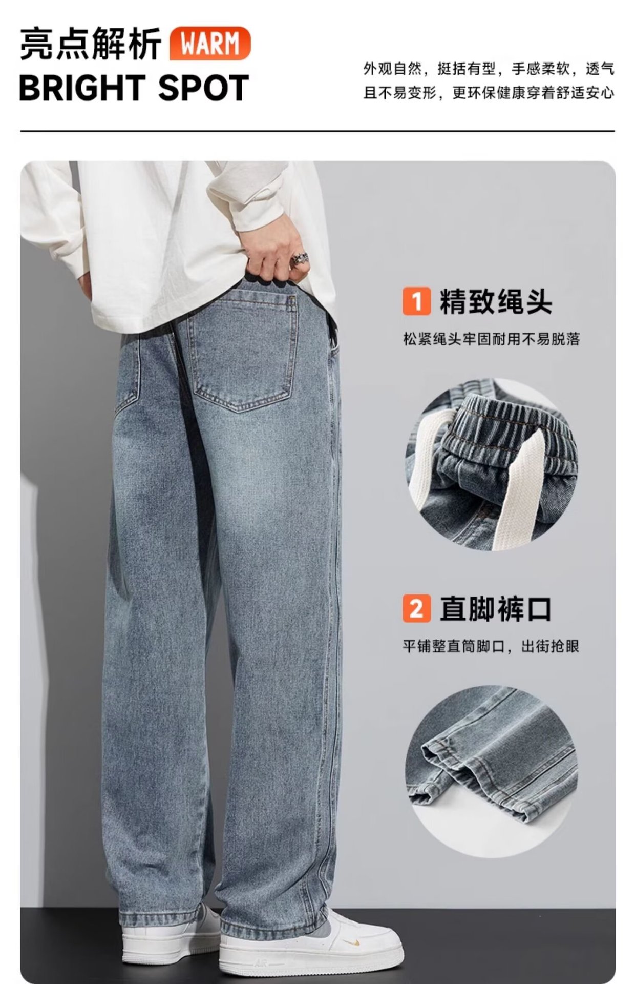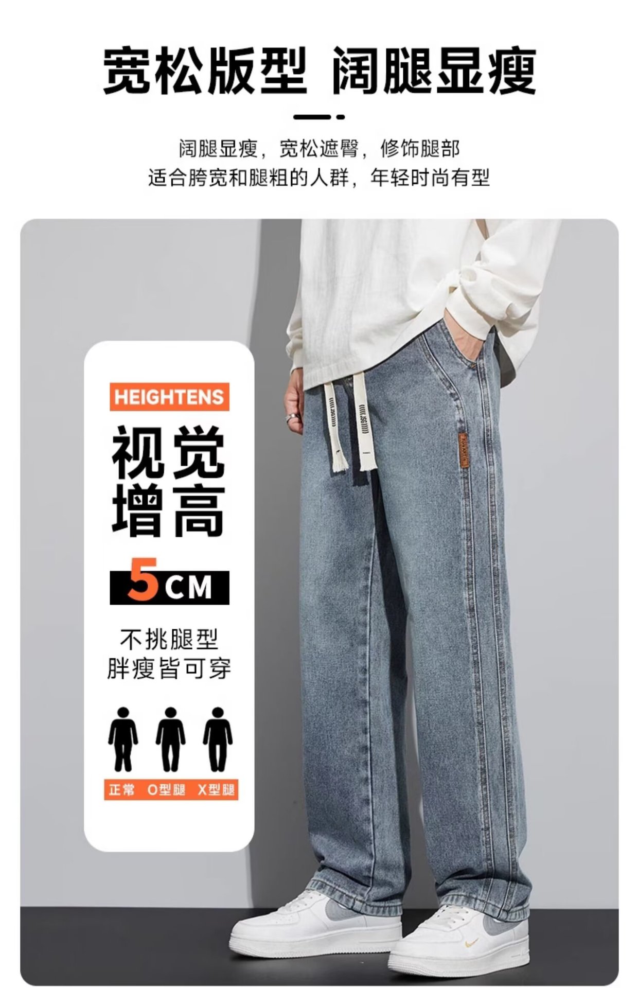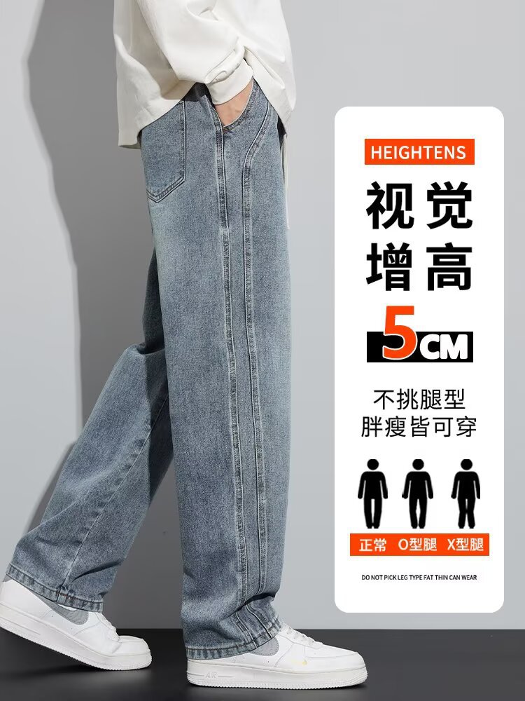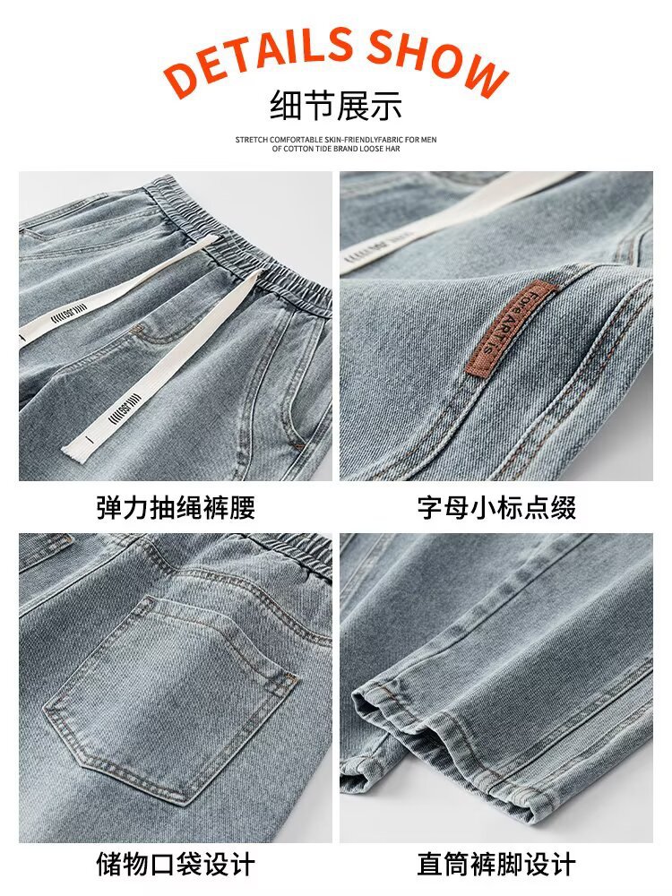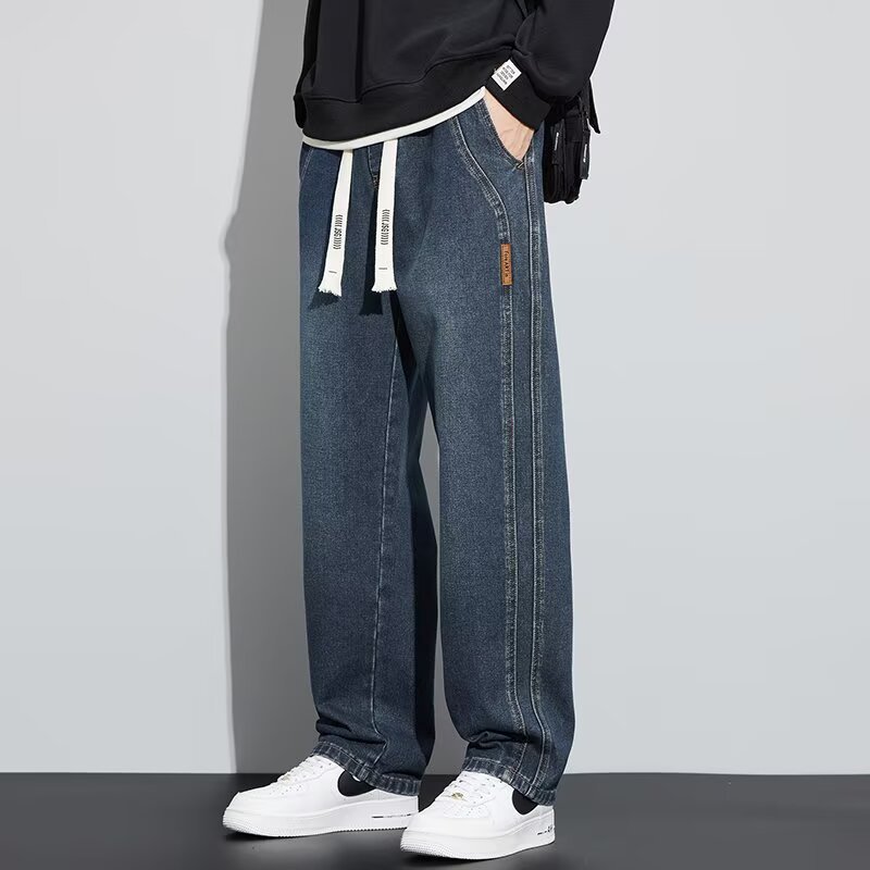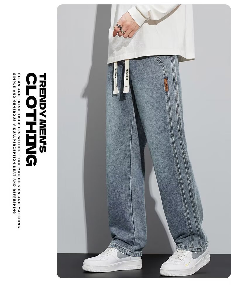 潮流男士宽松裤 春季牛仔裤 男新款宽松直筒美式阔腿裤 休闲青少年长裤