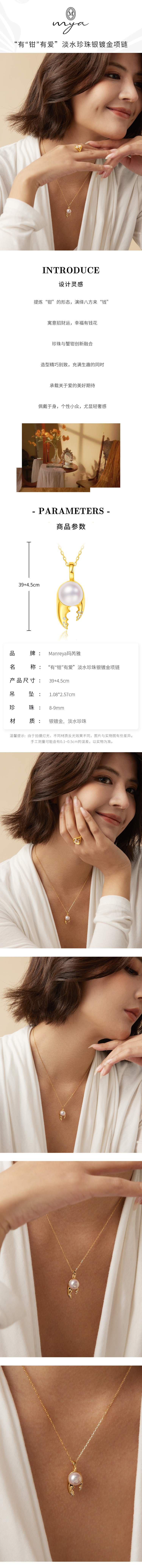 Manreya玛芮雅“有“钳”有爱”淡水珍珠银镀金项链