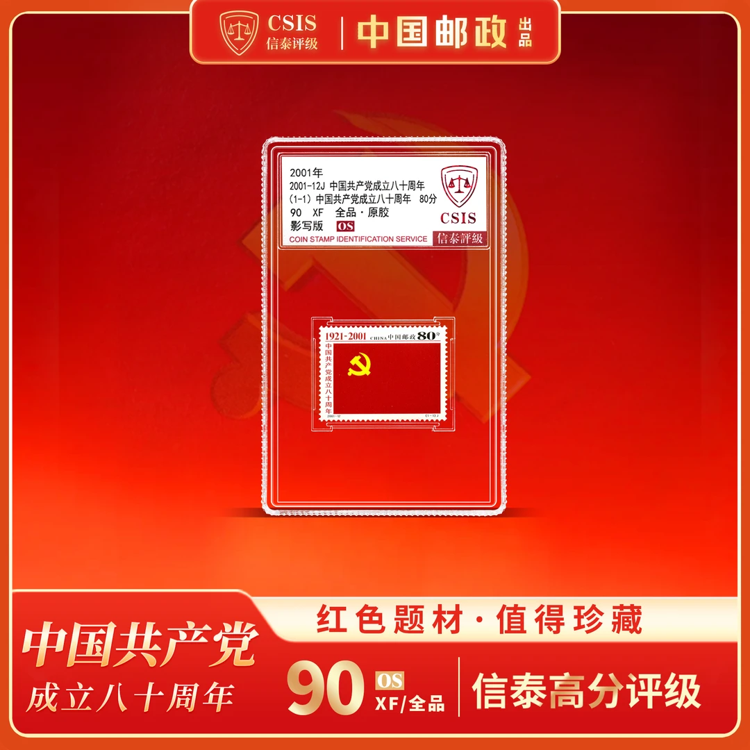 【中国邮政】2001年建党八十周年党旗纪念邮票小盒封装版(信泰评级)