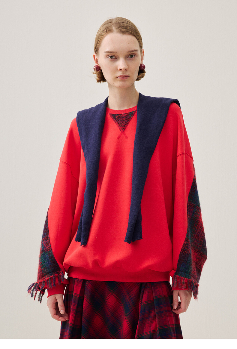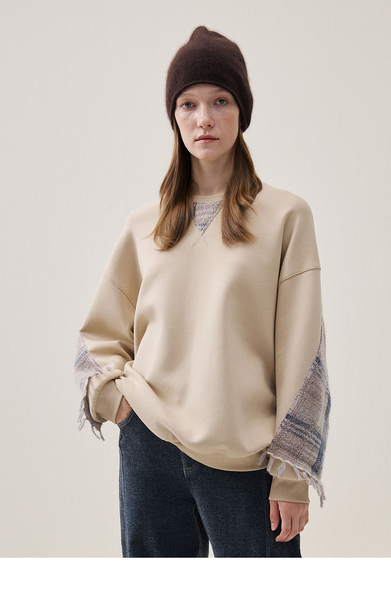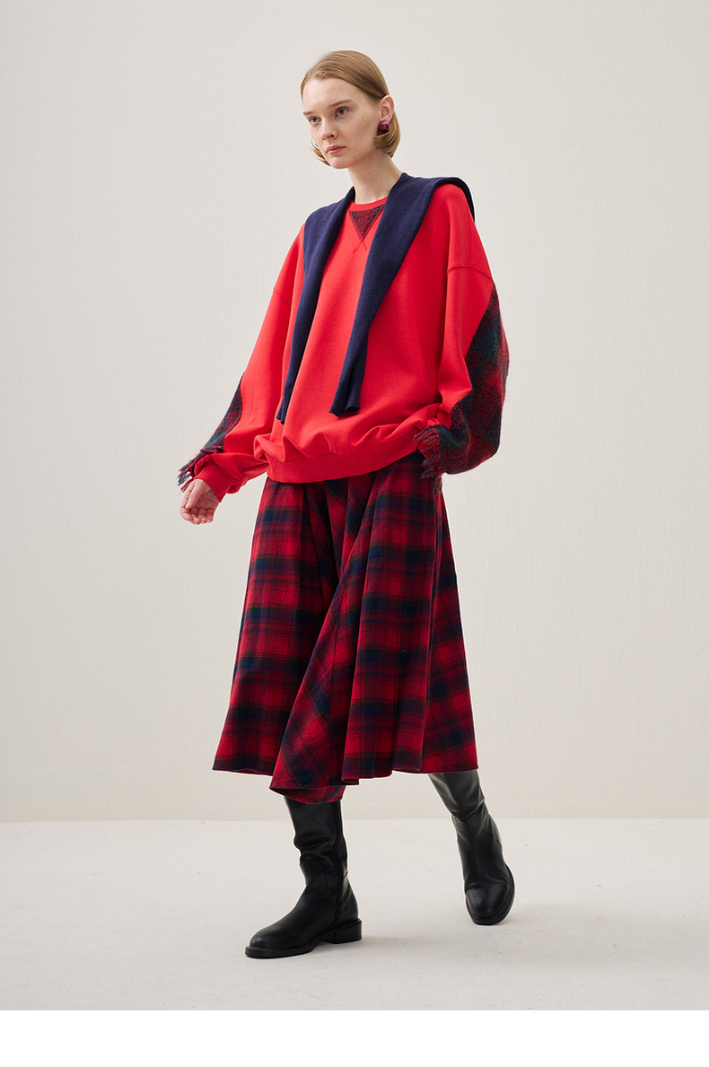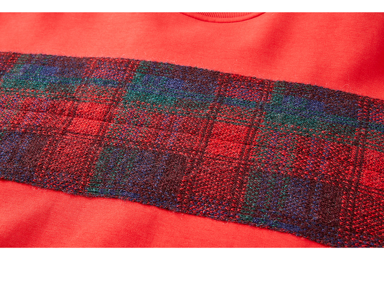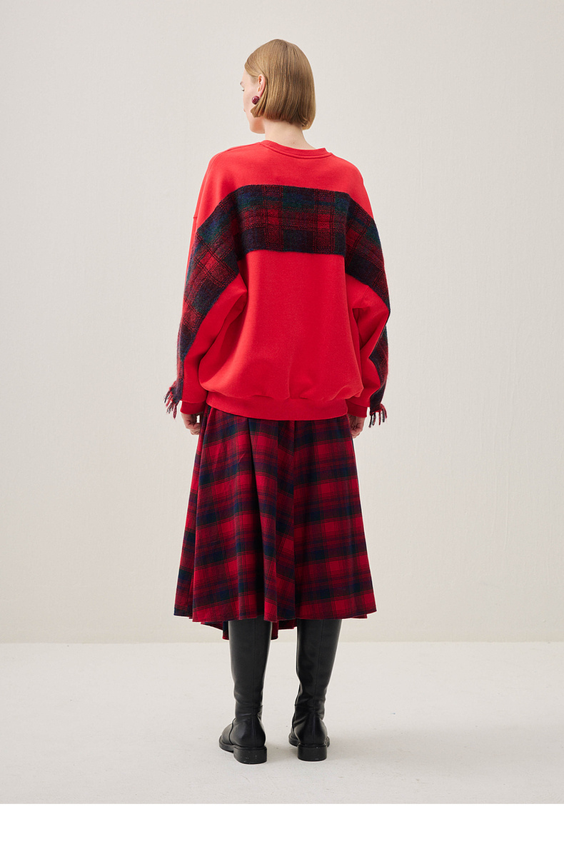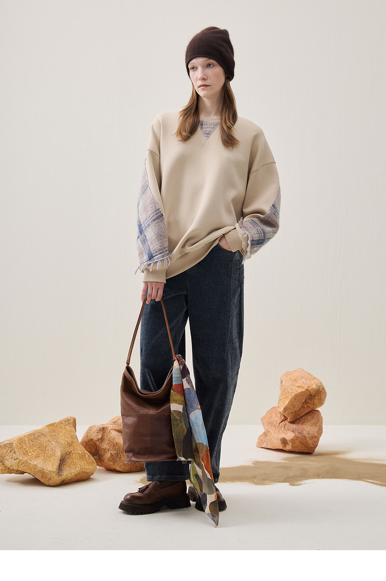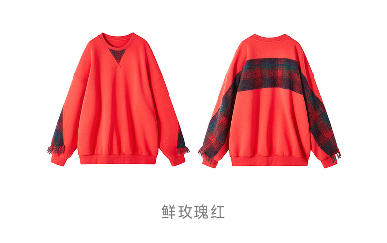 谜底中长款卫衣长袖2025冬季新品圆领落肩袖拼接格纹女254MV1680