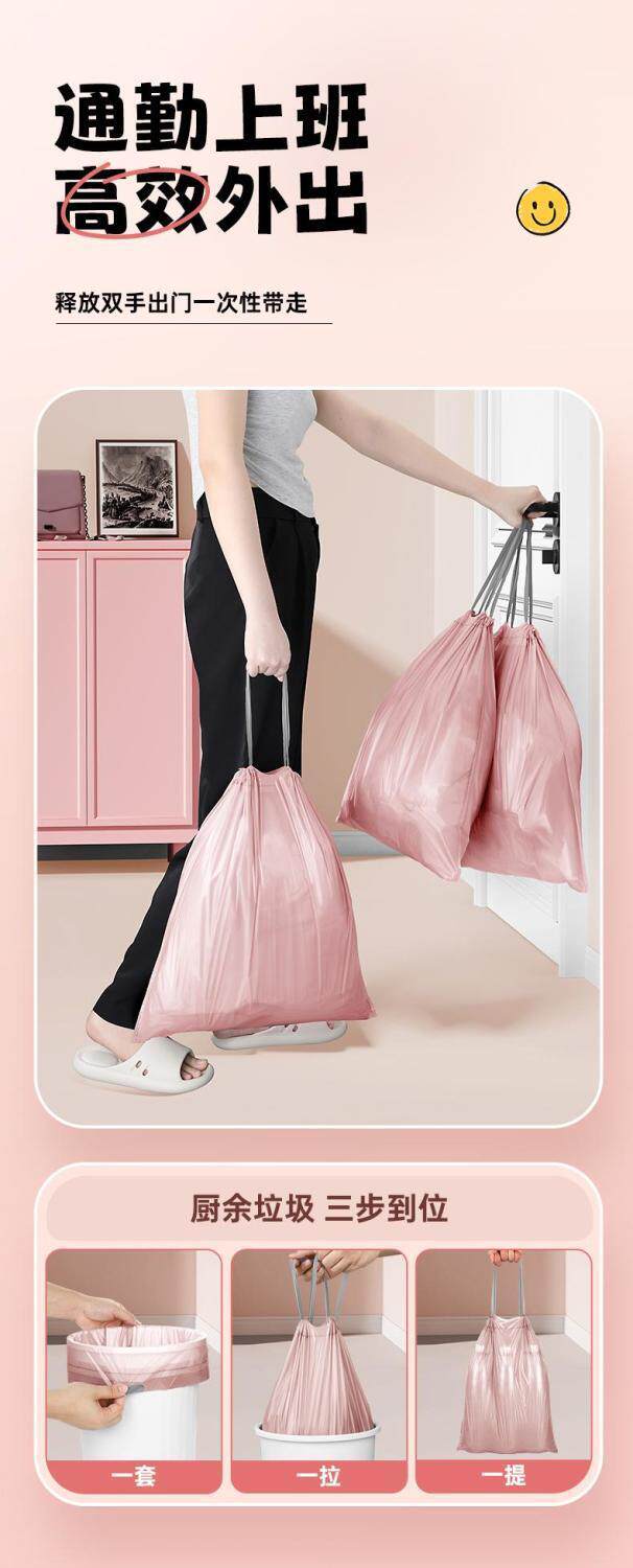 冰莓粉抽绳垃圾袋大号家居家用手提式加厚厨房垃圾袋厂家批发