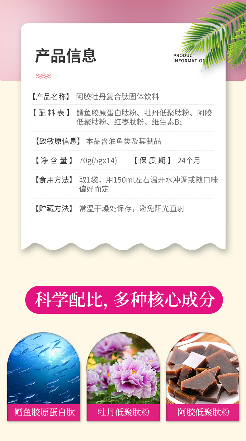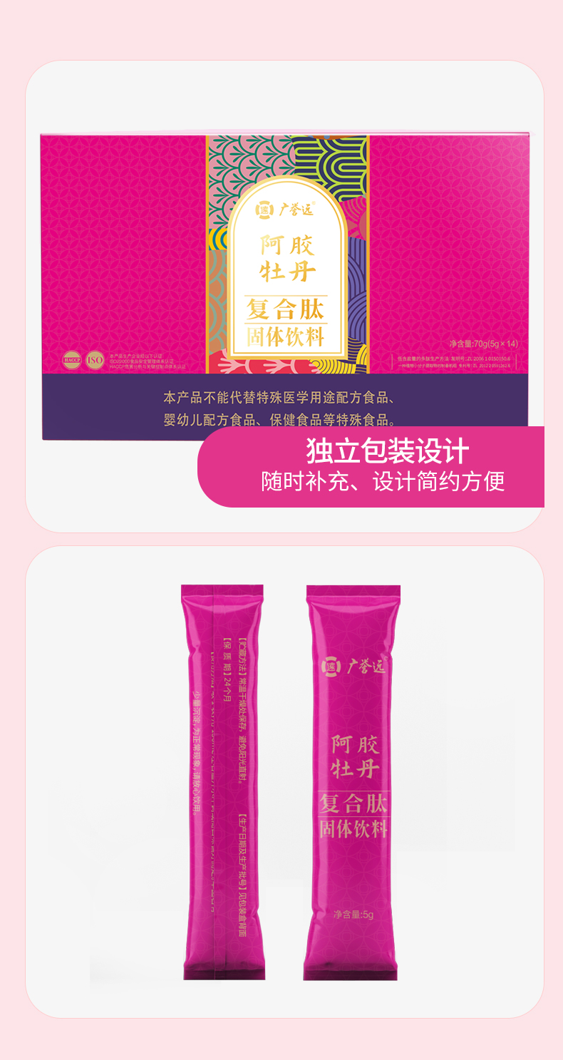 阿胶牡丹复合肽固体饮料 效期至24年4月 5g*14袋/盒