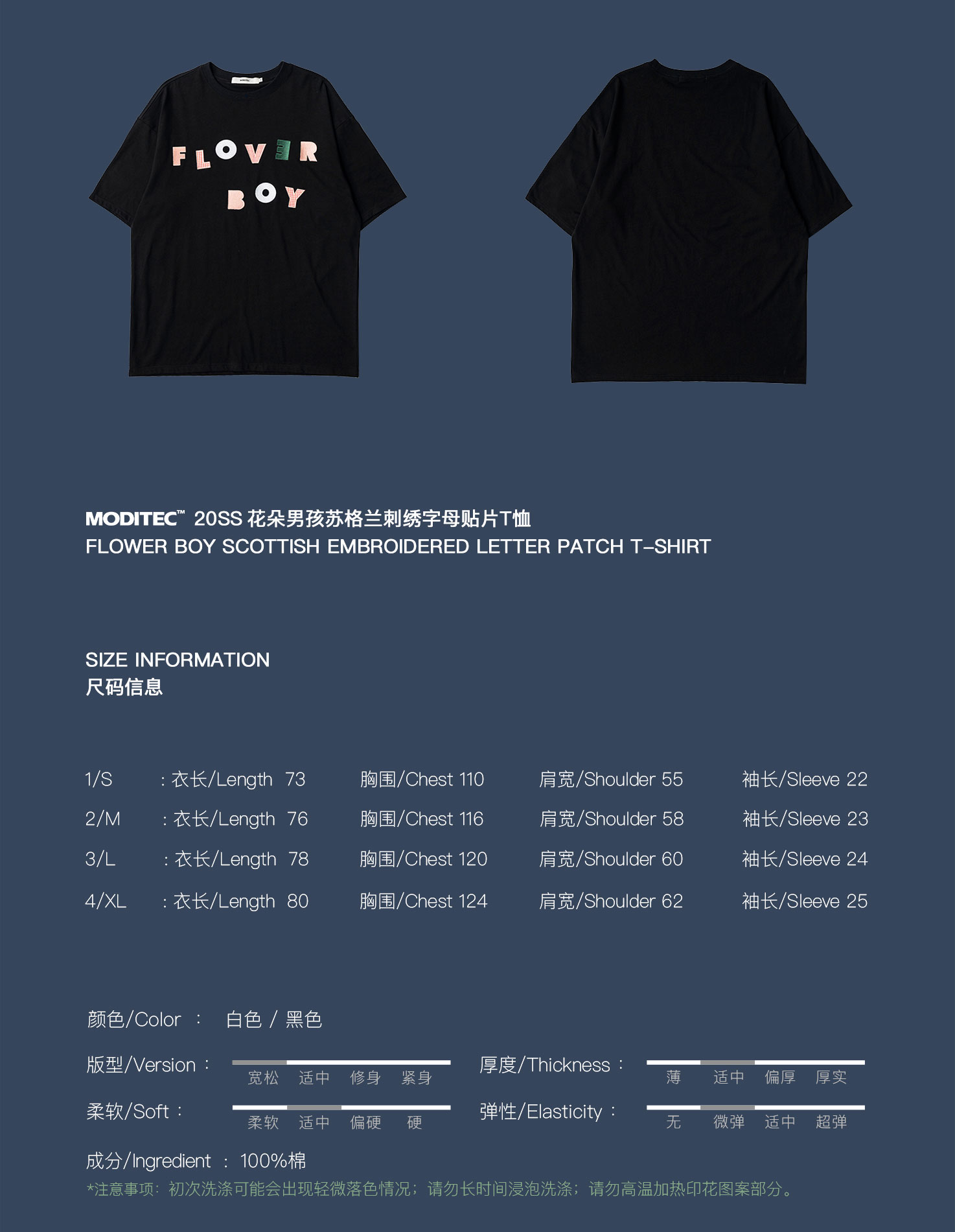 MODITEC 20SS彩色贴布字母刺绣短袖OVERSIZE原创休闲T恤国潮