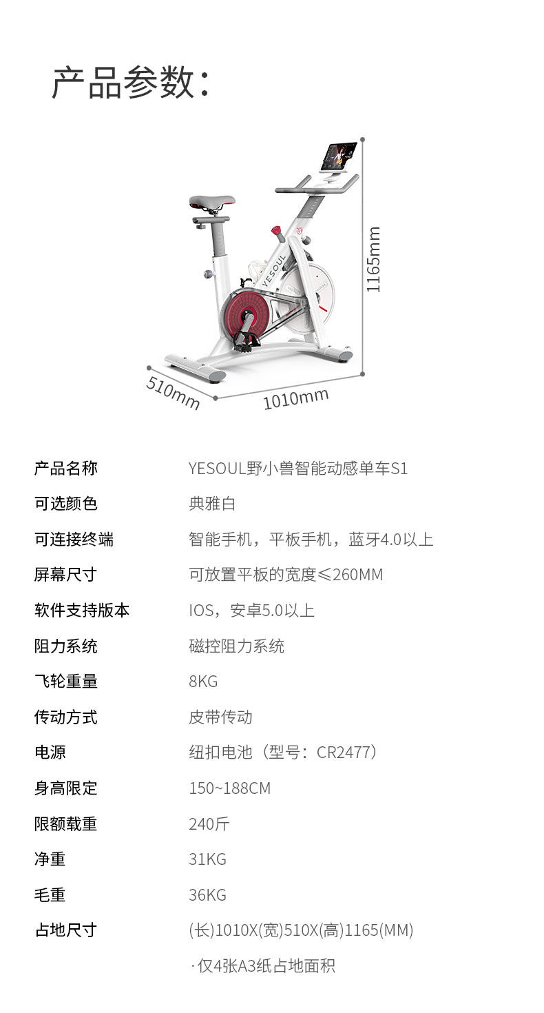 YESOUL野小兽智能动感单车家用运动健身器材S1