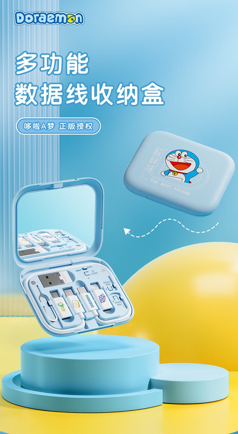 ROCK洛克 多功能数据线收纳盒 哆啦A梦款