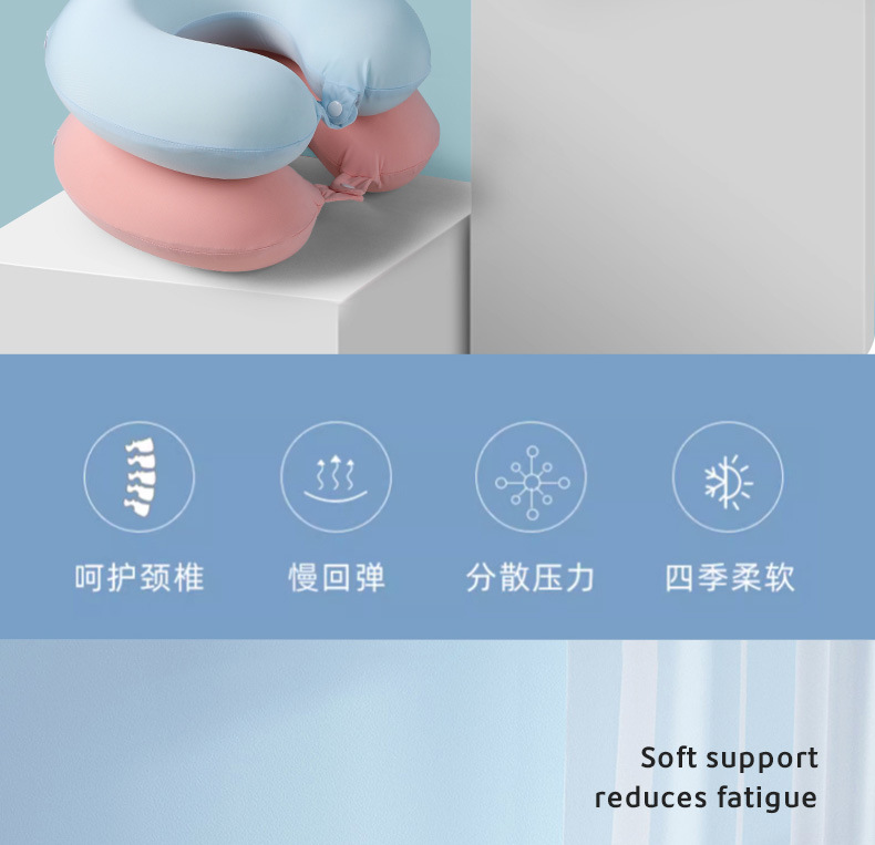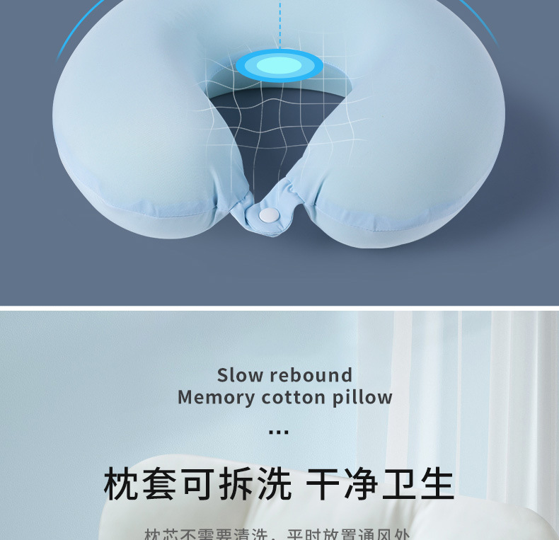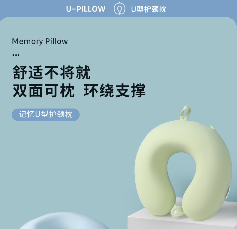 「夏季冰感体验!高颜值」凉感冰丝u型枕 居家日用旅行便携可收纳颈枕记忆棉飞机枕午睡护颈枕