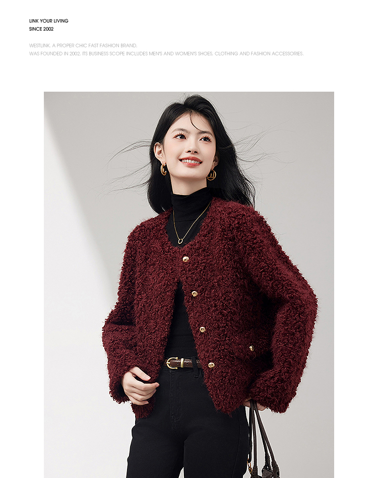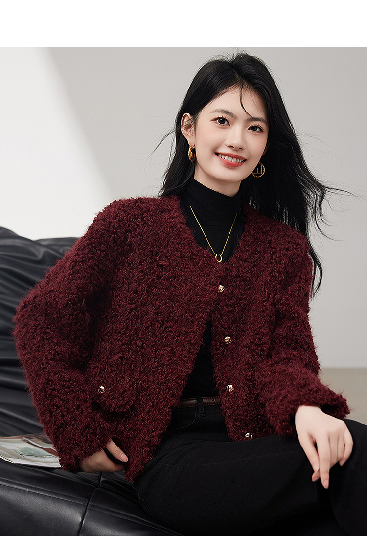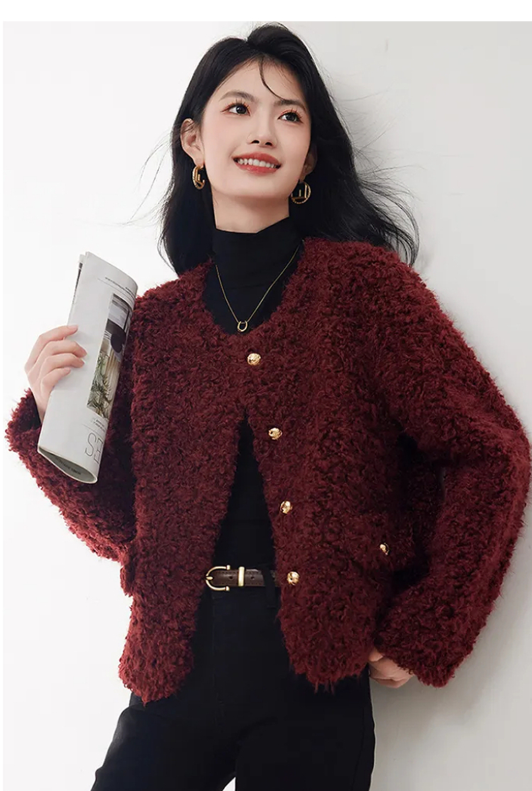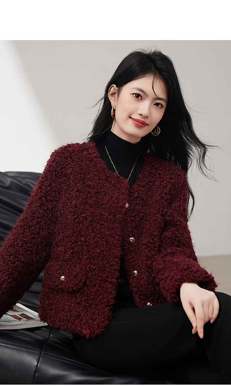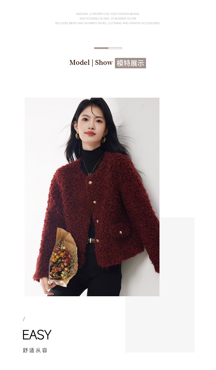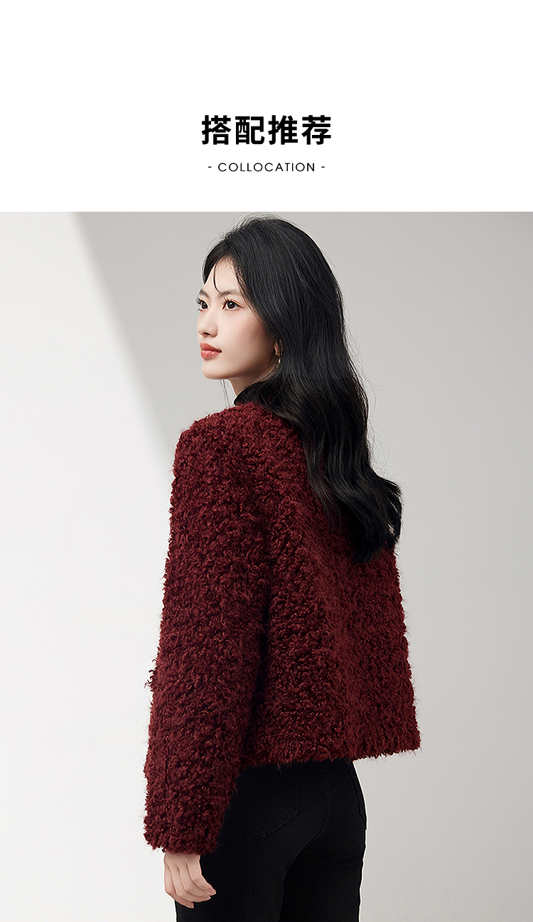 西遇小香风外套女冬季新款气质仿羊羔毛皮毛一体短外套SS051964