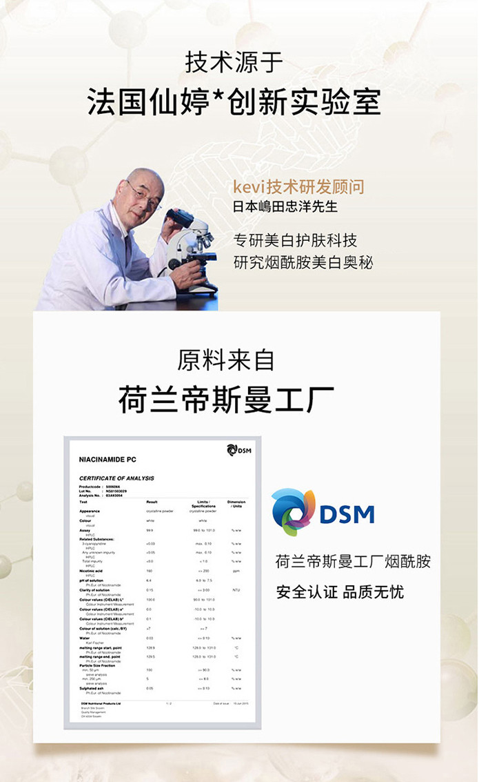 并且纯度越高的烟酰胺,杂质越少,耐受性就越高我们这款的纯度是远高于行业标准的99.5%