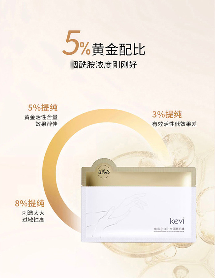 Kevi 亮白手膜 的出现就拯救了我,干燥起皮、暗沉发黄,用它敷一敷都能让你恢复小嫩手。
