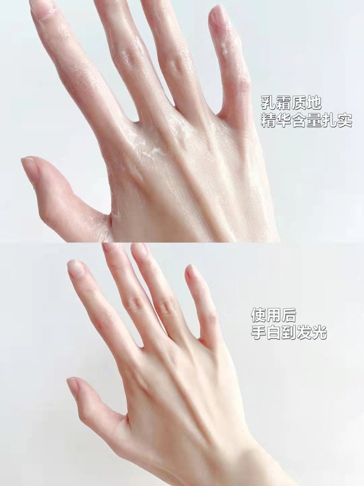 品牌够实在,一对手膜约含有 1 瓶烟酰胺精华,冲这效果真的没骗人。