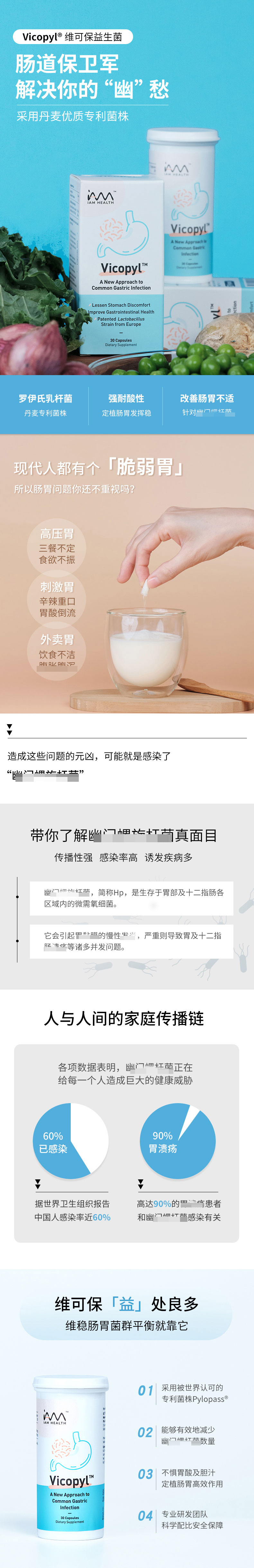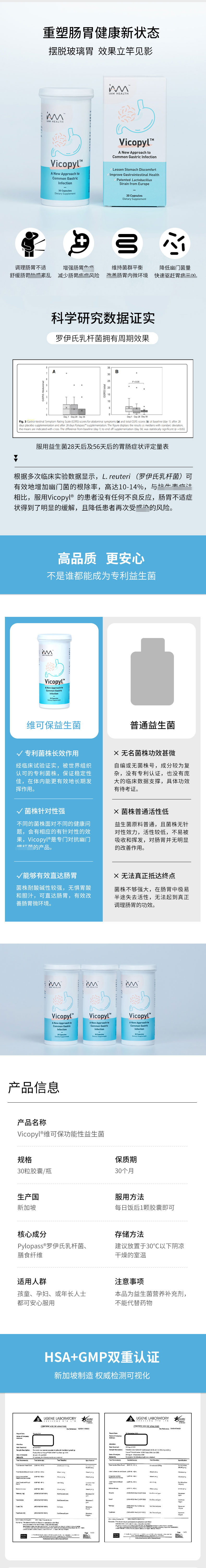 【自然辽法 胃部健康 fang口臭】维可保益生菌 30粒/盒 新加坡 Vicopyl维可保
