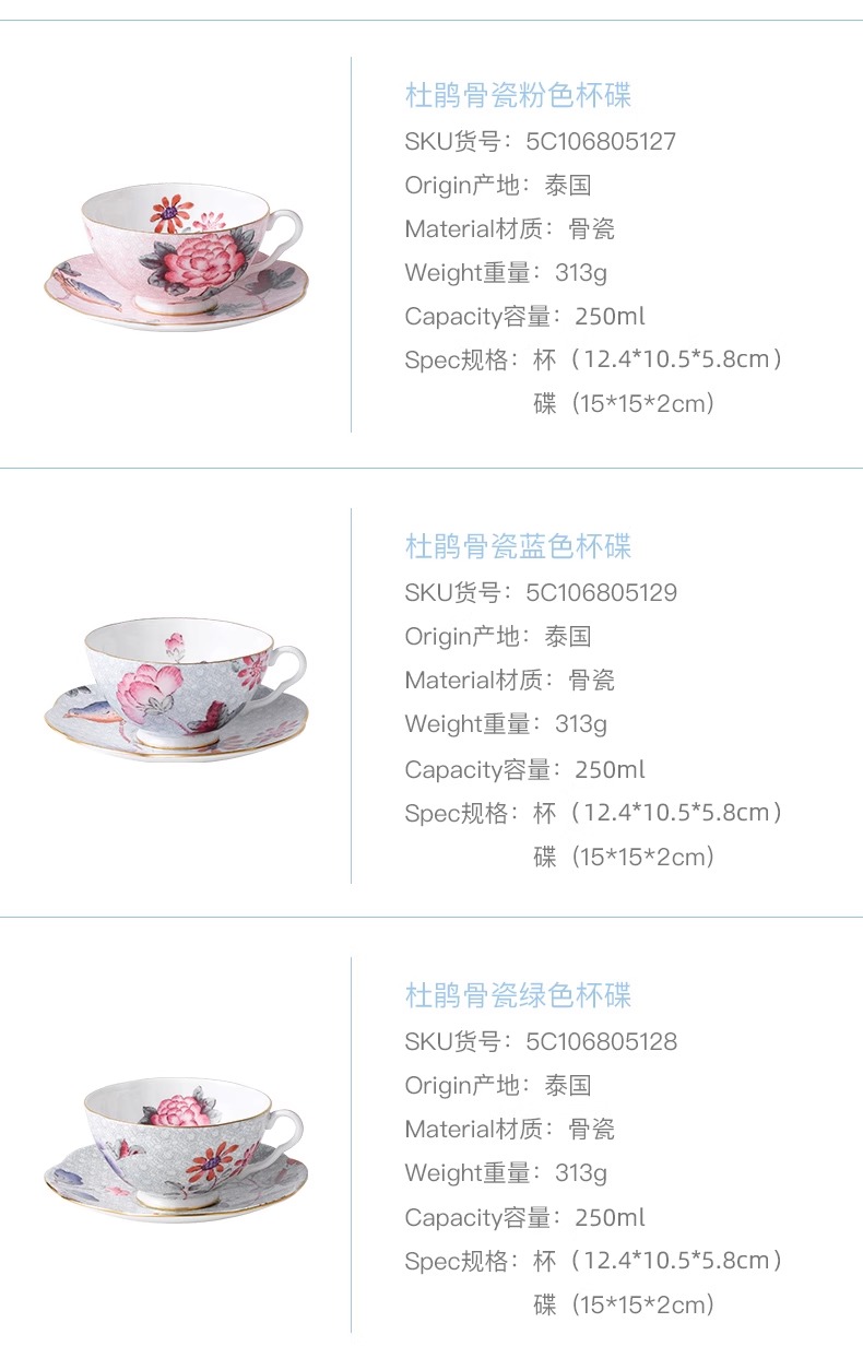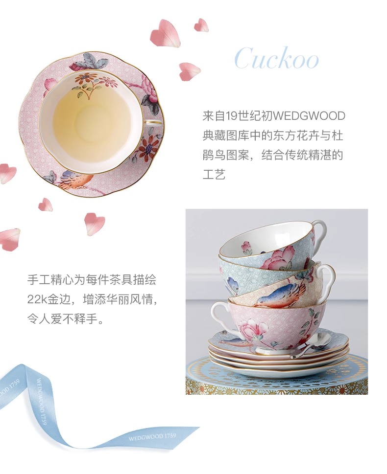 WEDGWOOD威基伍德杜鹃杯碟骨瓷下午茶杯碟咖啡杯礼盒
