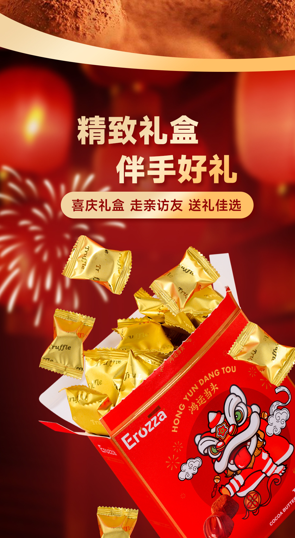 伊诺滋松露巧克力盒装礼袋装年货伴手礼精致礼袋黑巧克力过年送礼