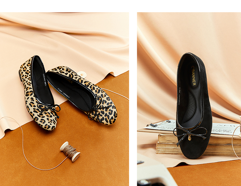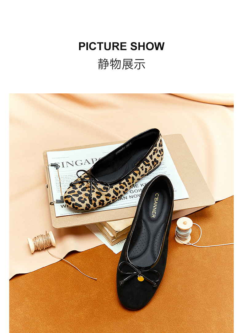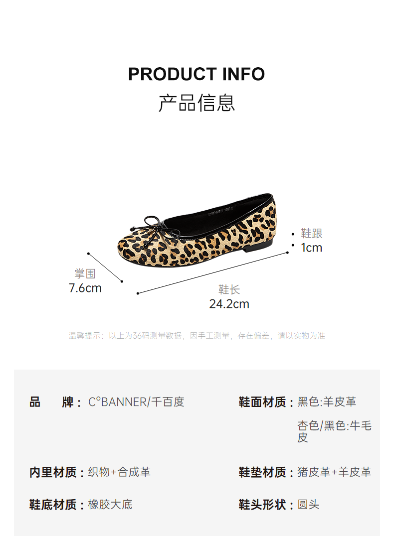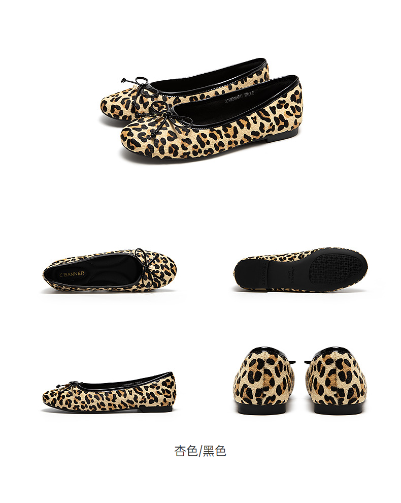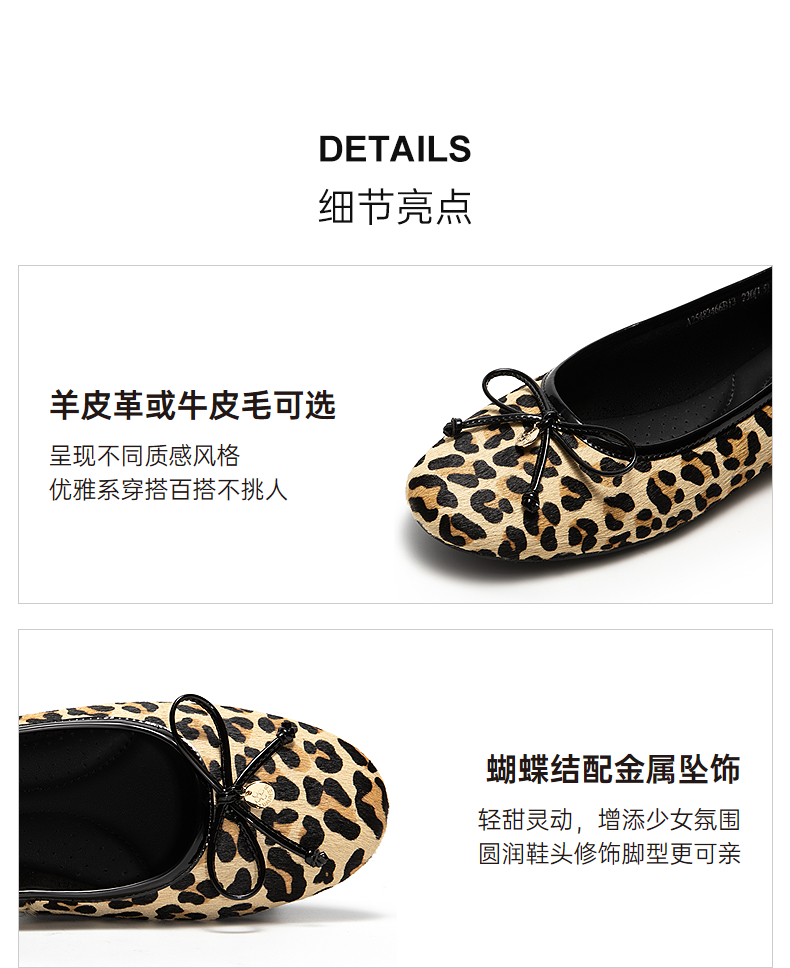 千百度蝴蝶结复古羊皮豹纹平底鞋女晚晚鞋浅口单鞋A25482466