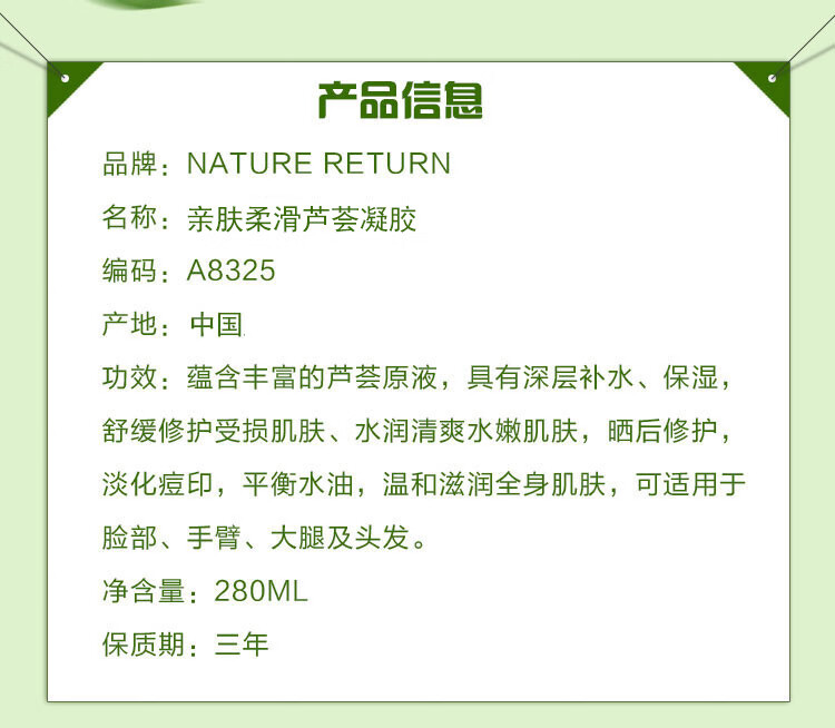 自然乐园98亲肤柔滑芦荟凝胶 280ml