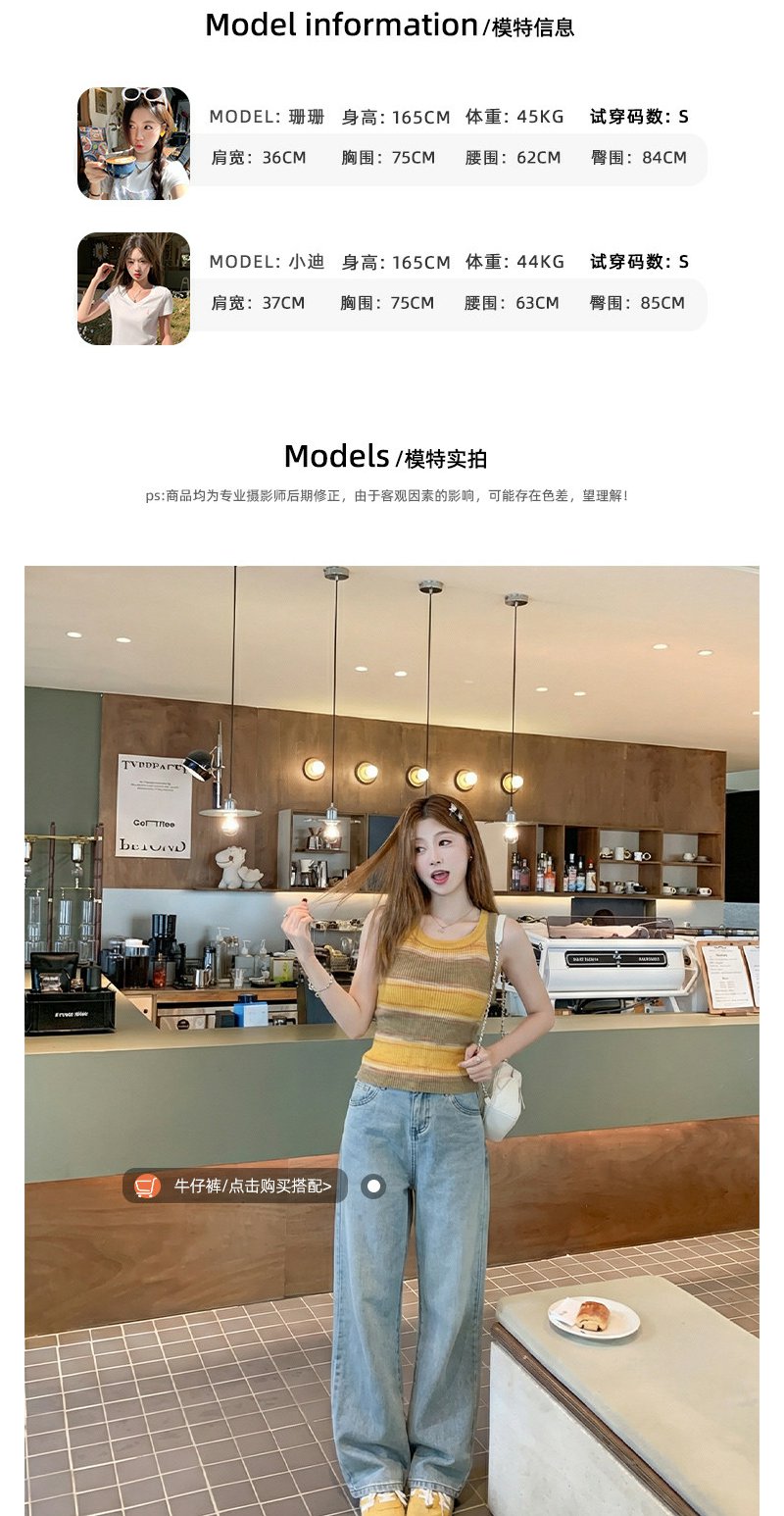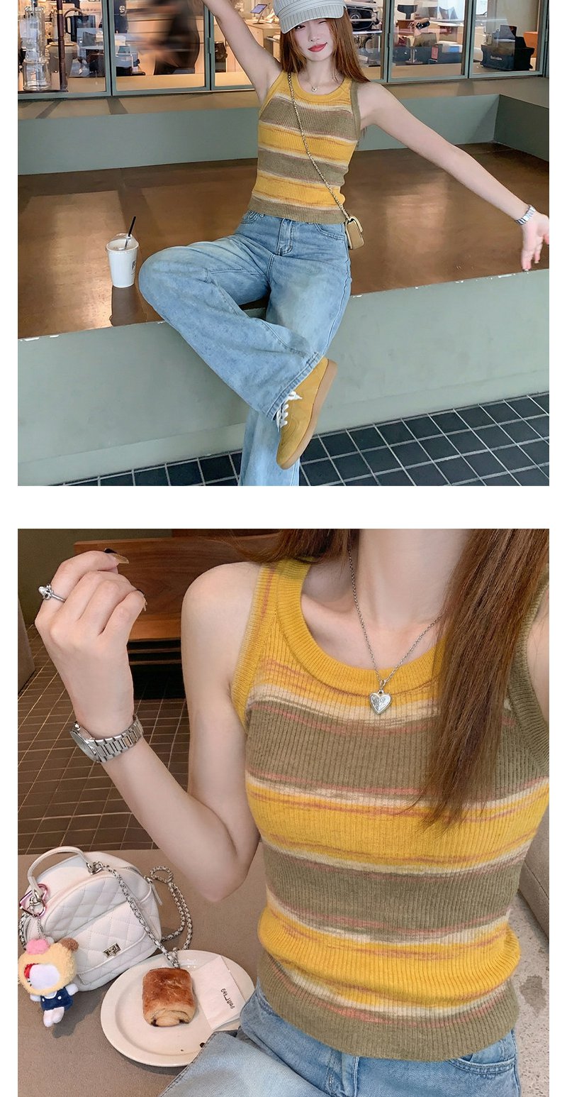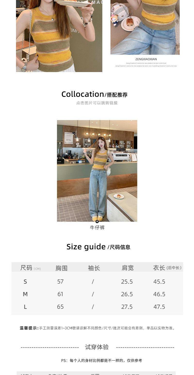 <曾小咸推荐>韩系黄拼咖挂脖无袖针织背心